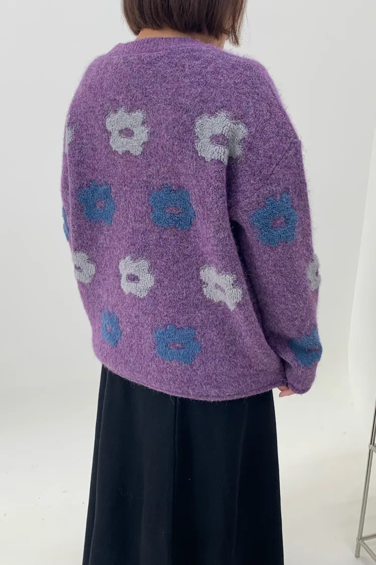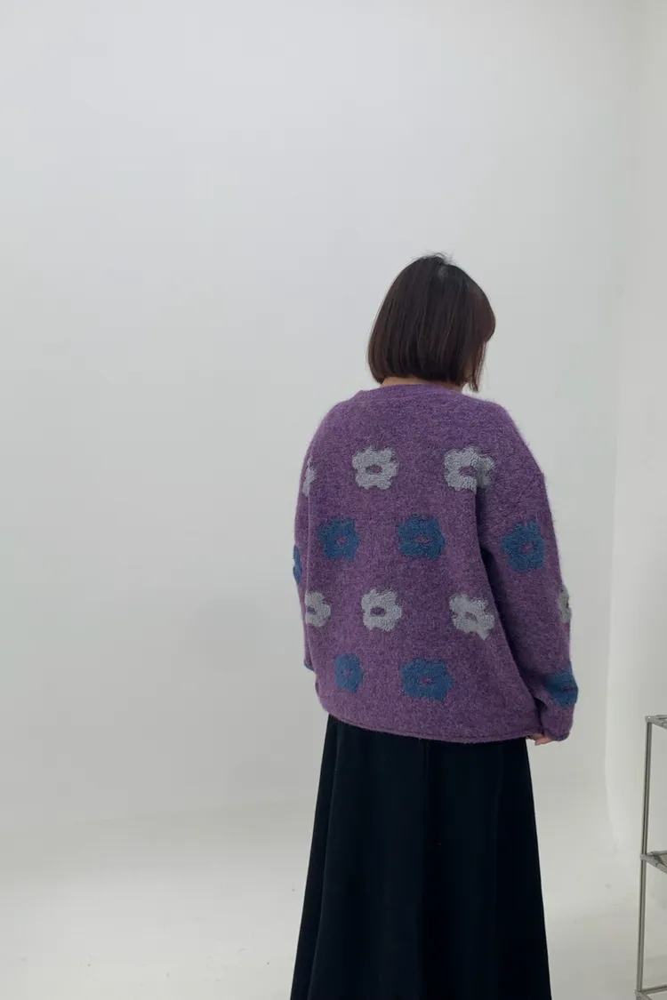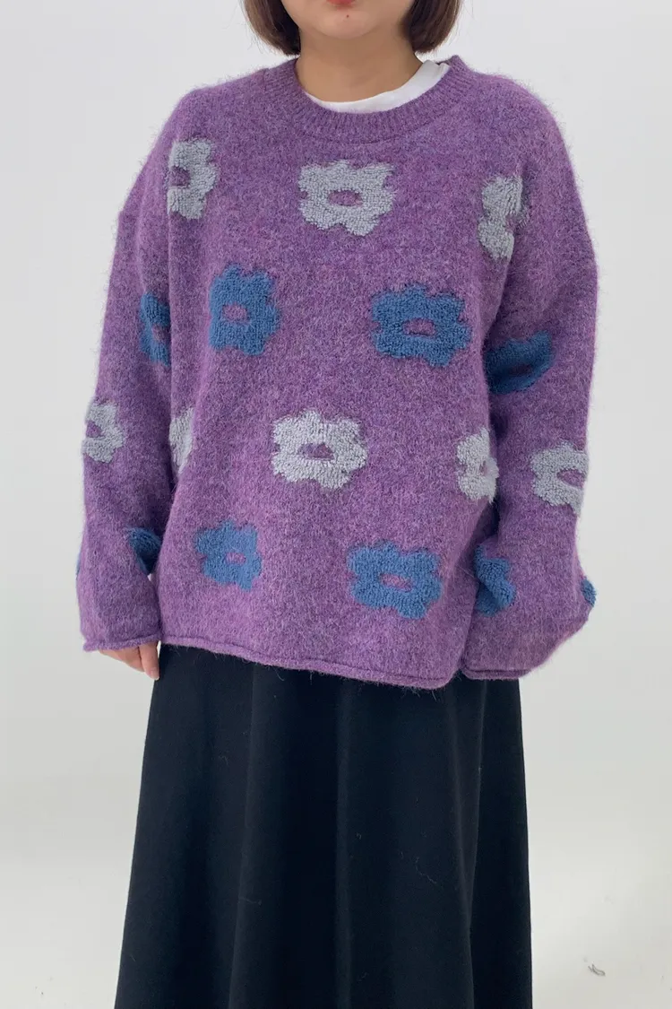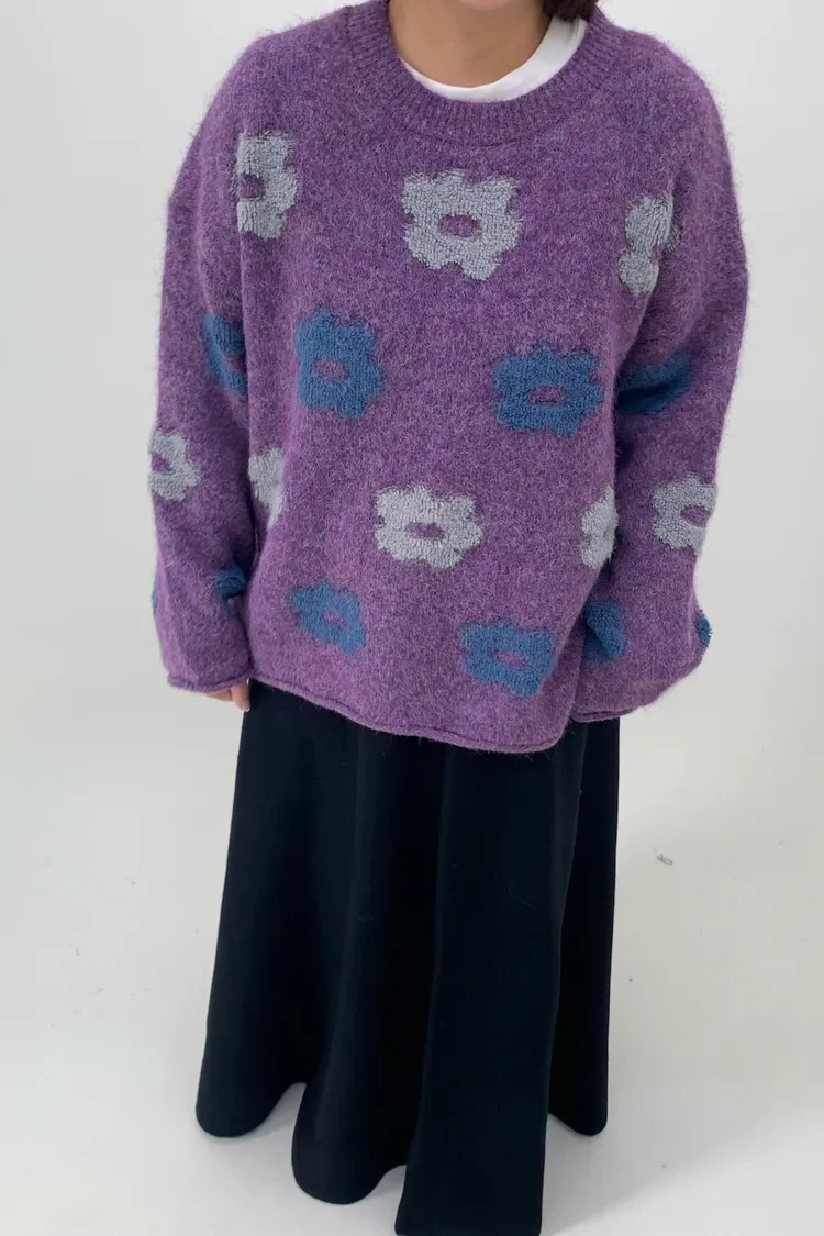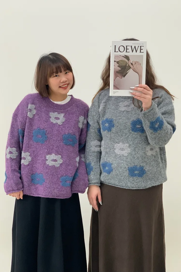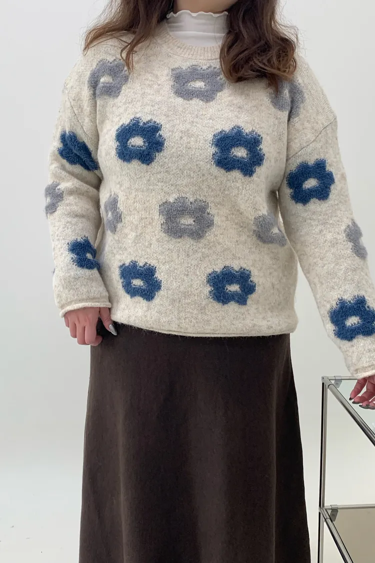 藍灰花朵毛衣