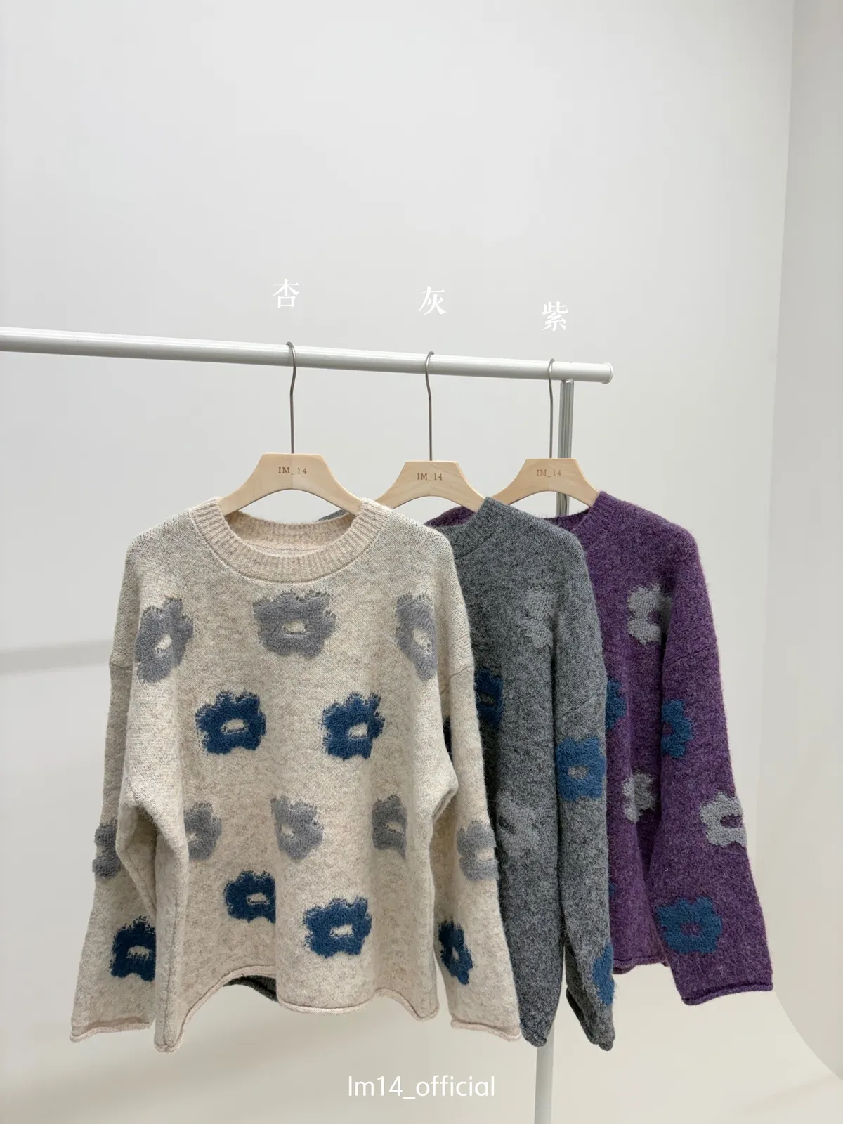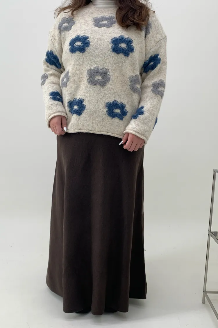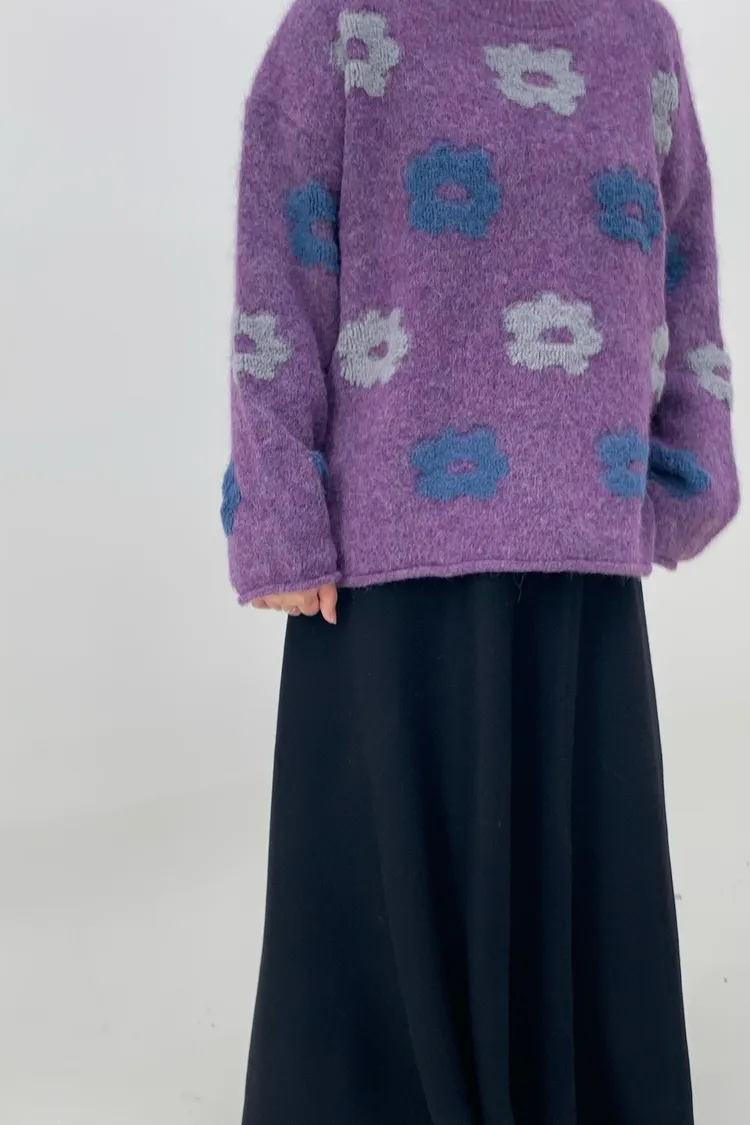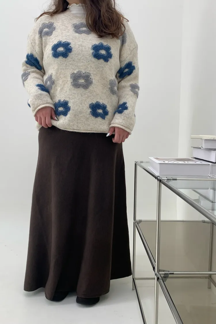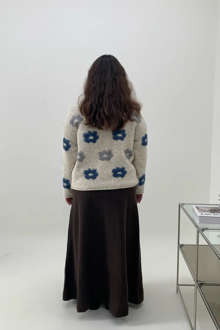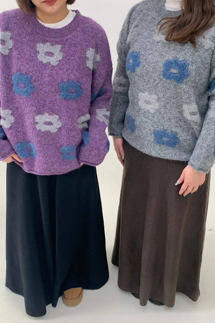 藍灰花朵毛衣