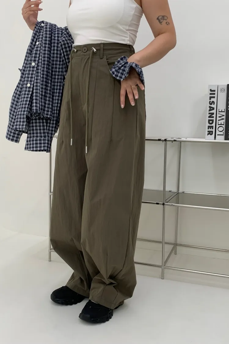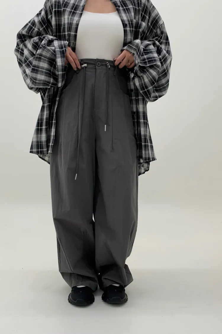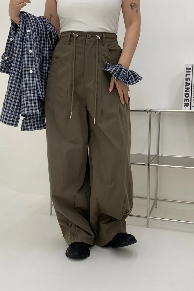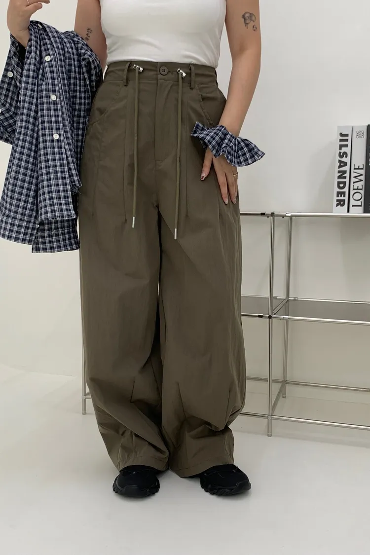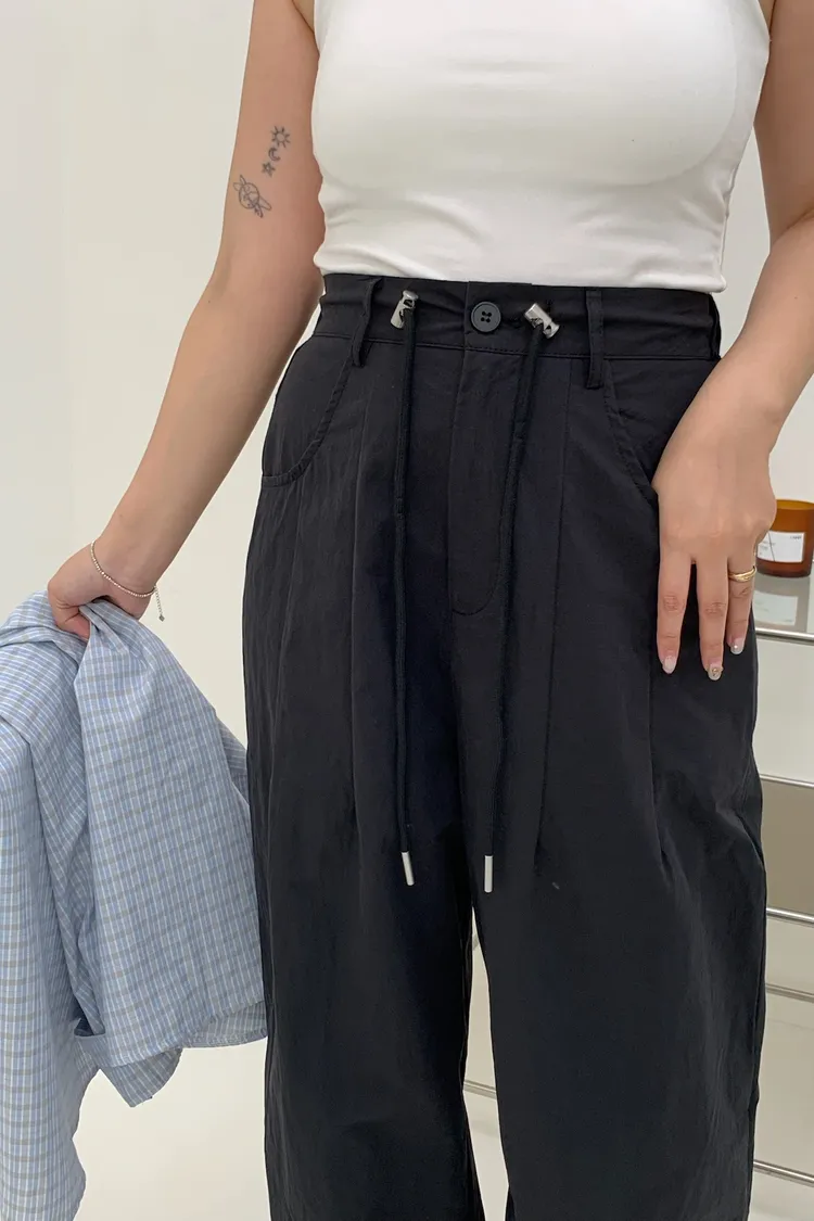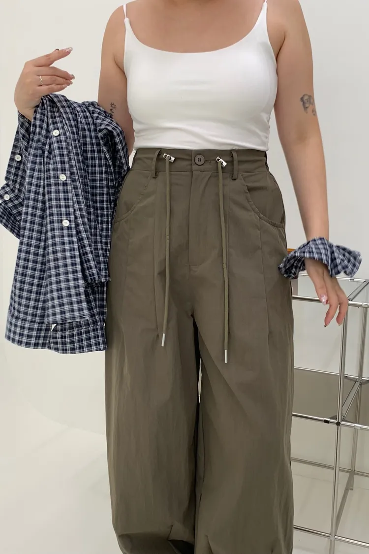 抽繩刷刷工裝褲/好看超顯瘦長