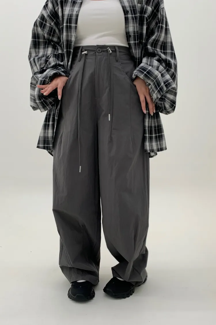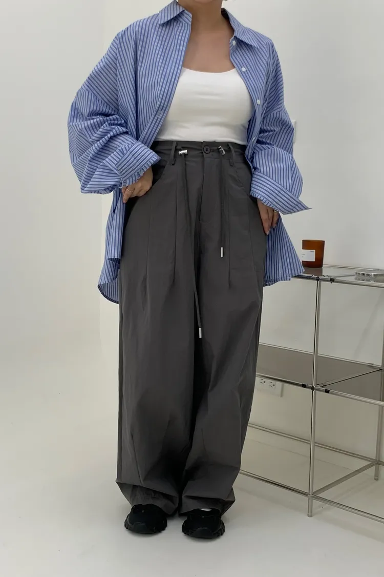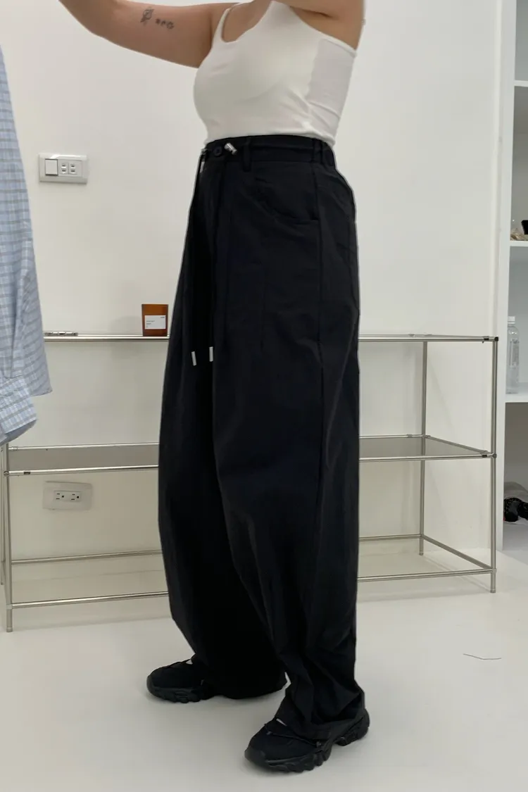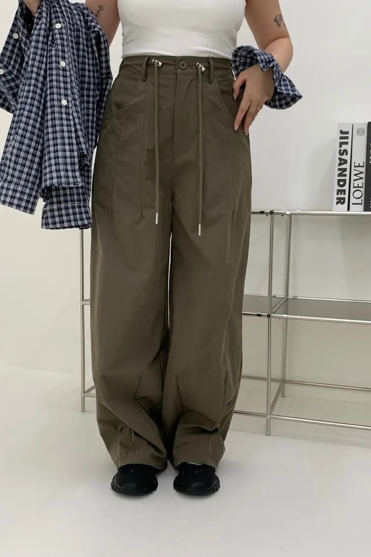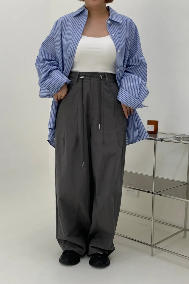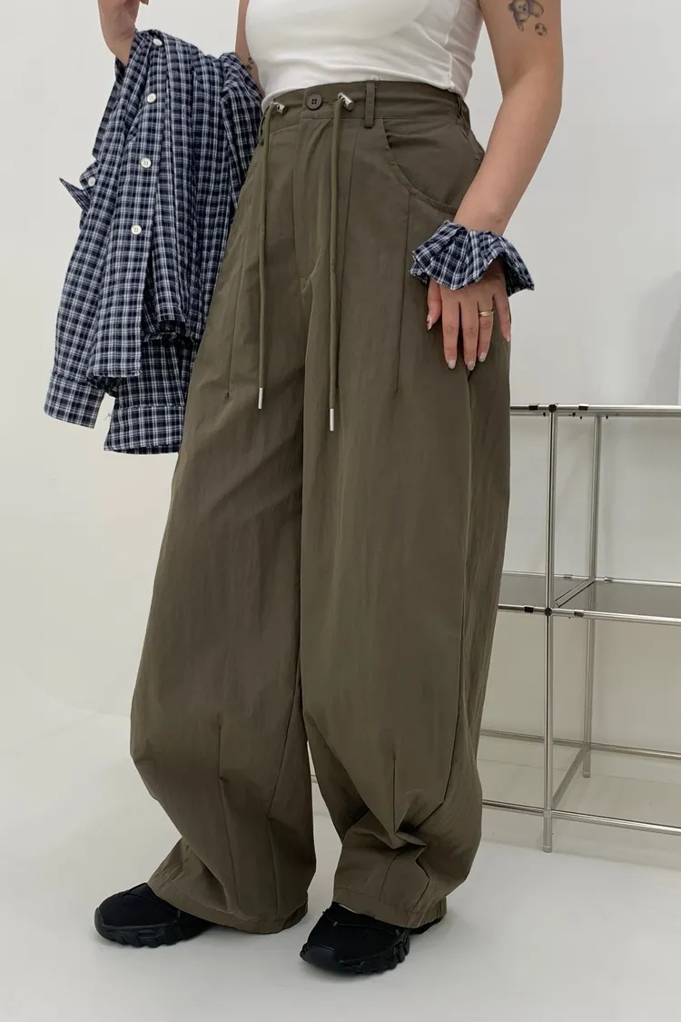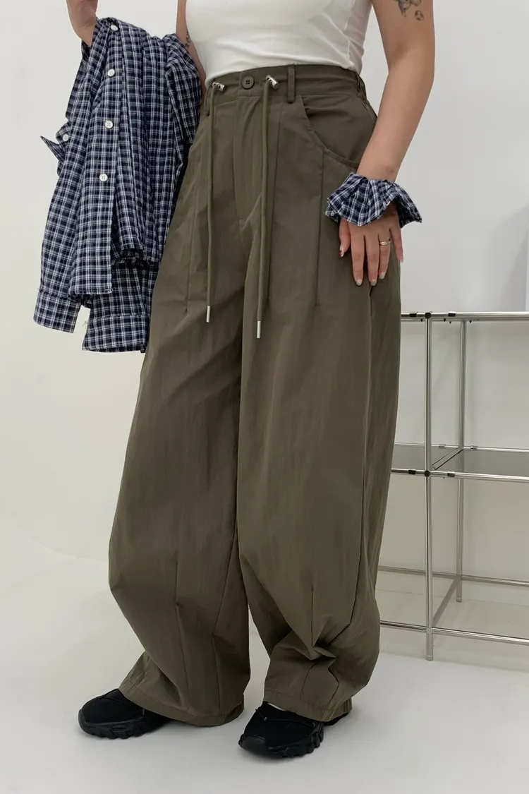抽繩刷刷工裝褲/好看超顯瘦長