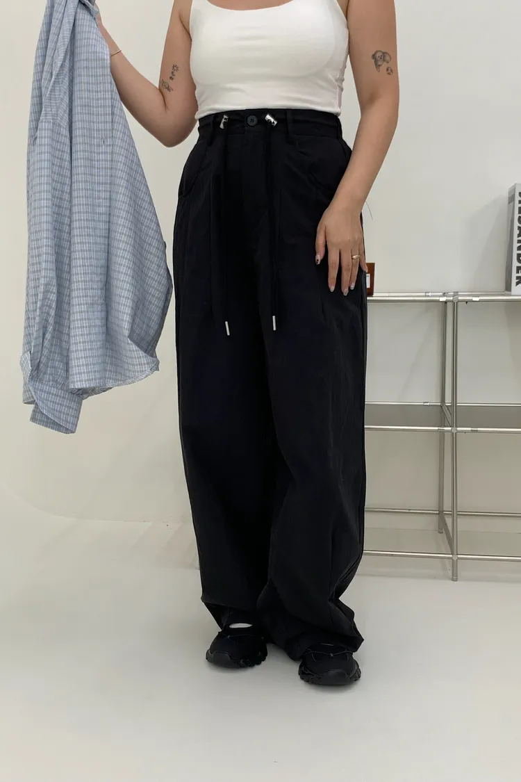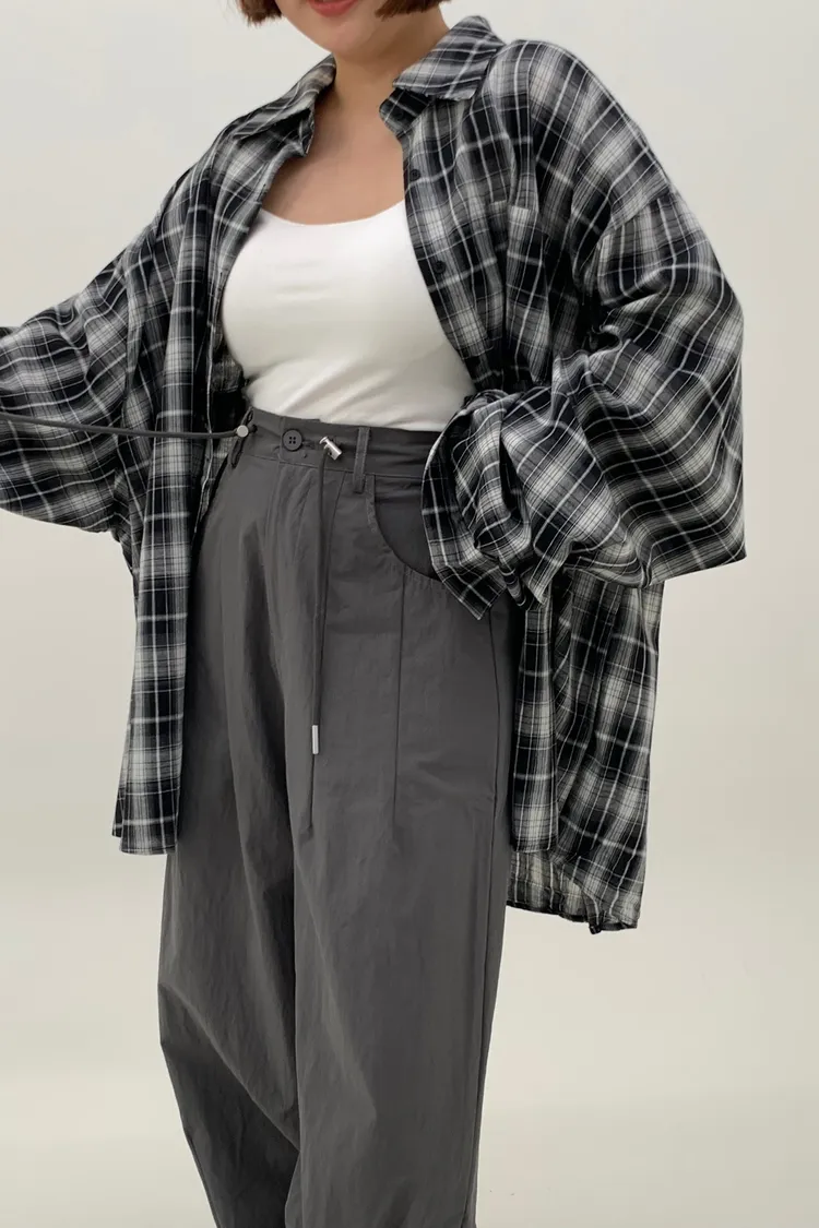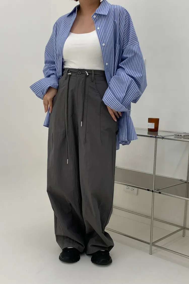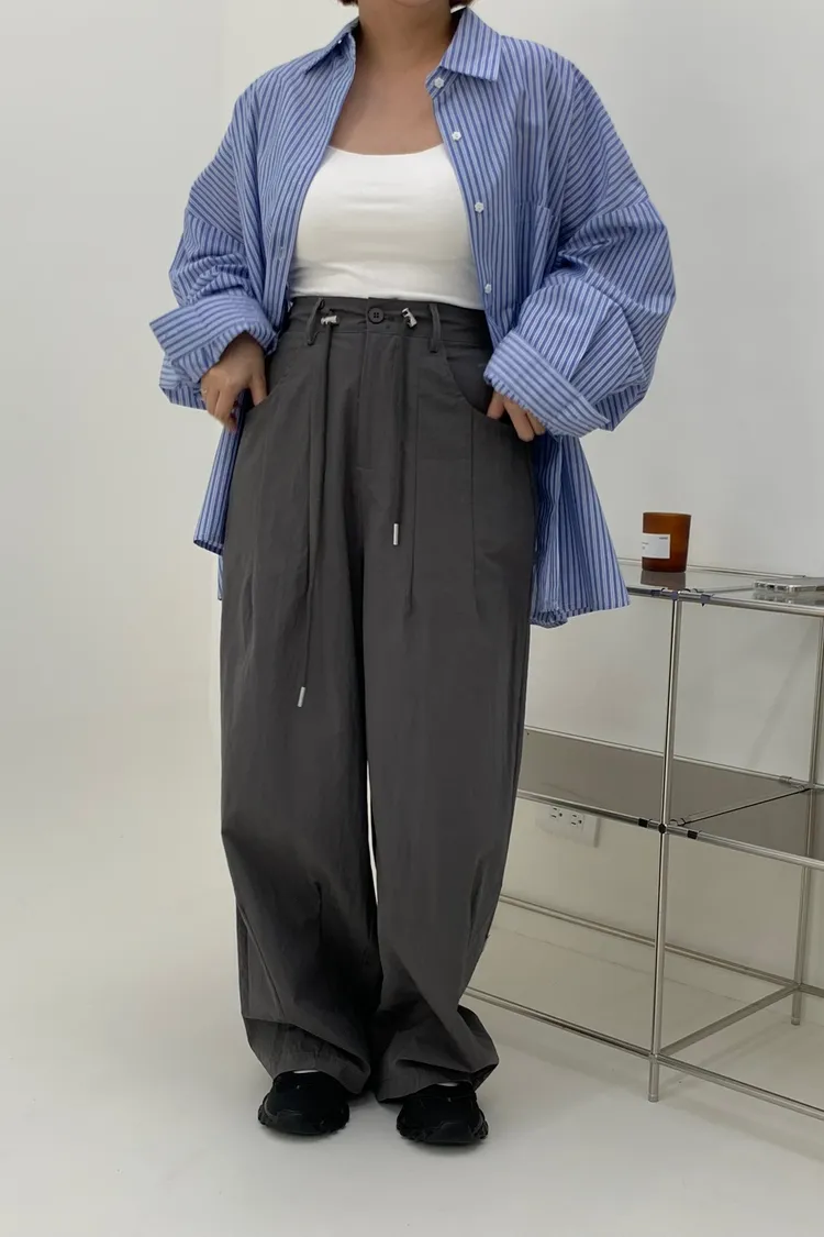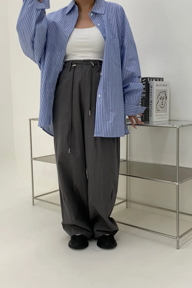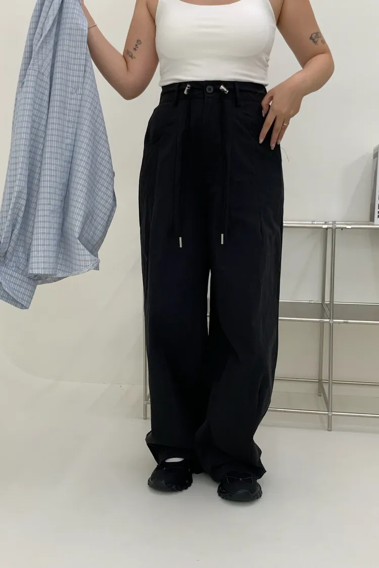 抽繩刷刷工裝褲/好看超顯瘦長