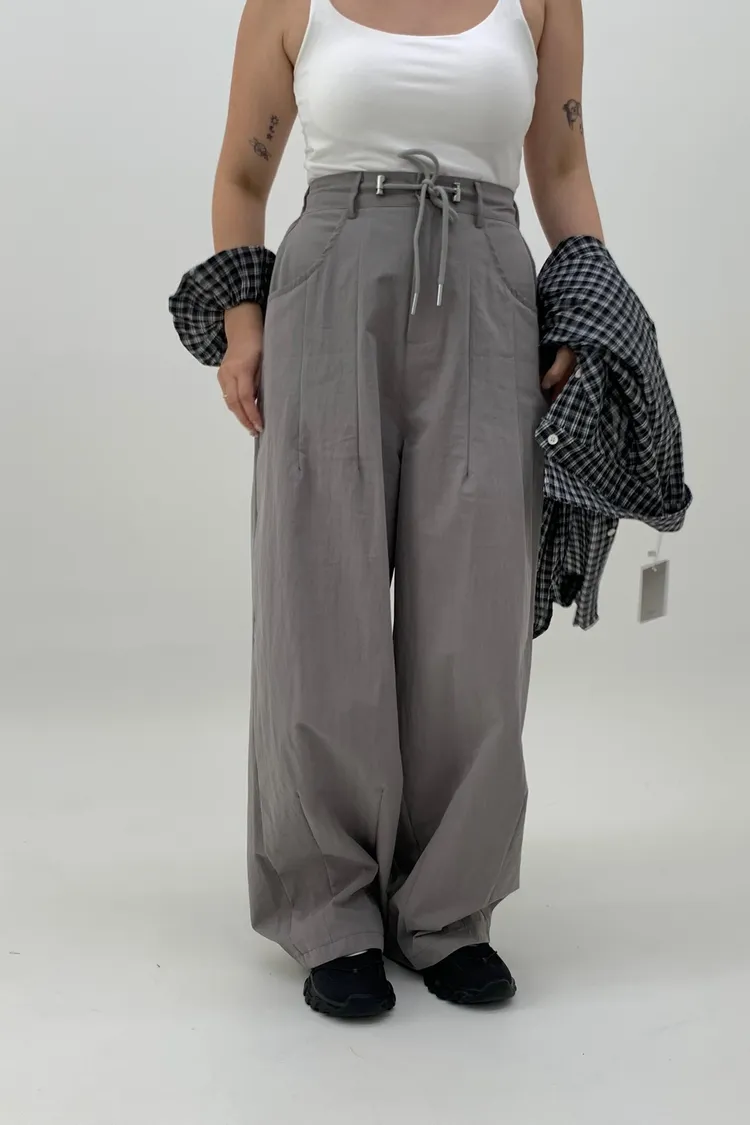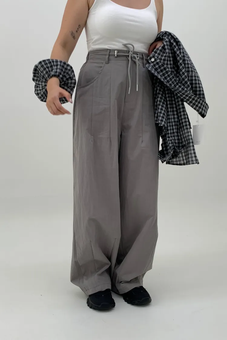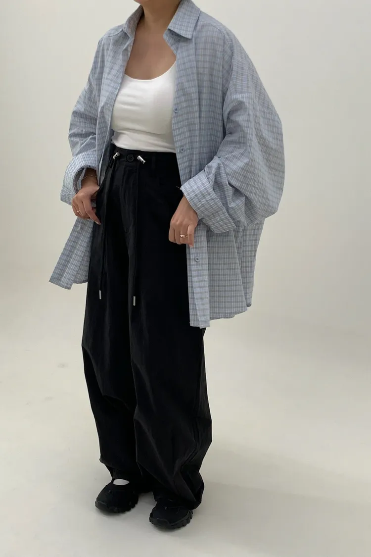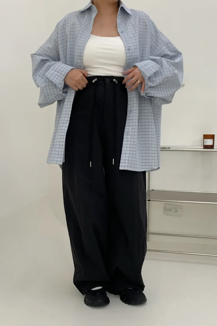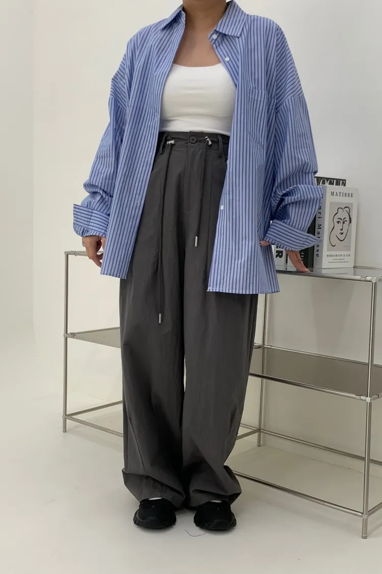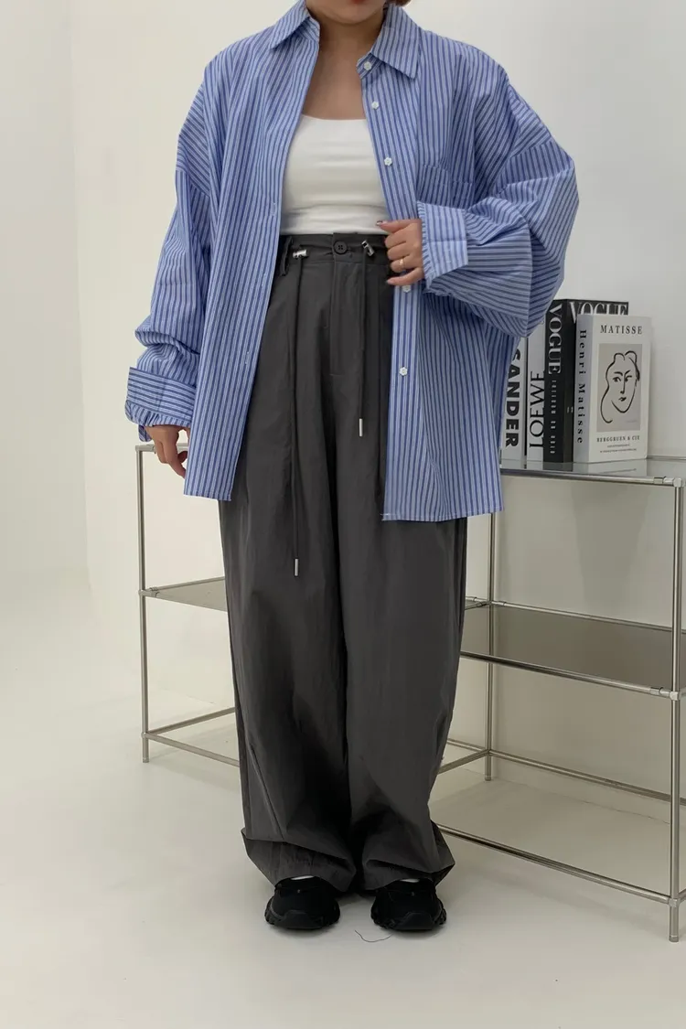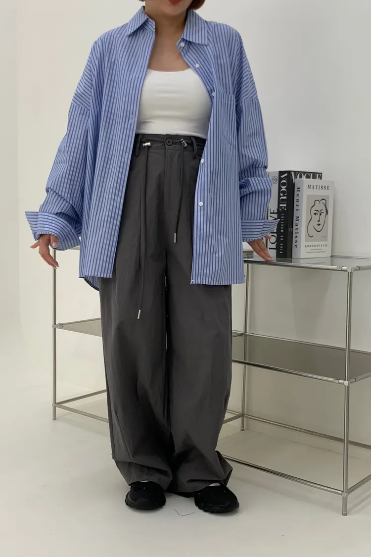 抽繩刷刷工裝褲/好看超顯瘦長