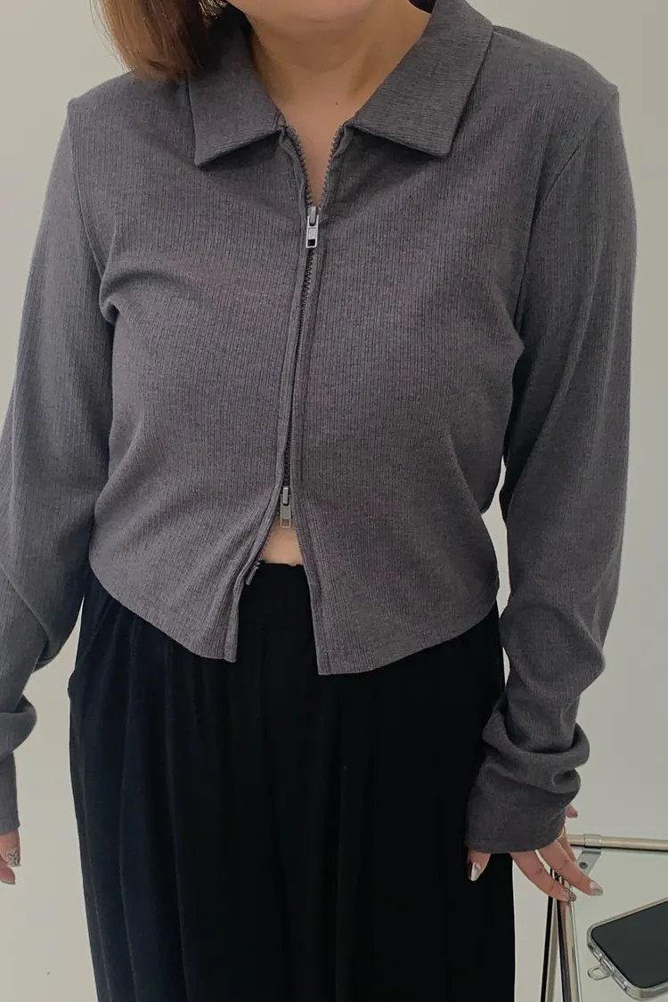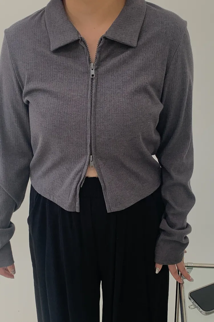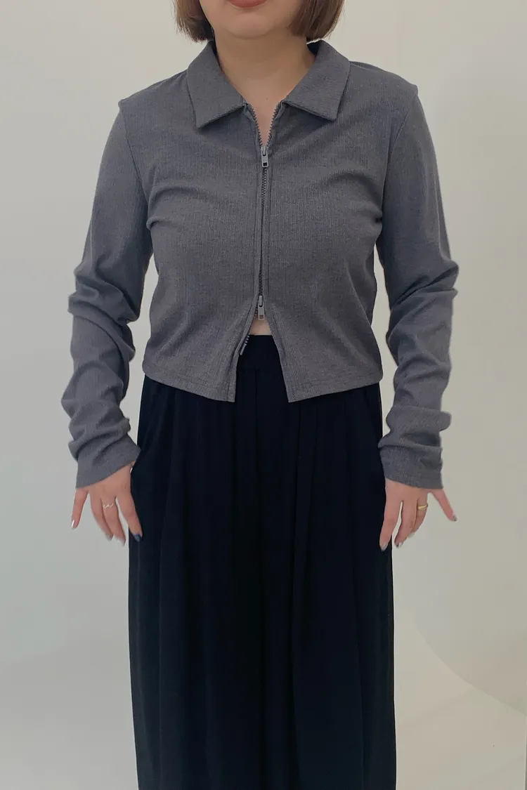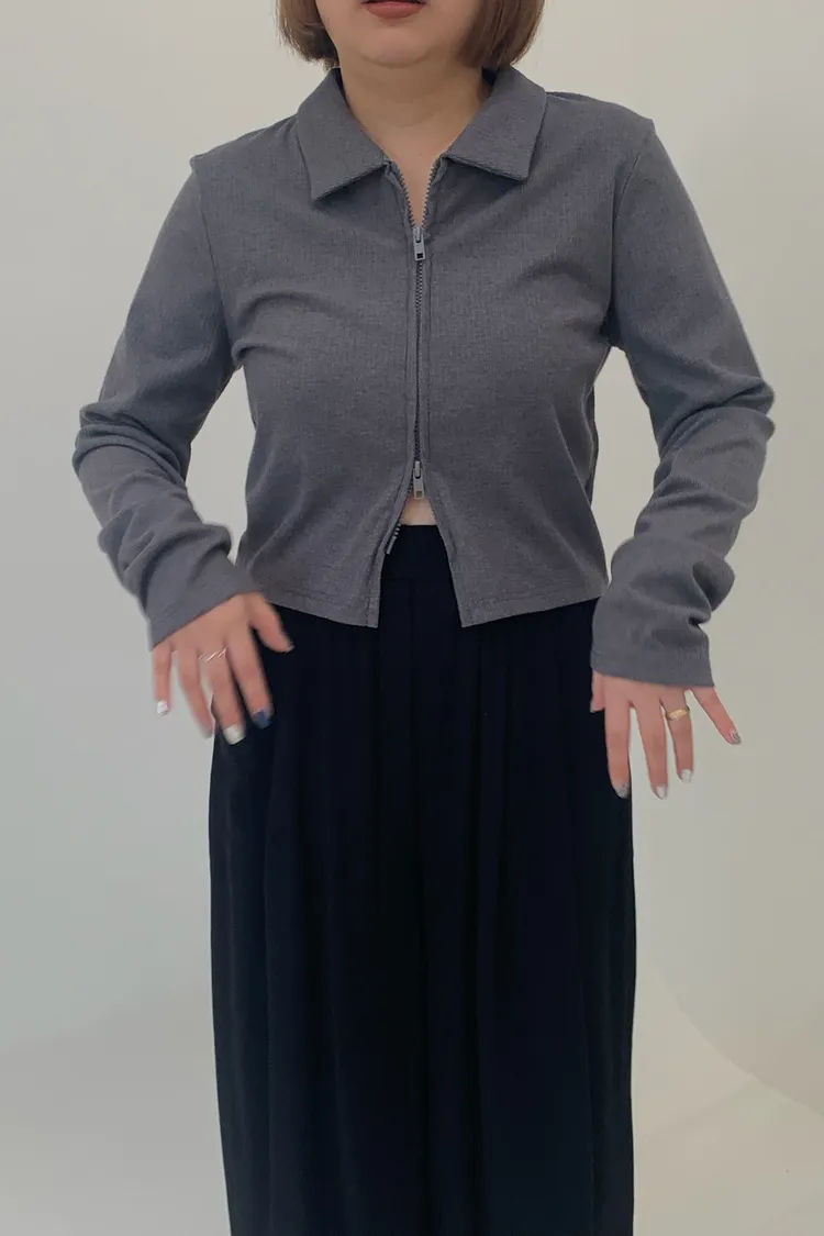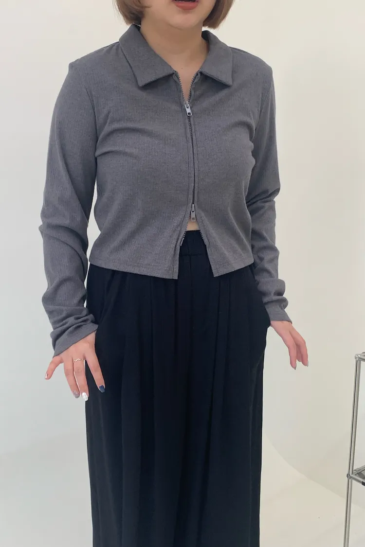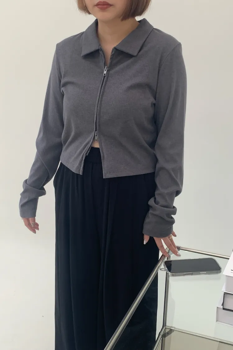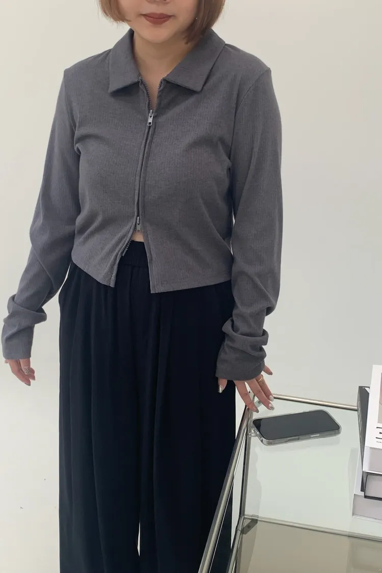 雙拉鍊翻領短版上衣