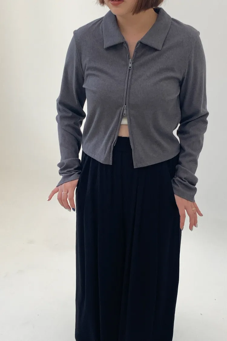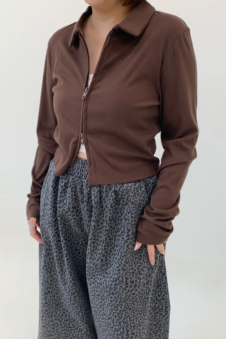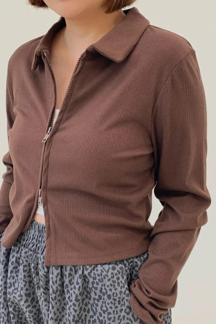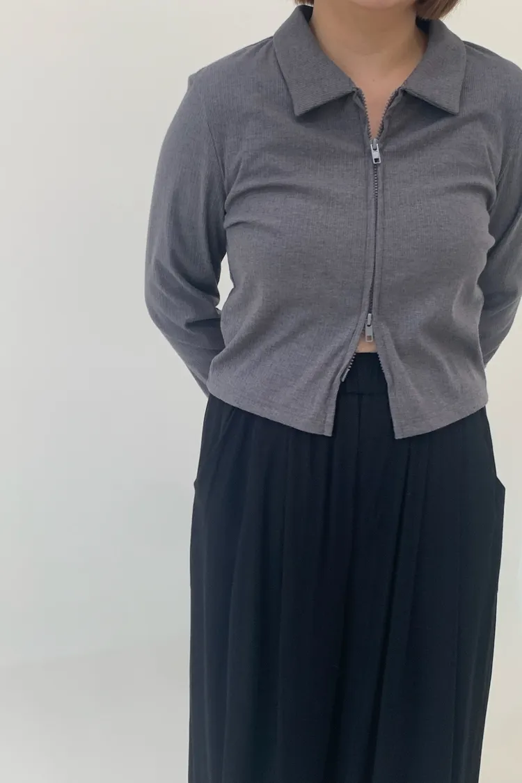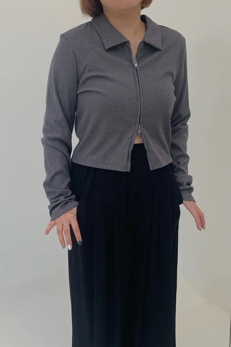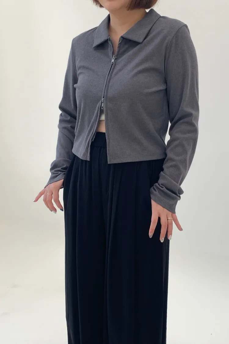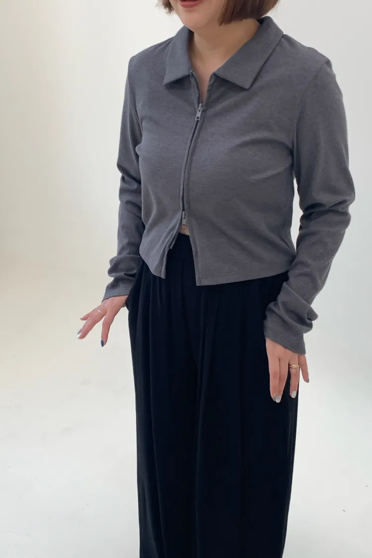 雙拉鍊翻領短版上衣