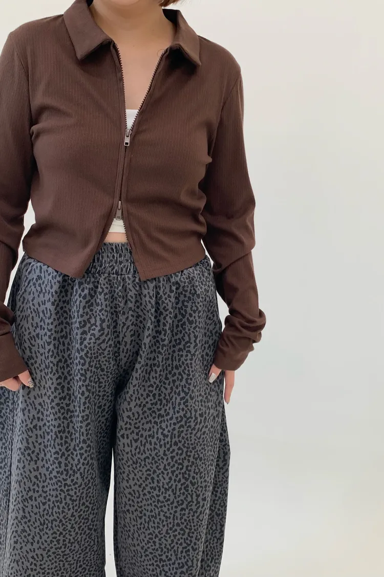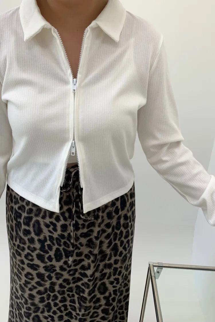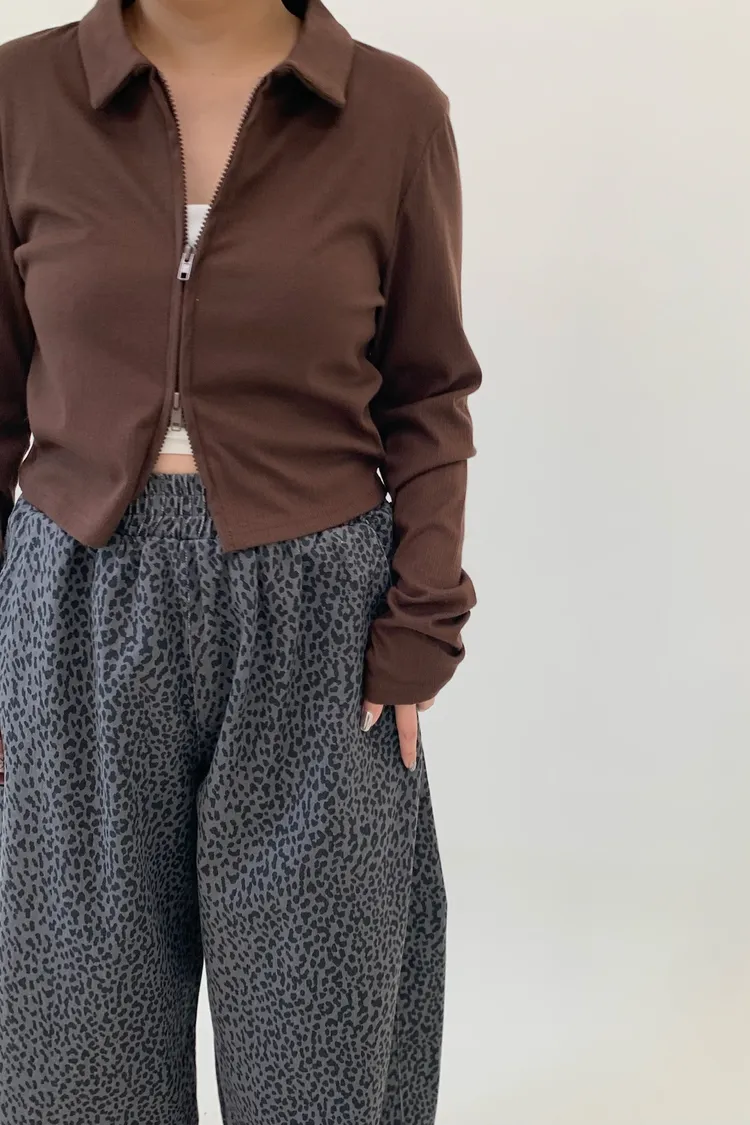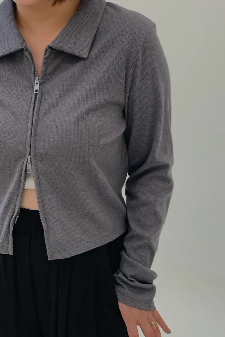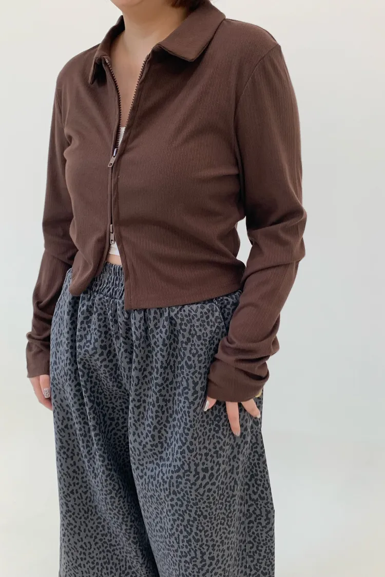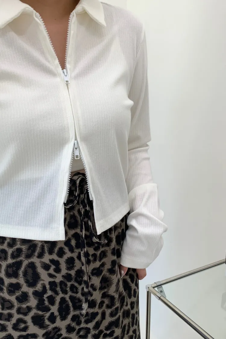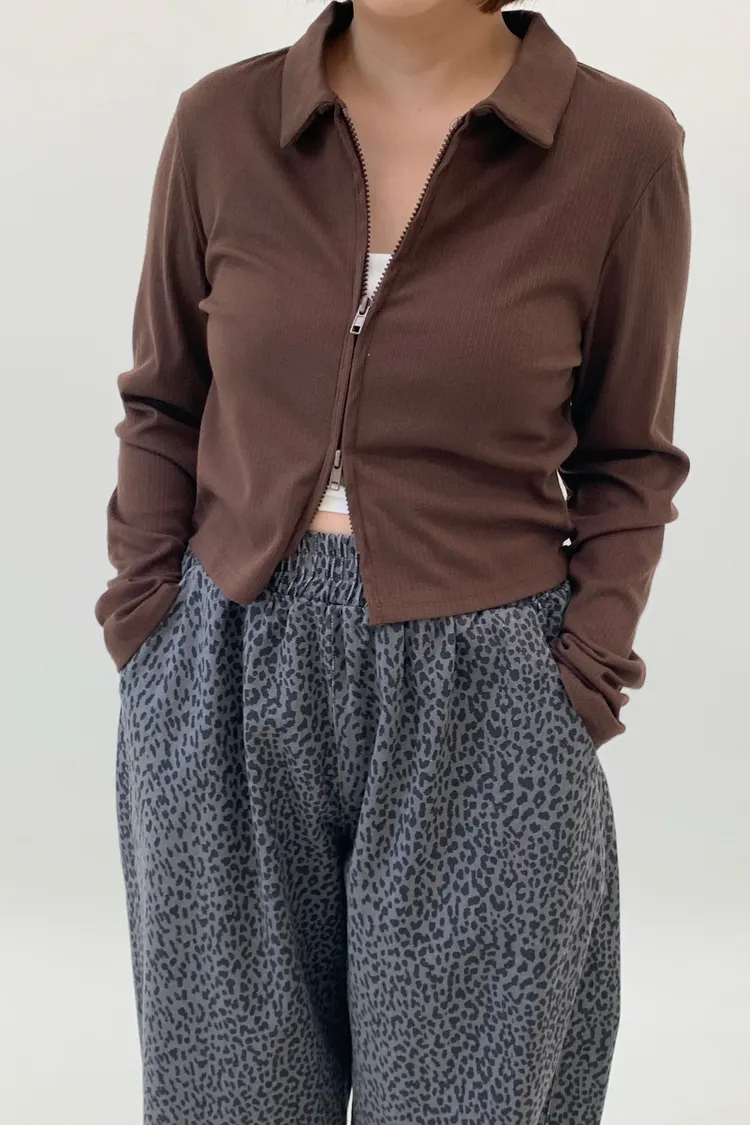 雙拉鍊翻領短版上衣