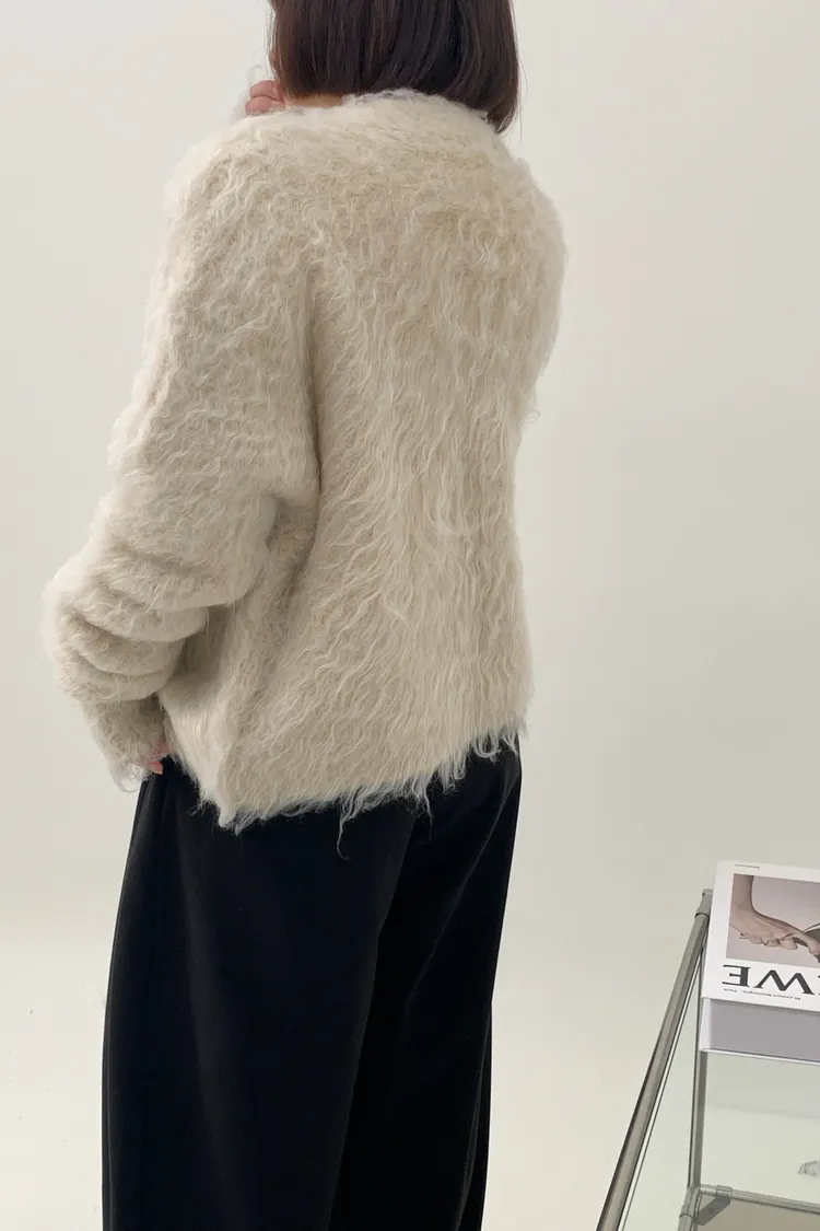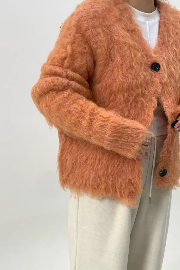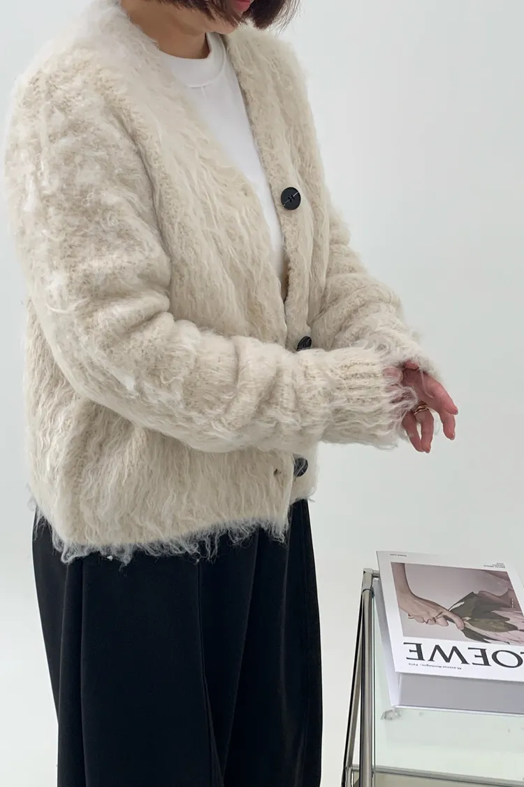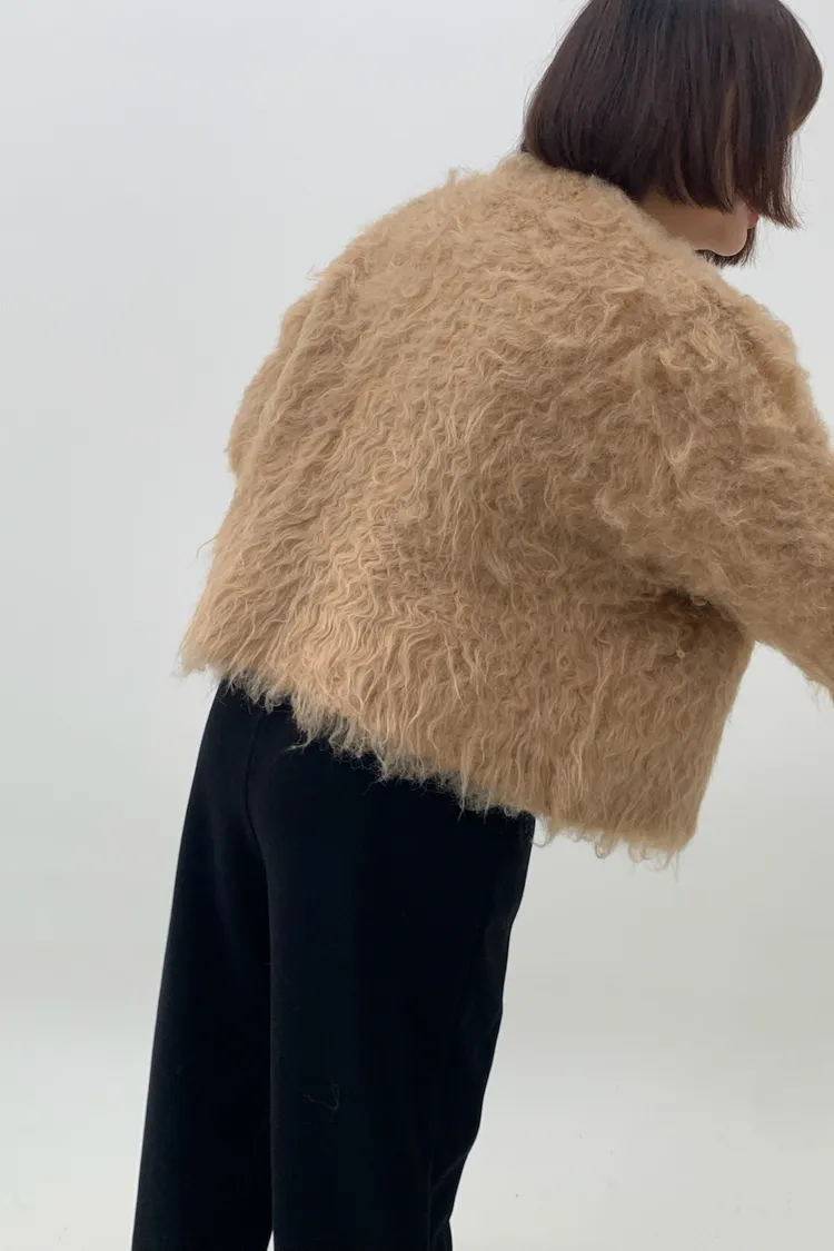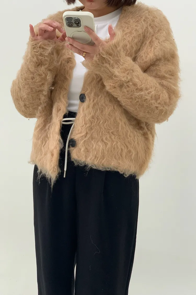 短版拉毛排扣針織外套