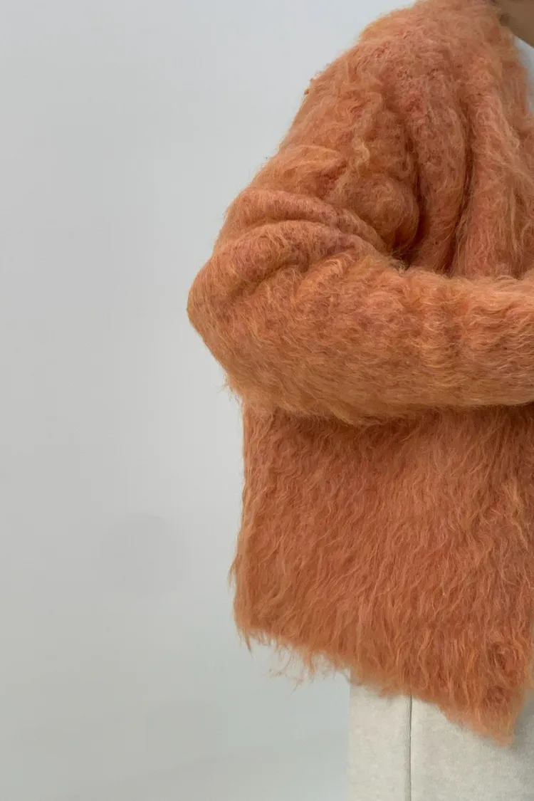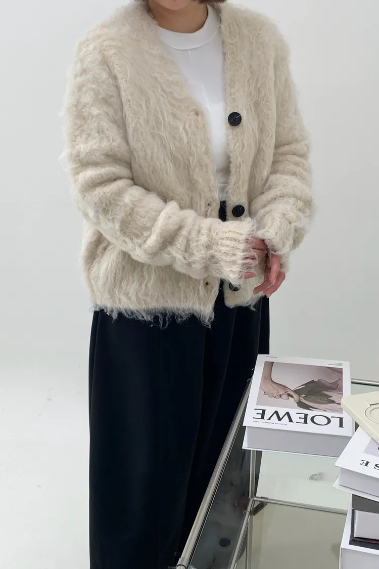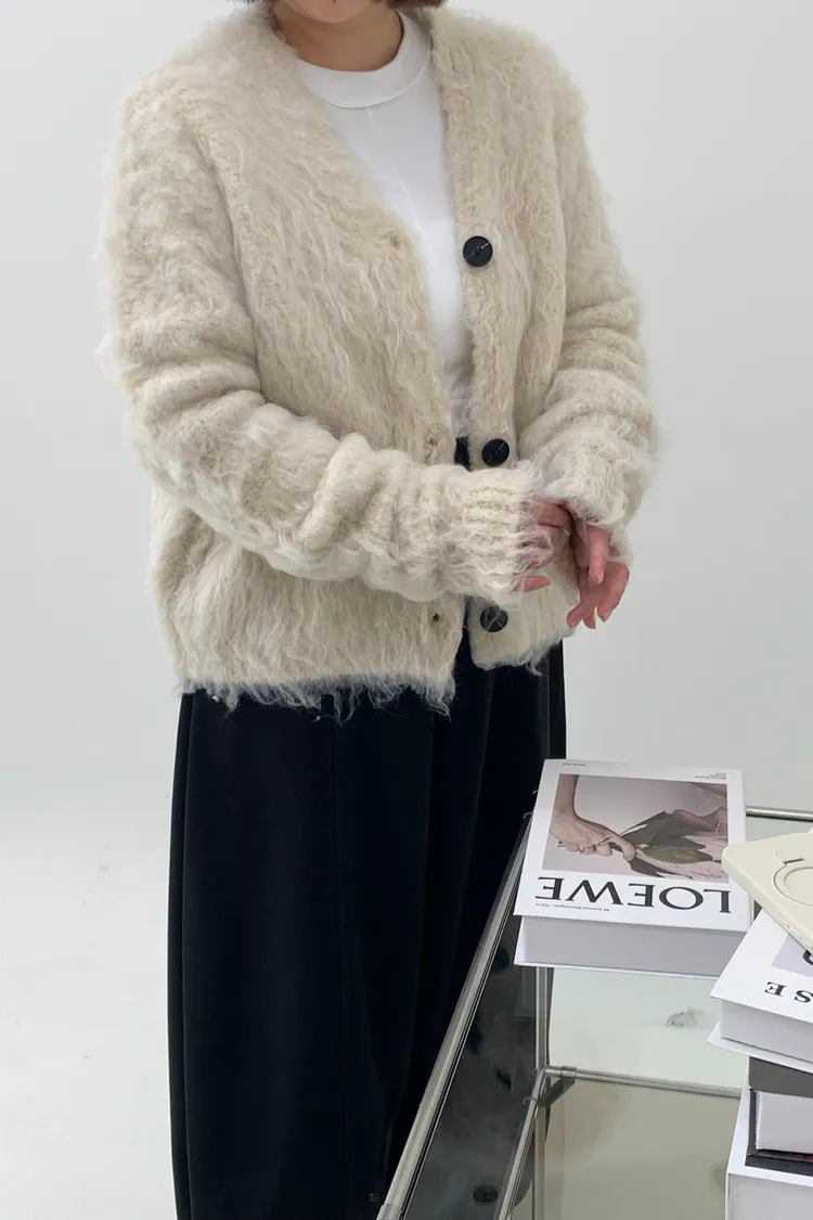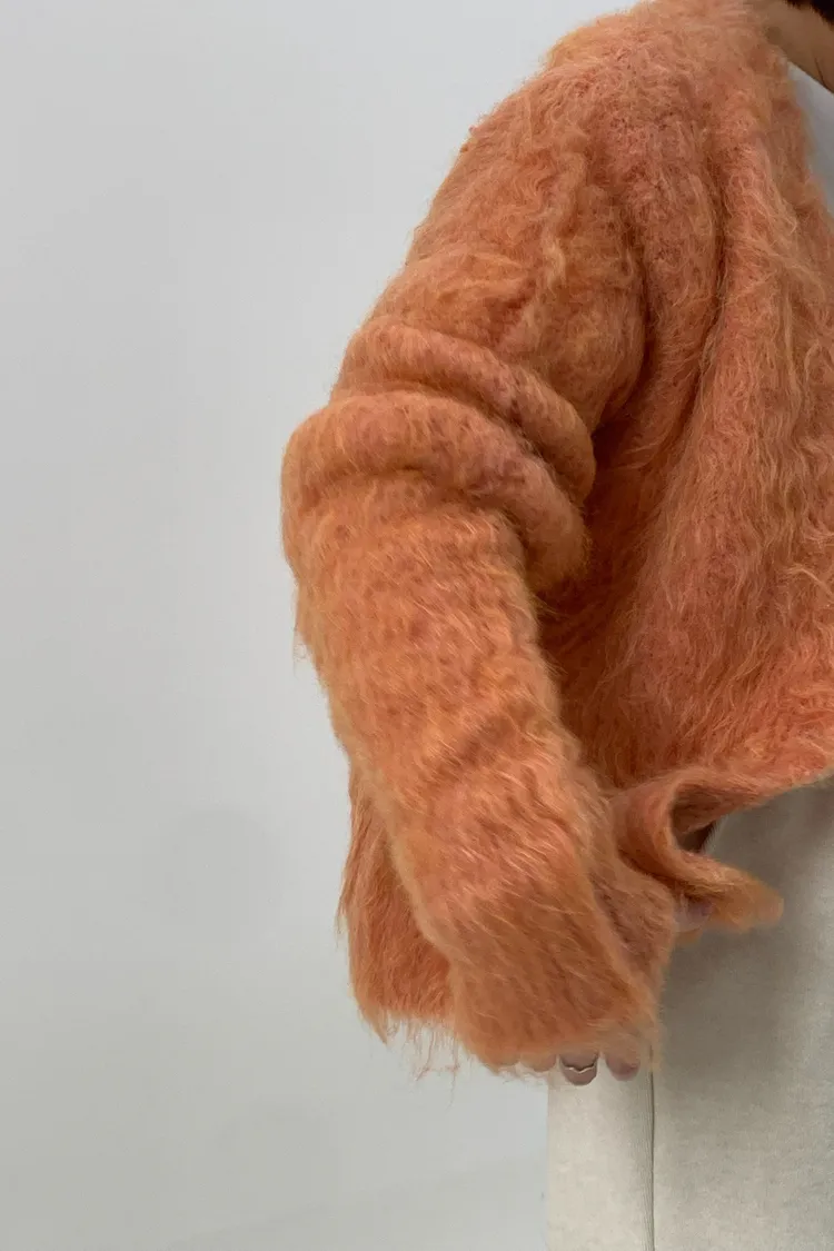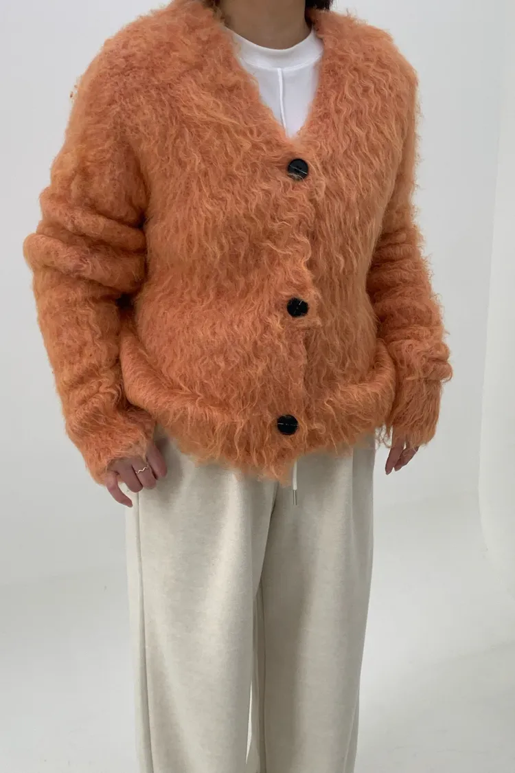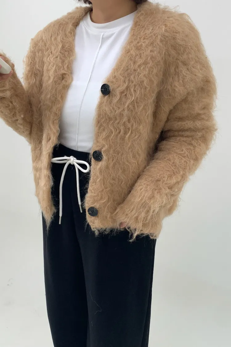 短版拉毛排扣針織外套