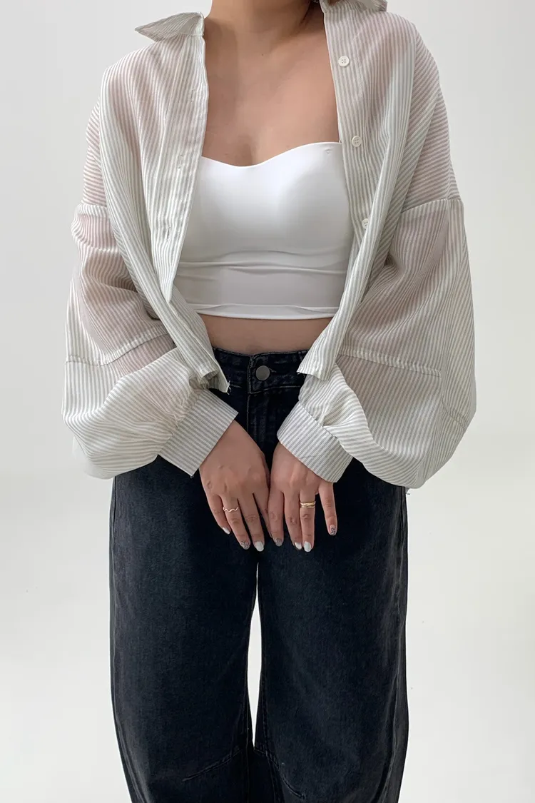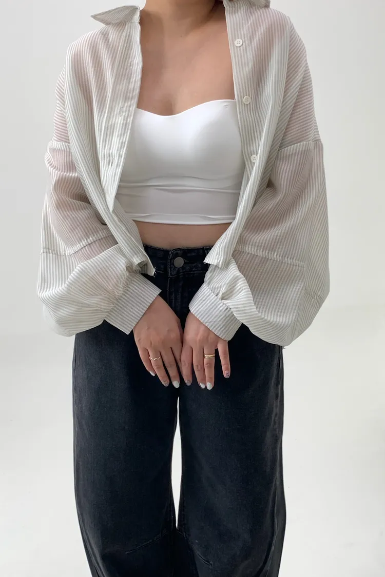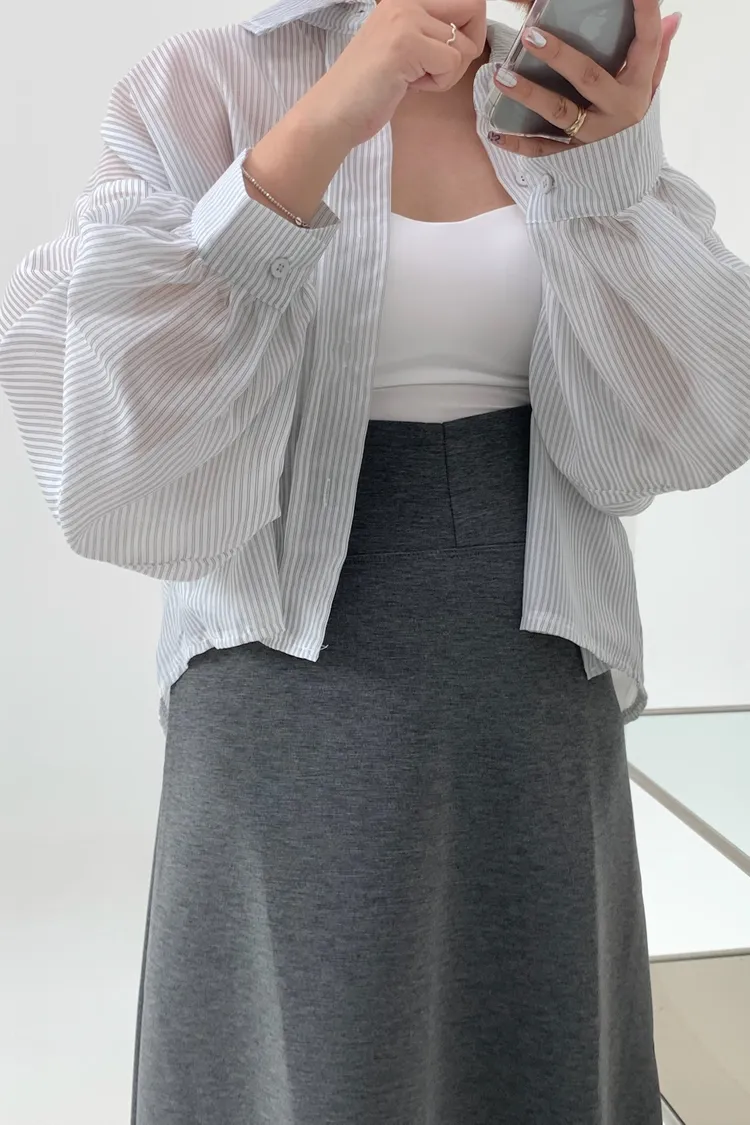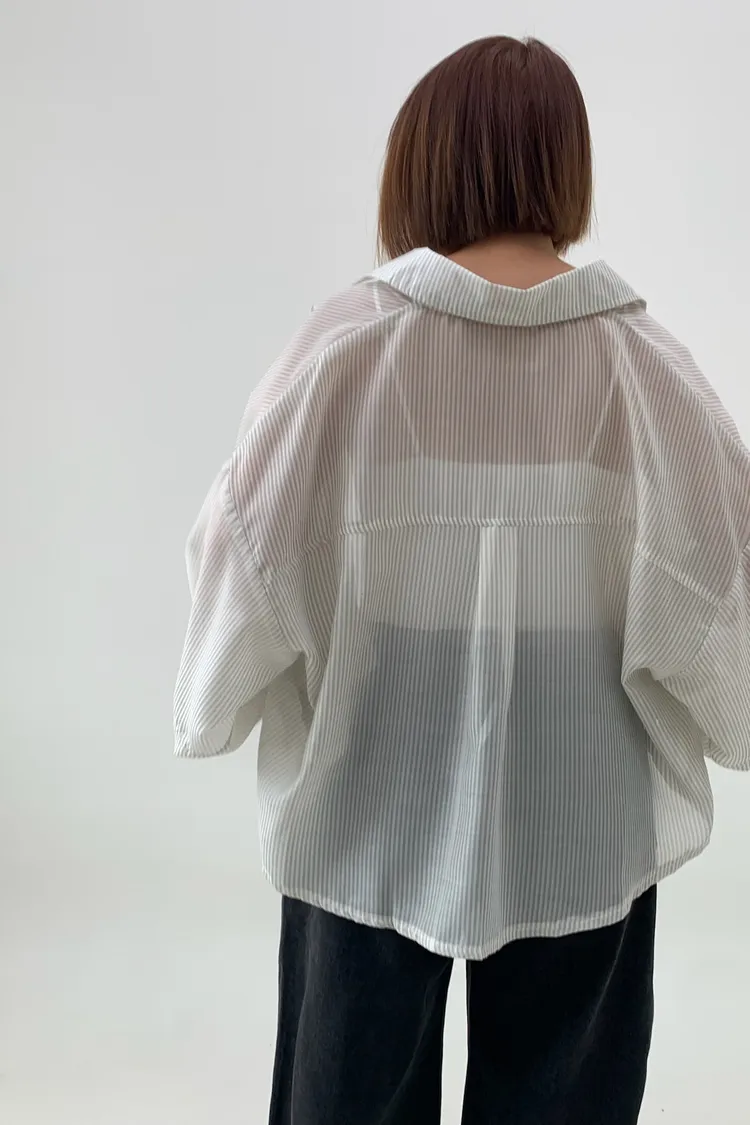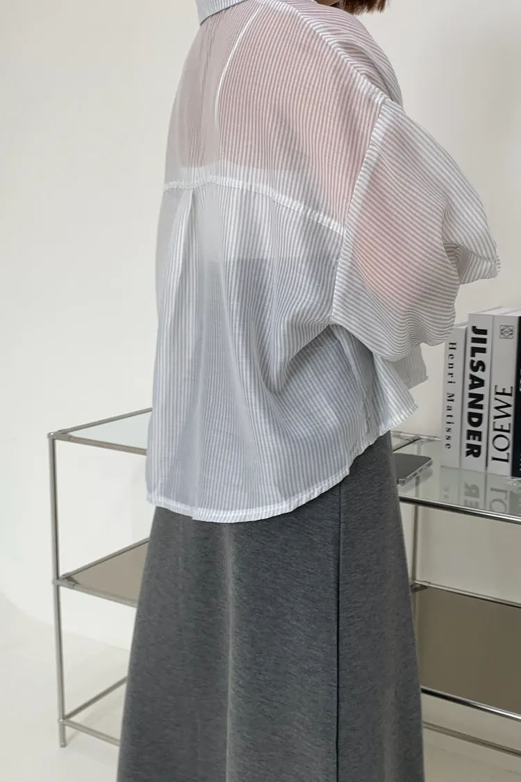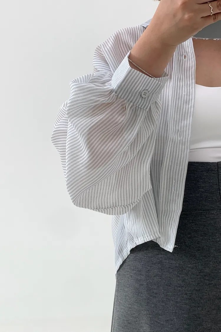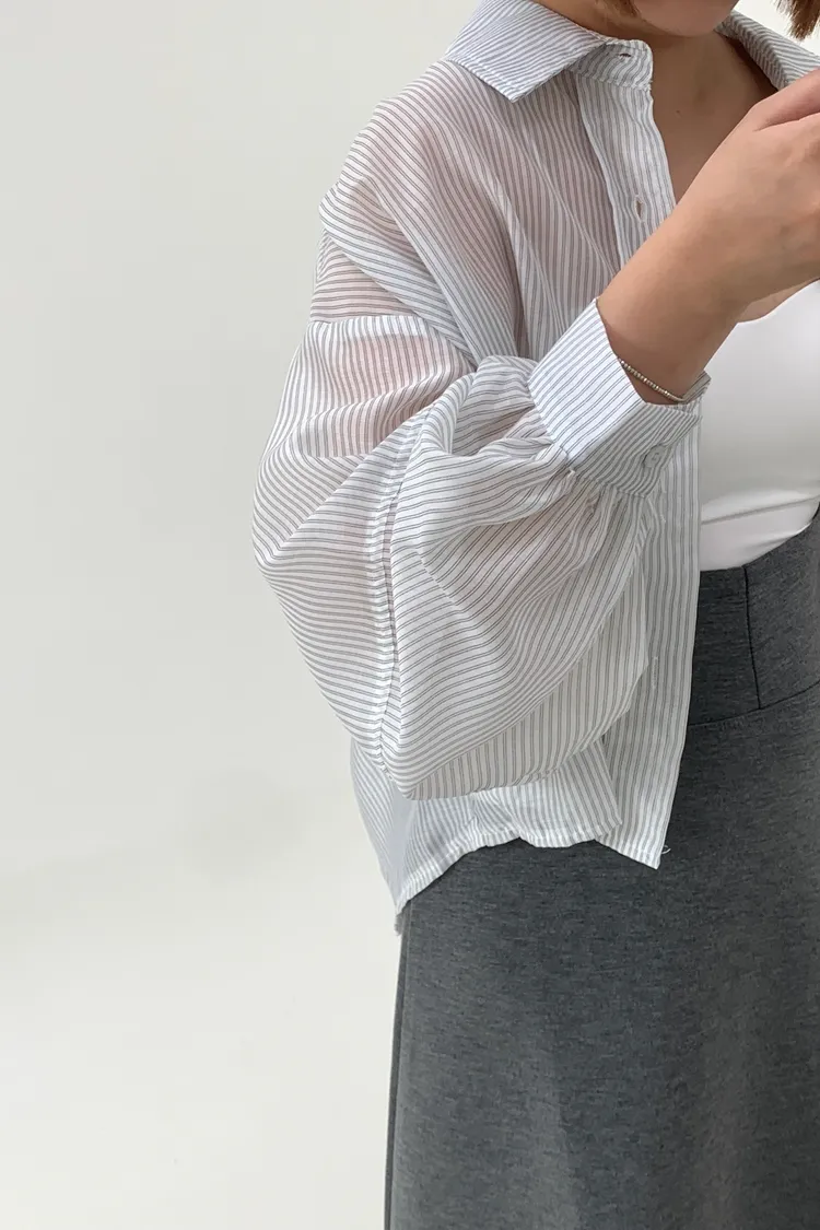 短版澎袖條紋襯衫