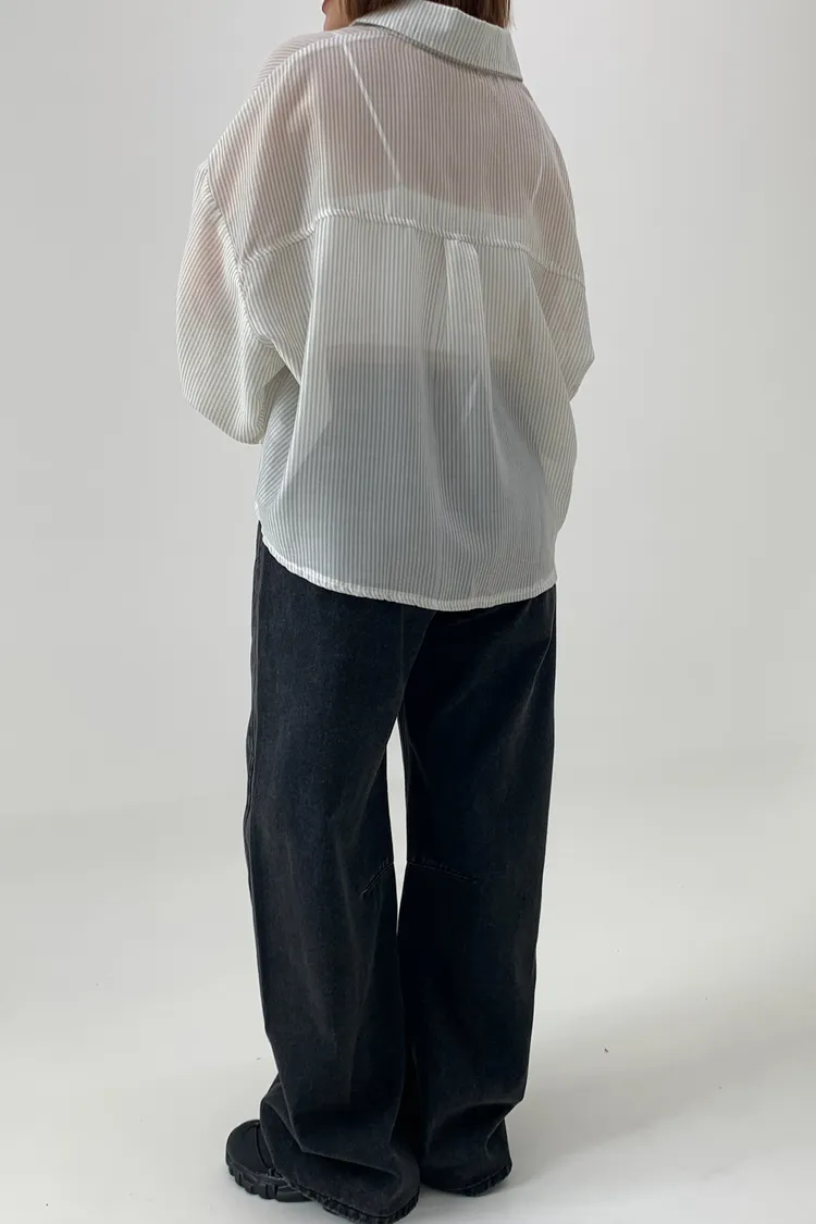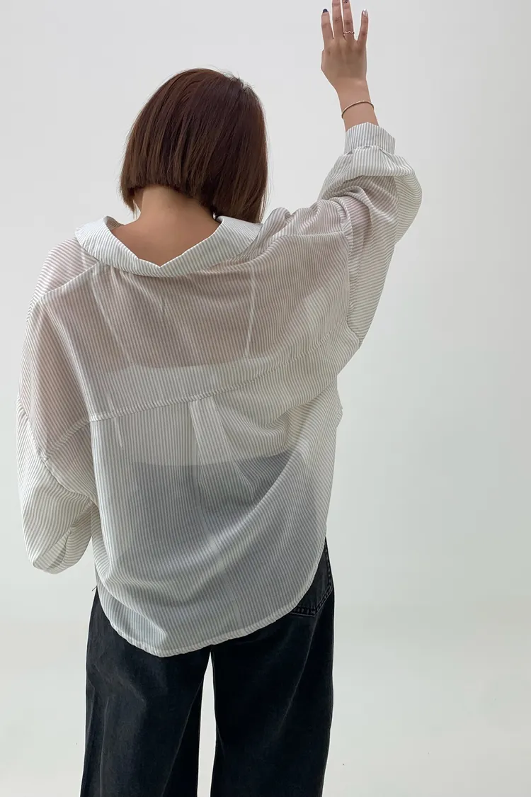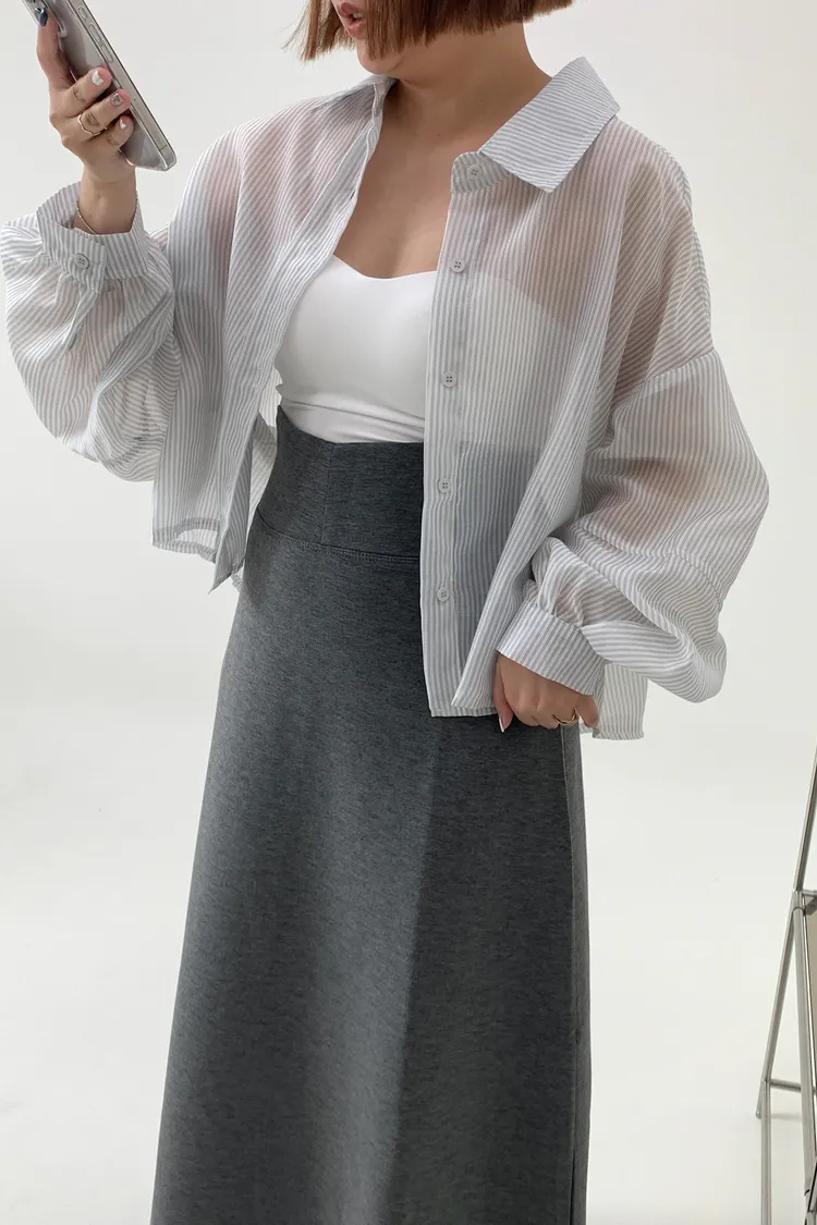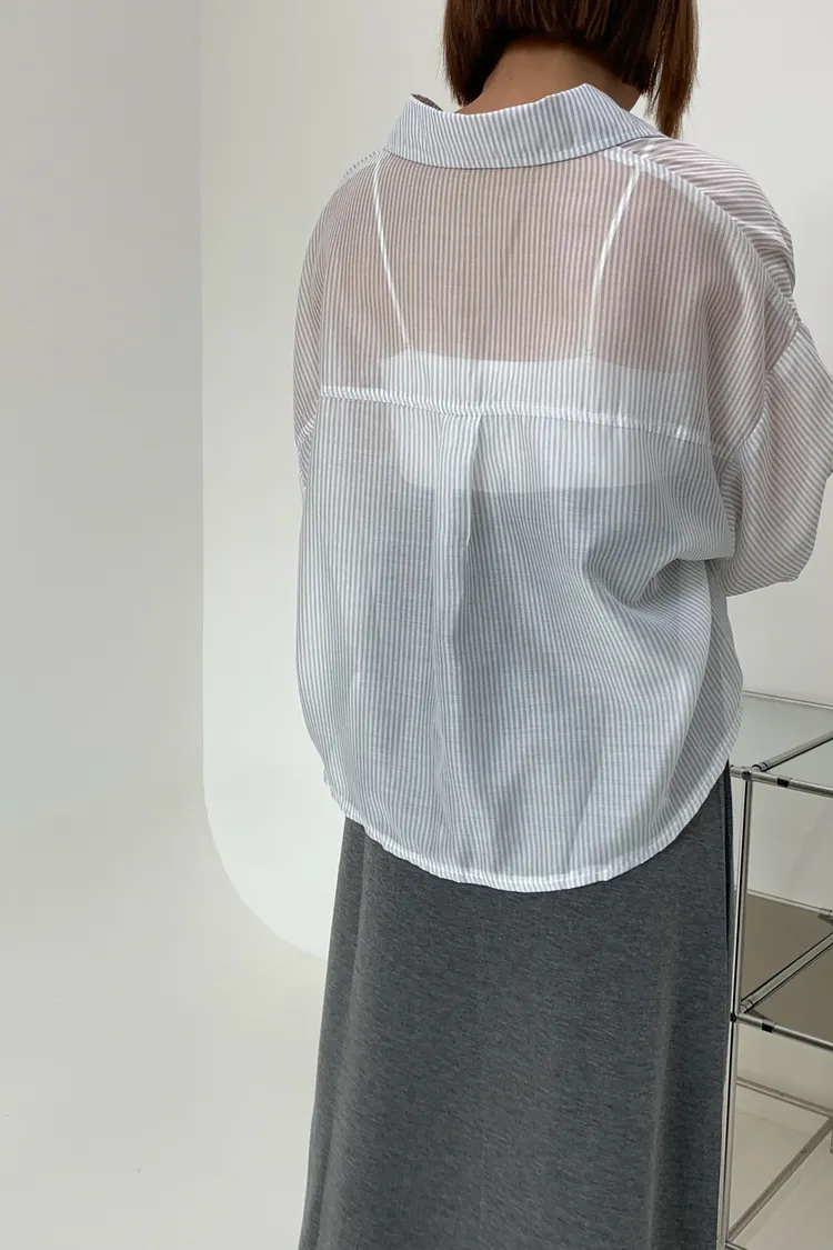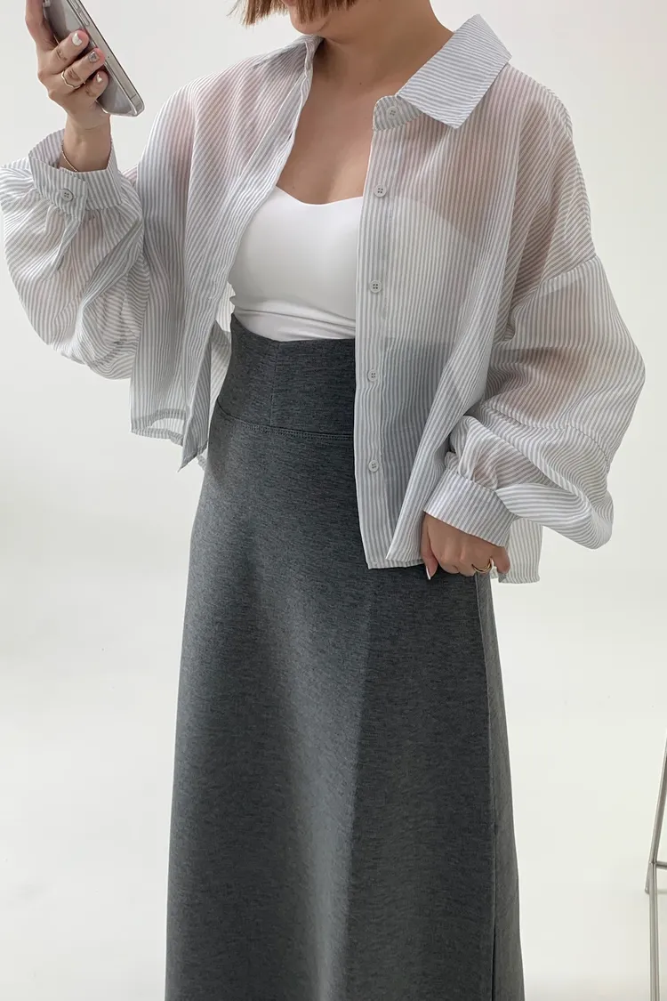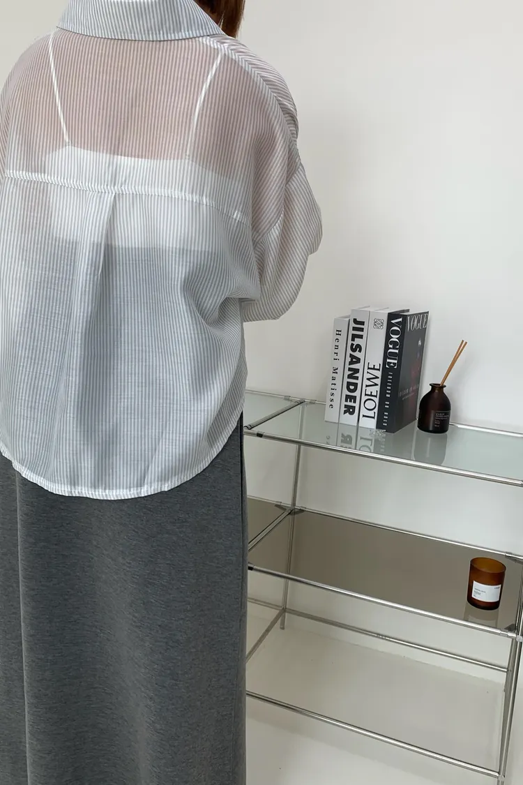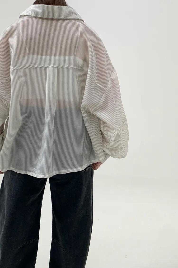 短版澎袖條紋襯衫