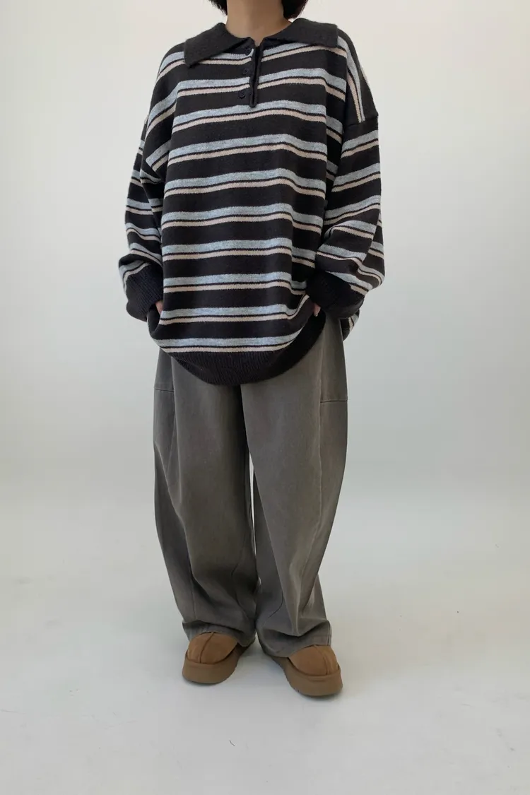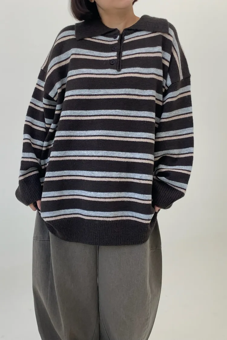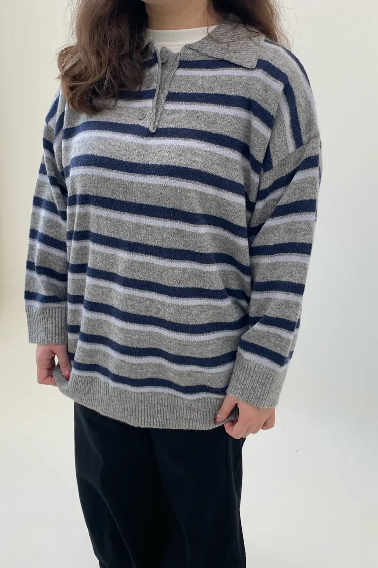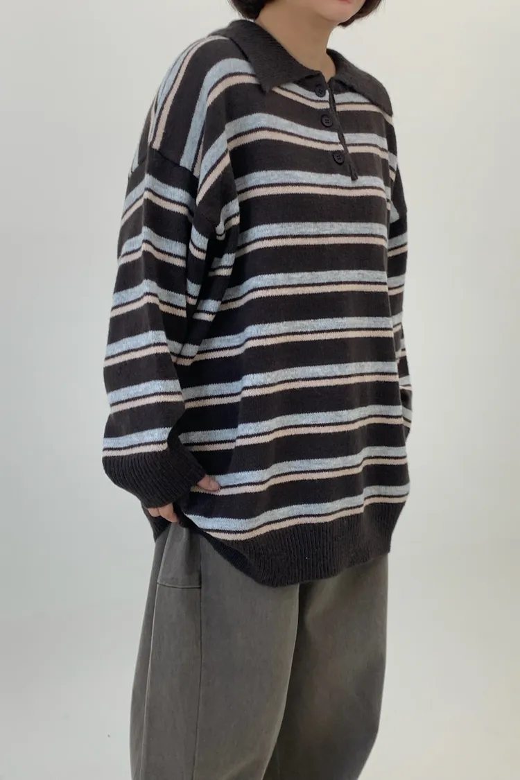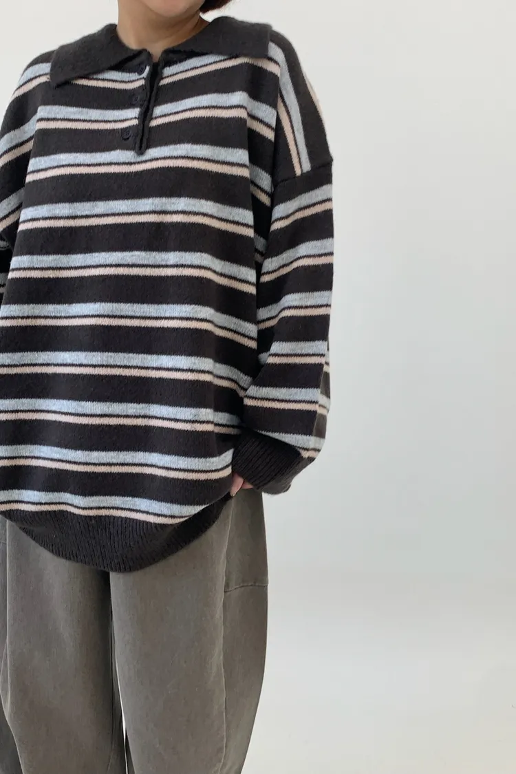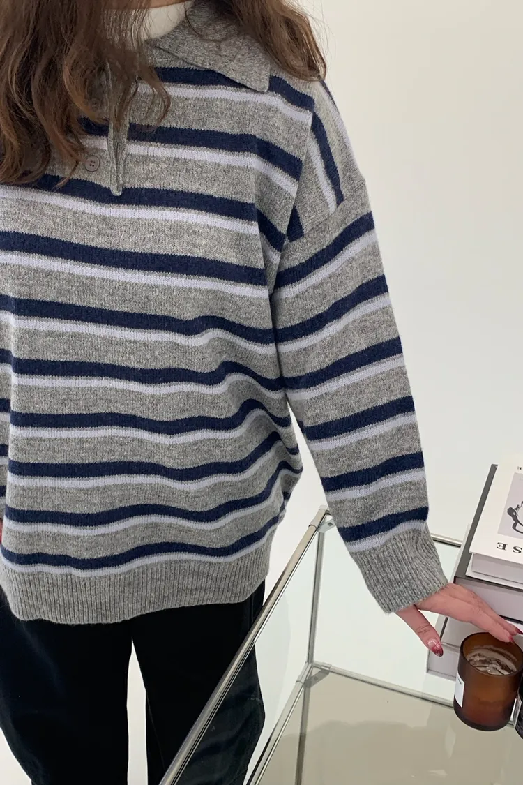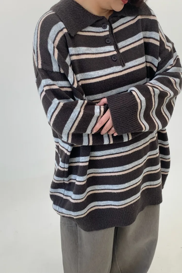 橫條翻領毛衣