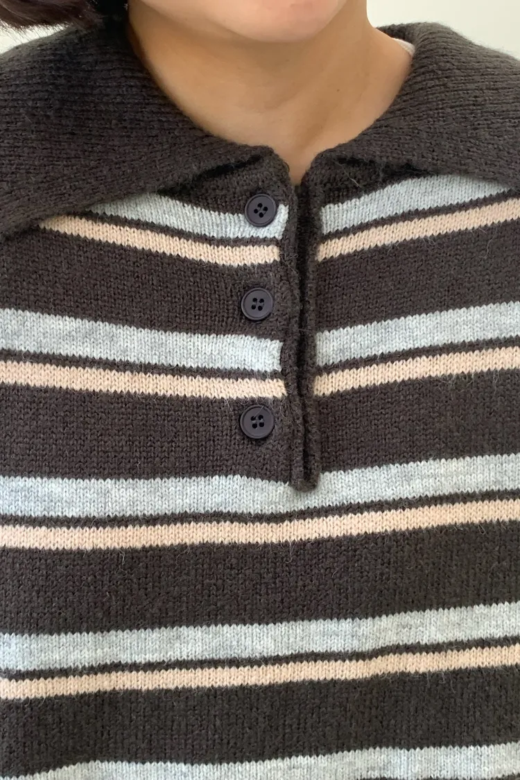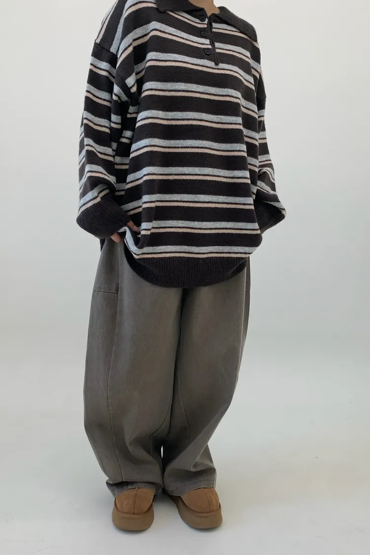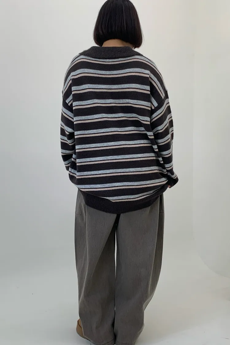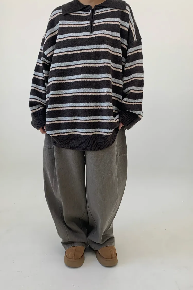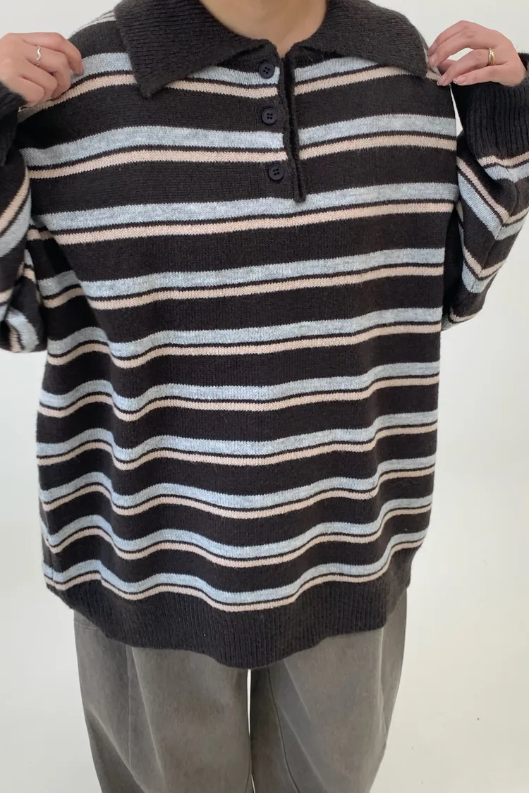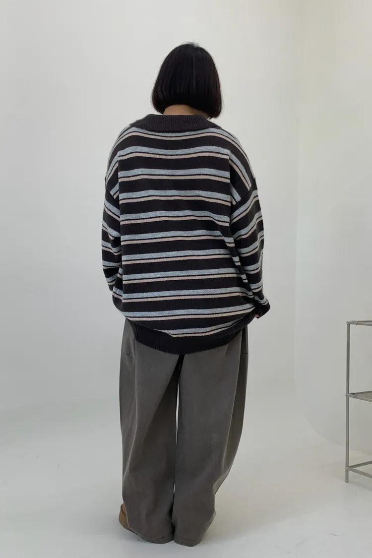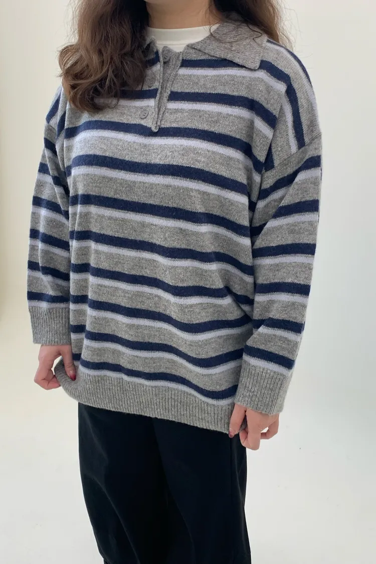橫條翻領毛衣