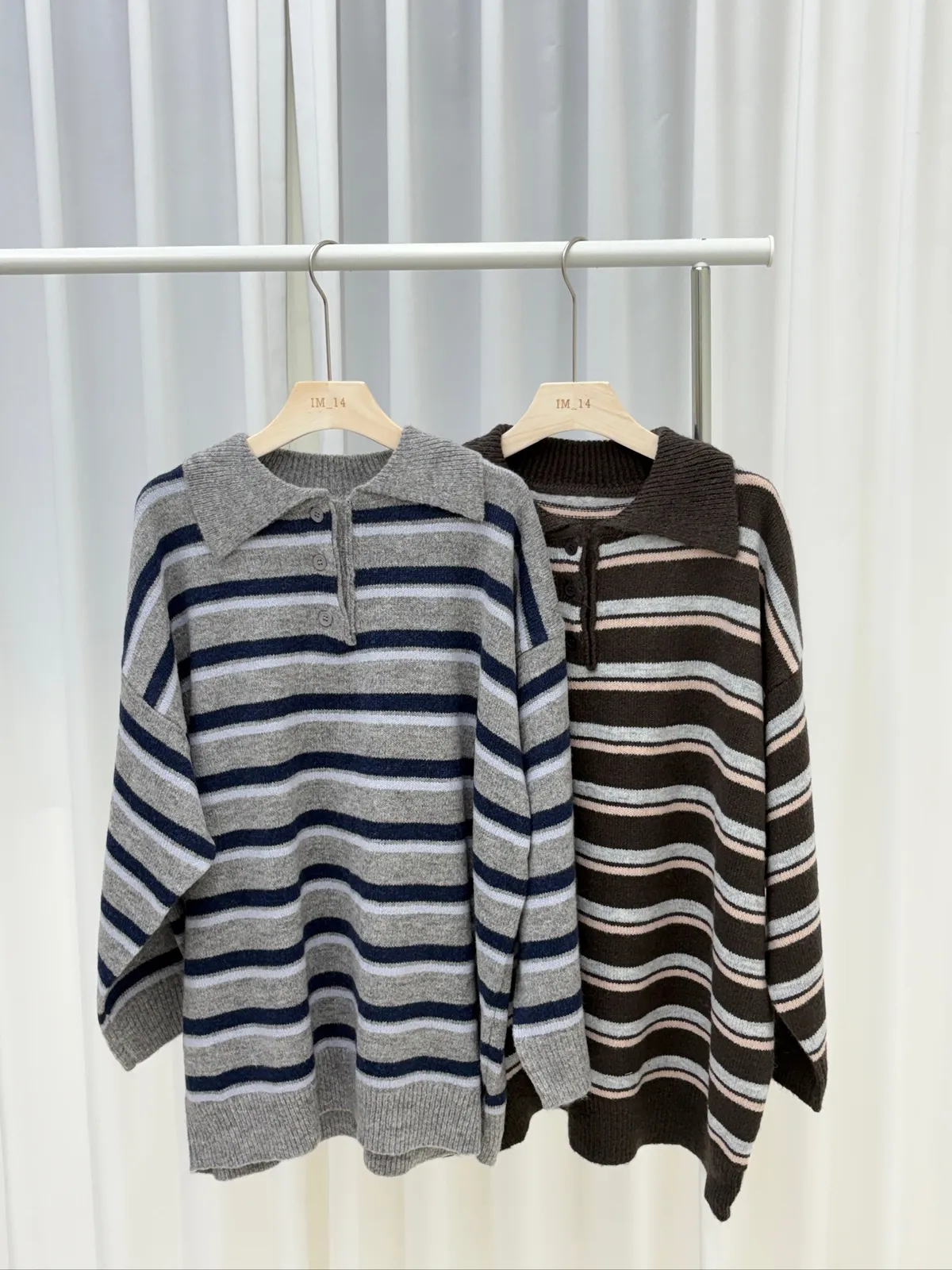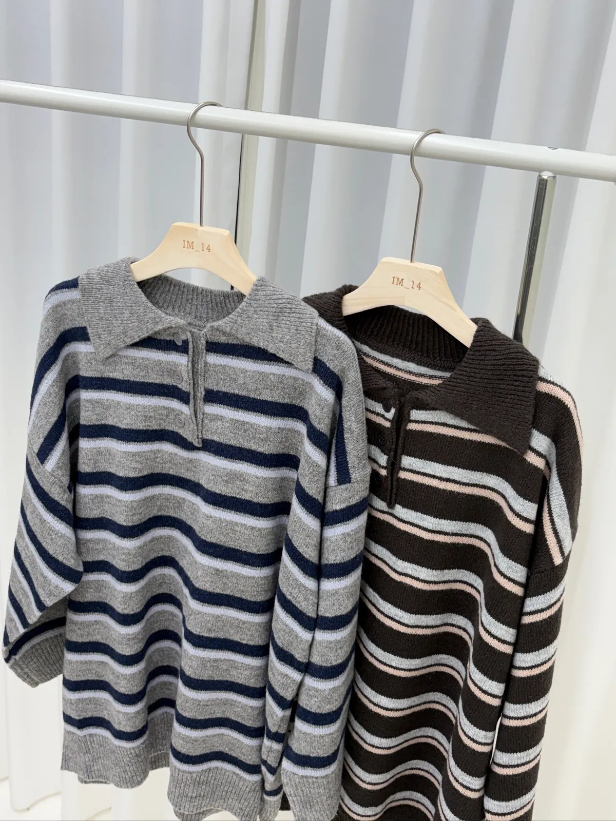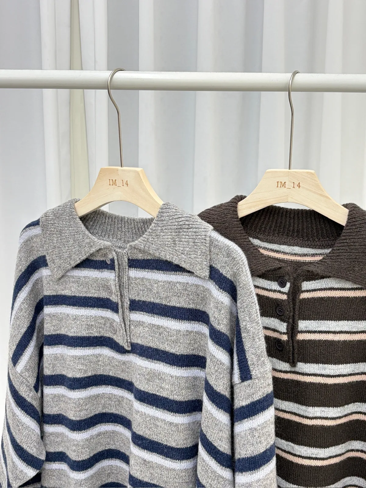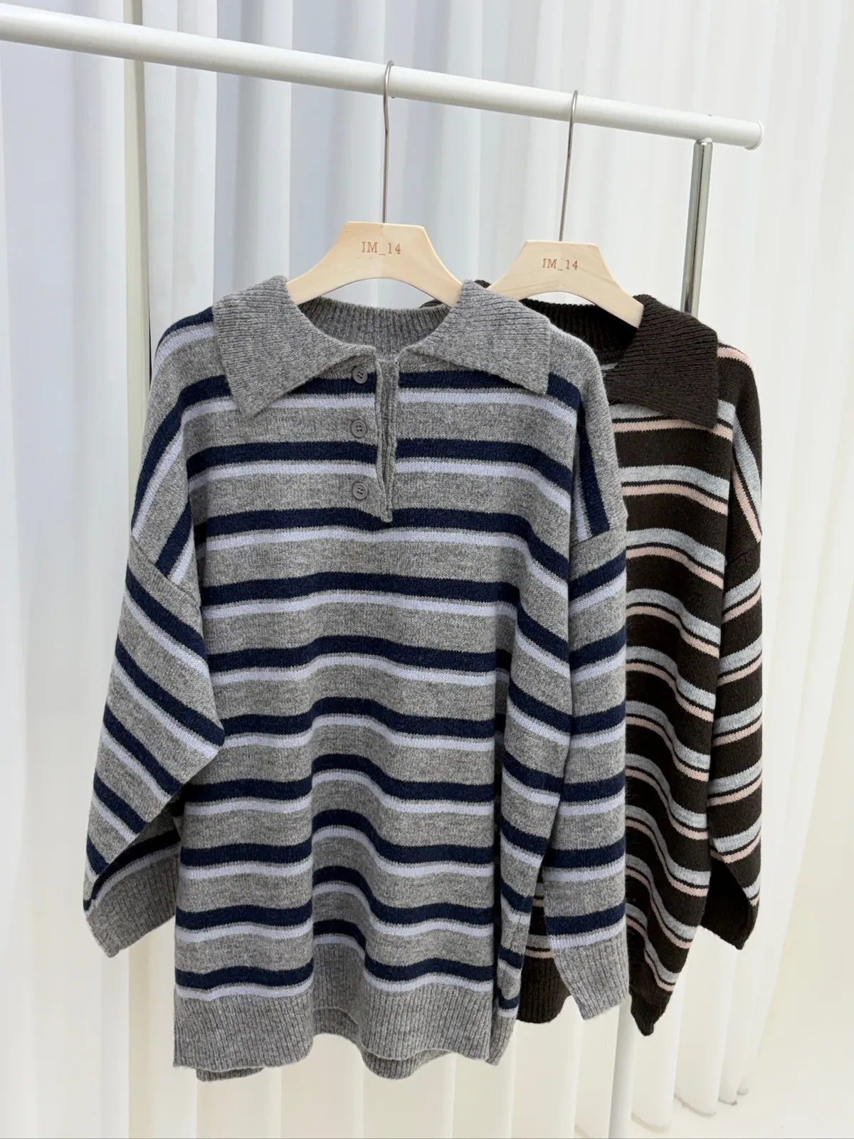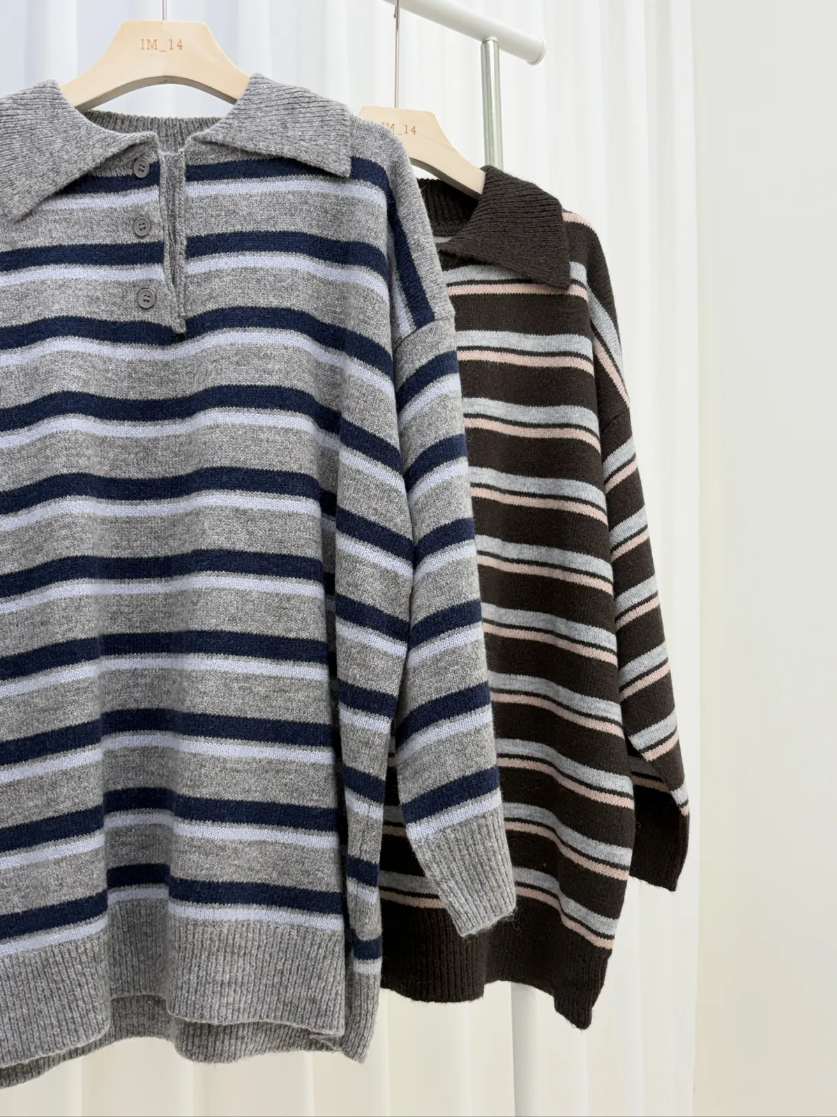 橫條翻領毛衣