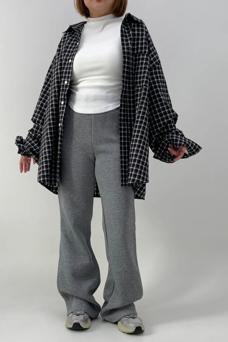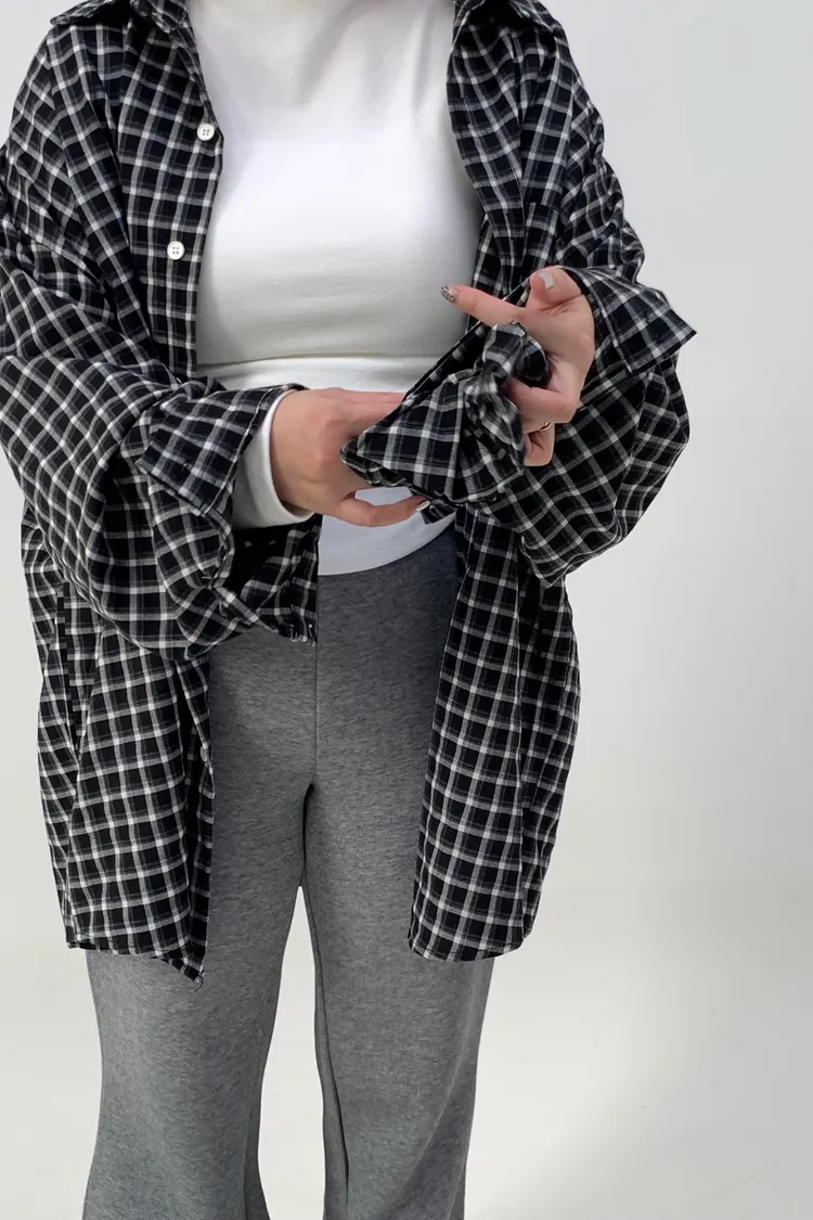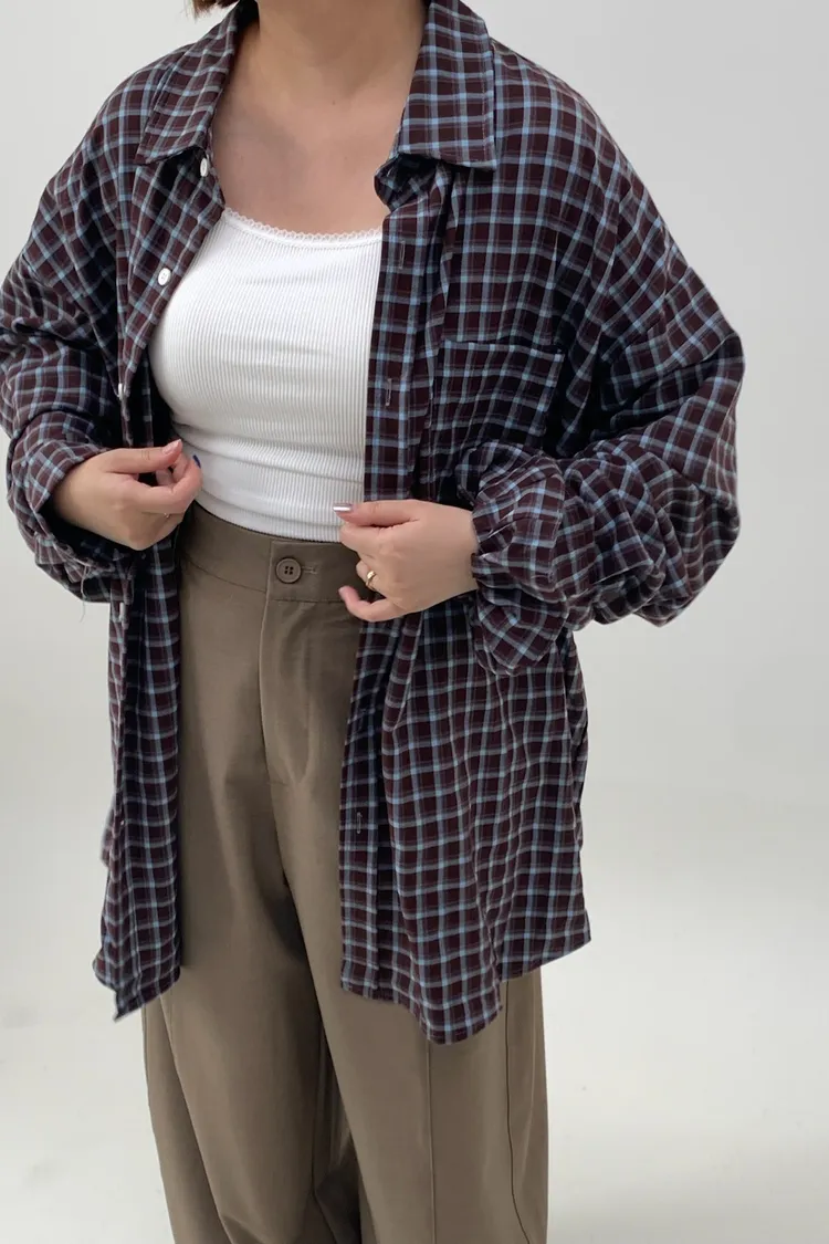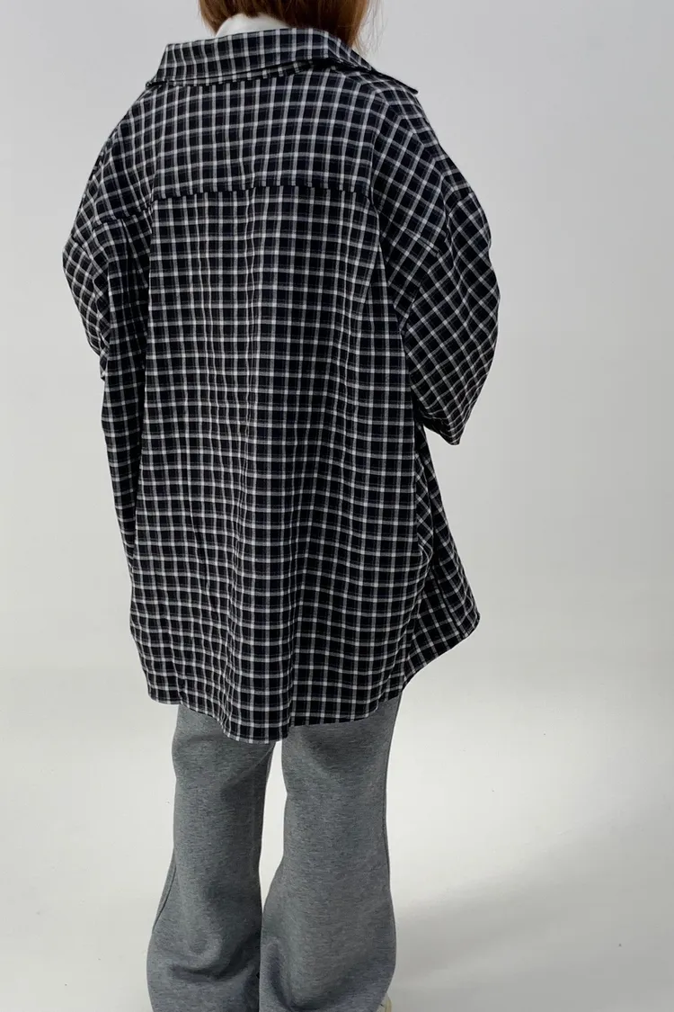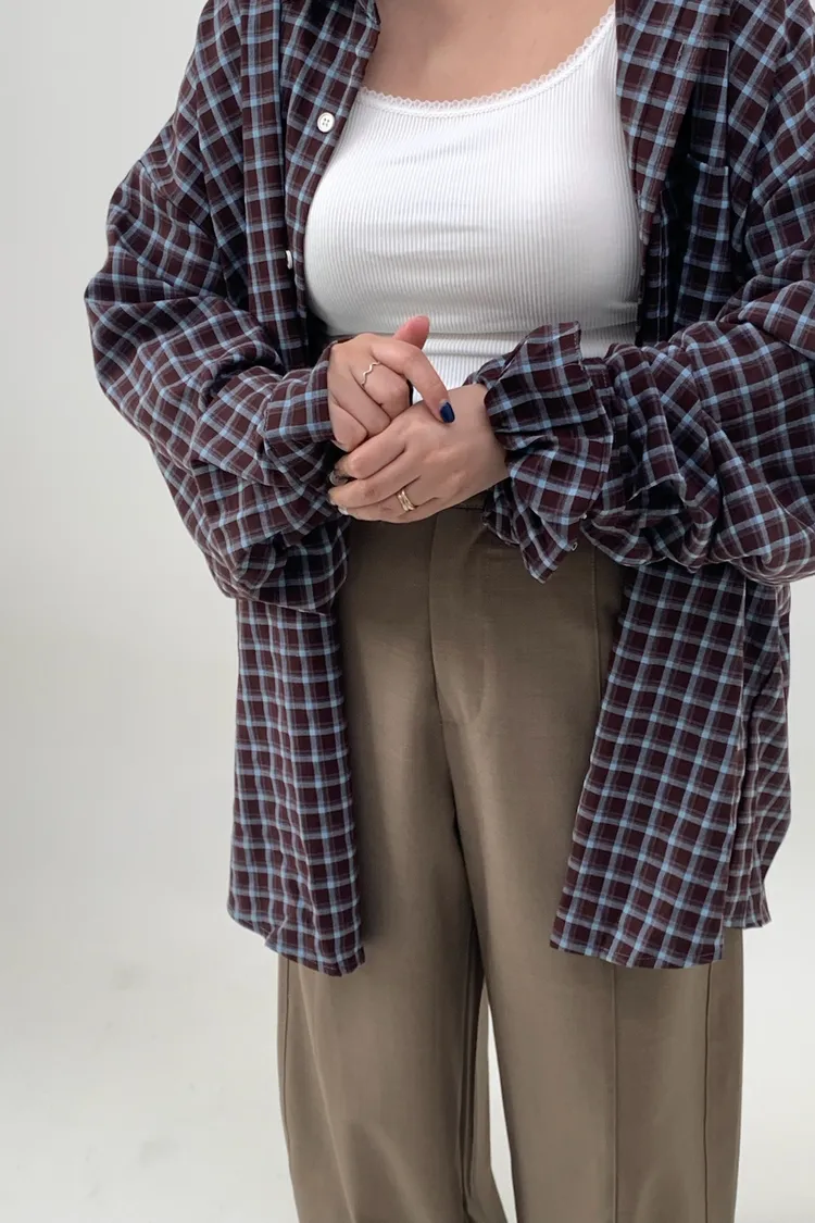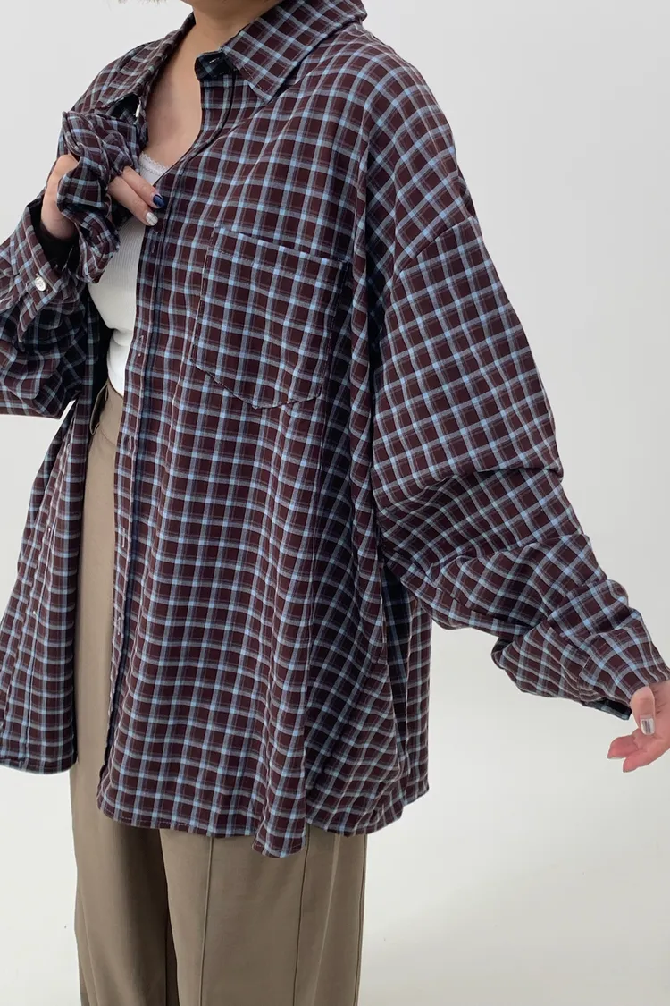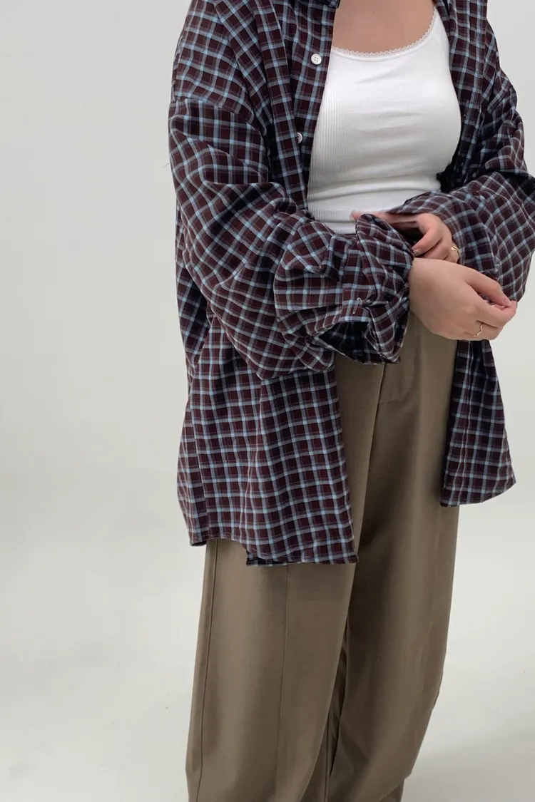 格紋襯衫配髮圈!