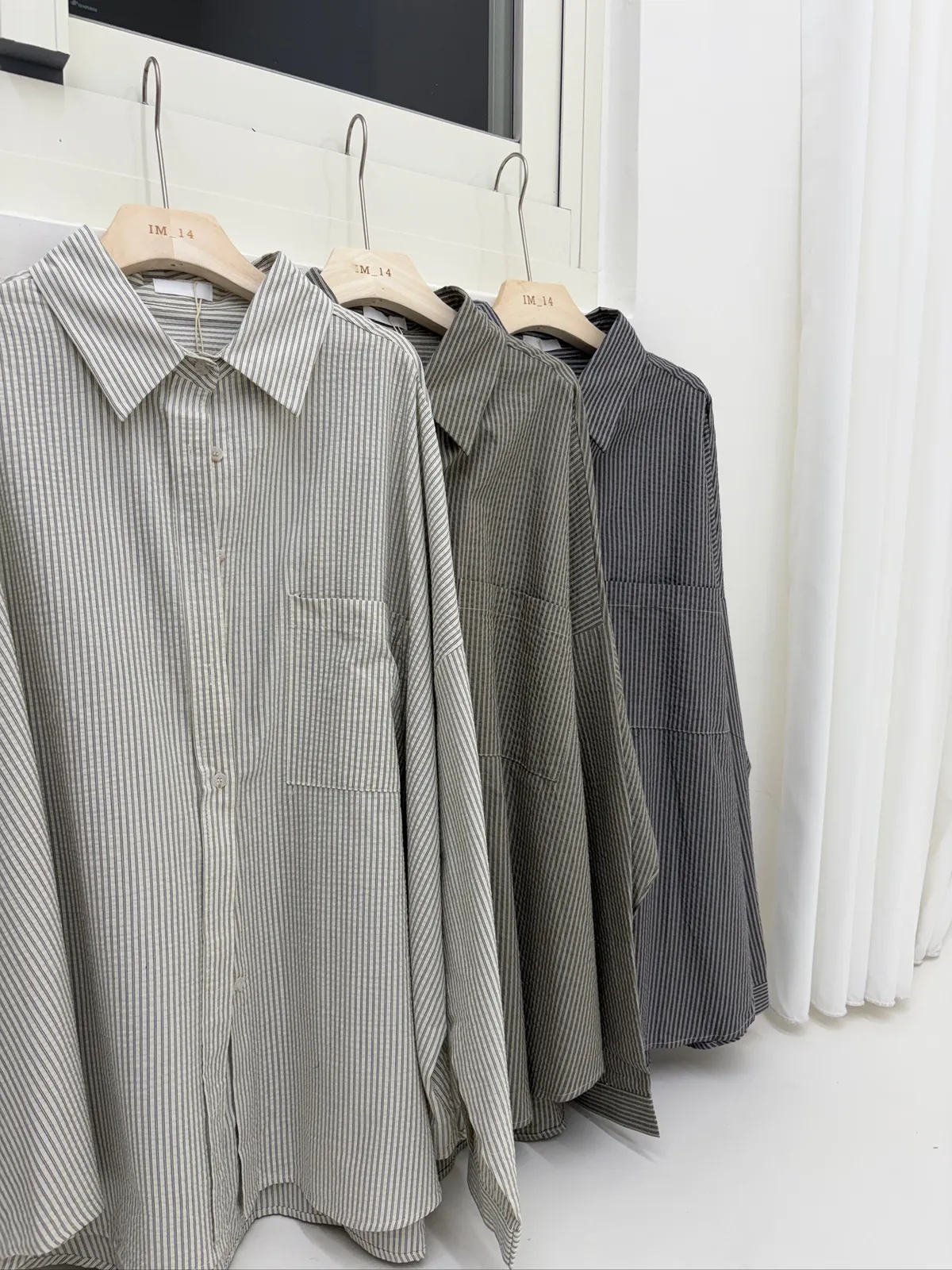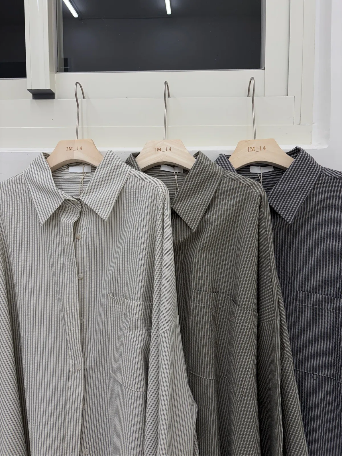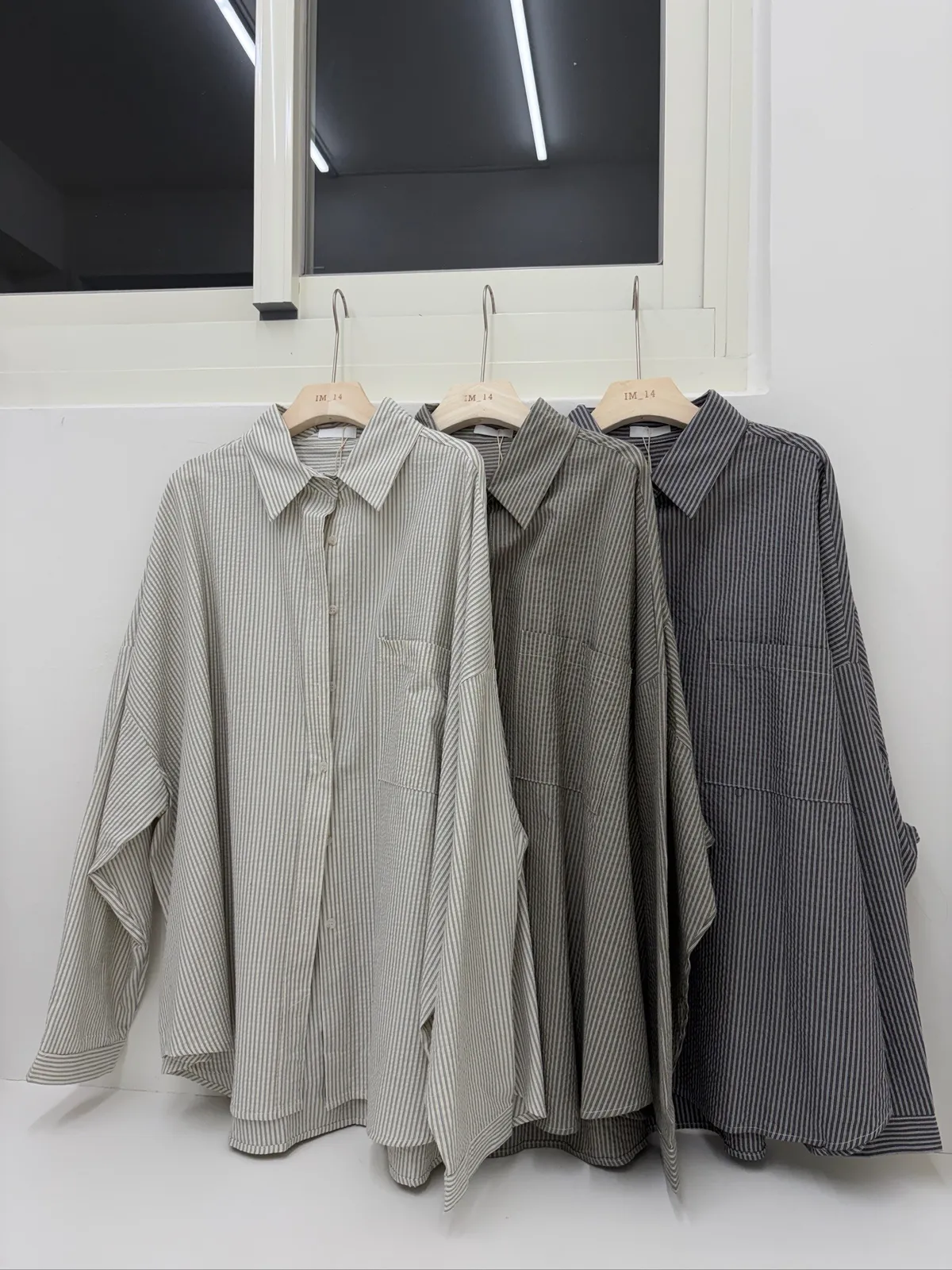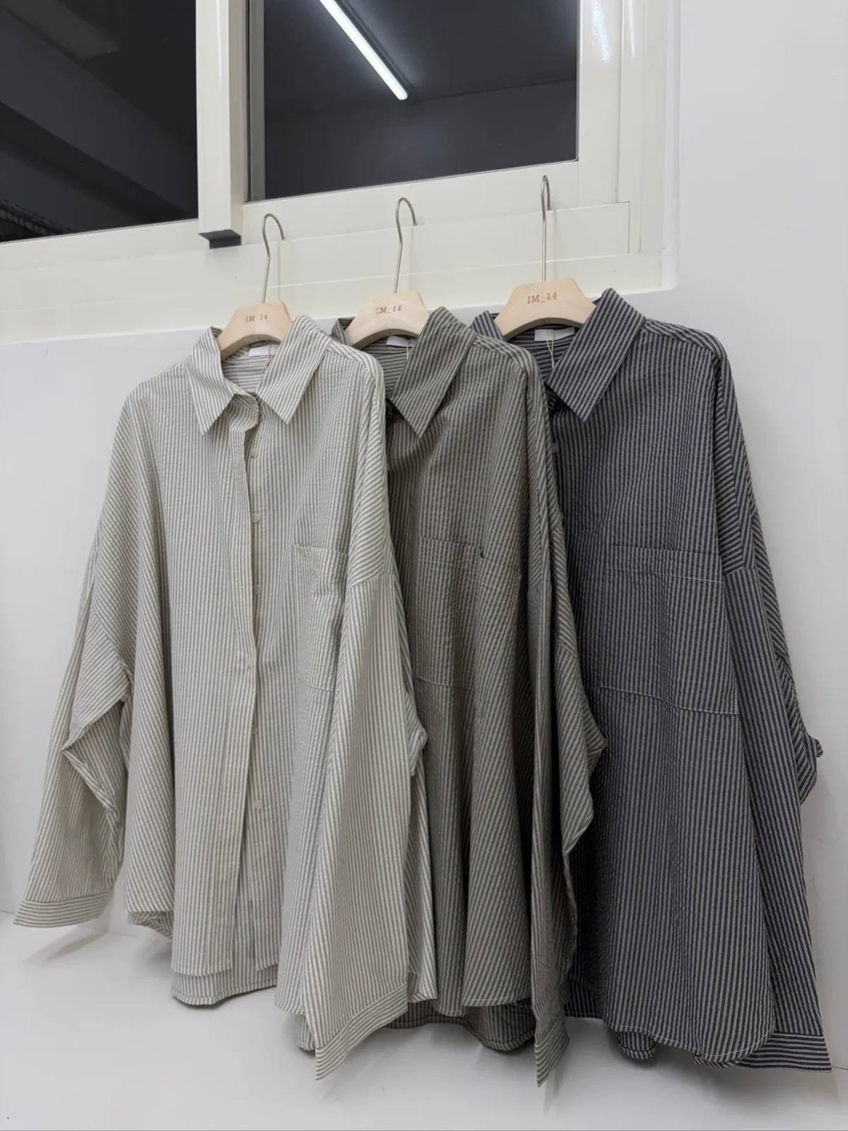細直條泡泡襯衫