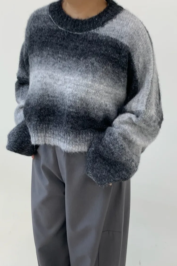 暈染漸層寬短版毛衣
