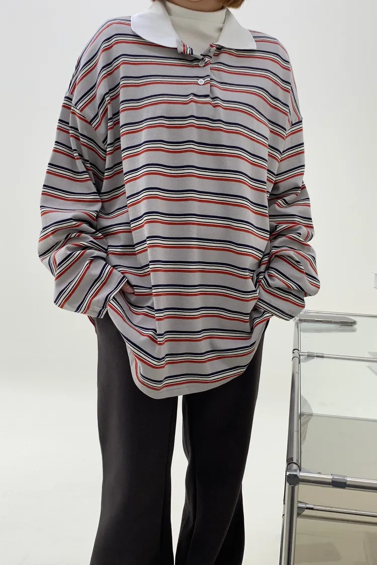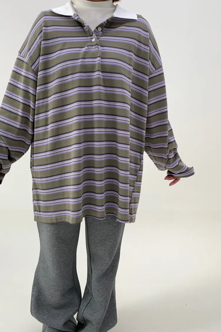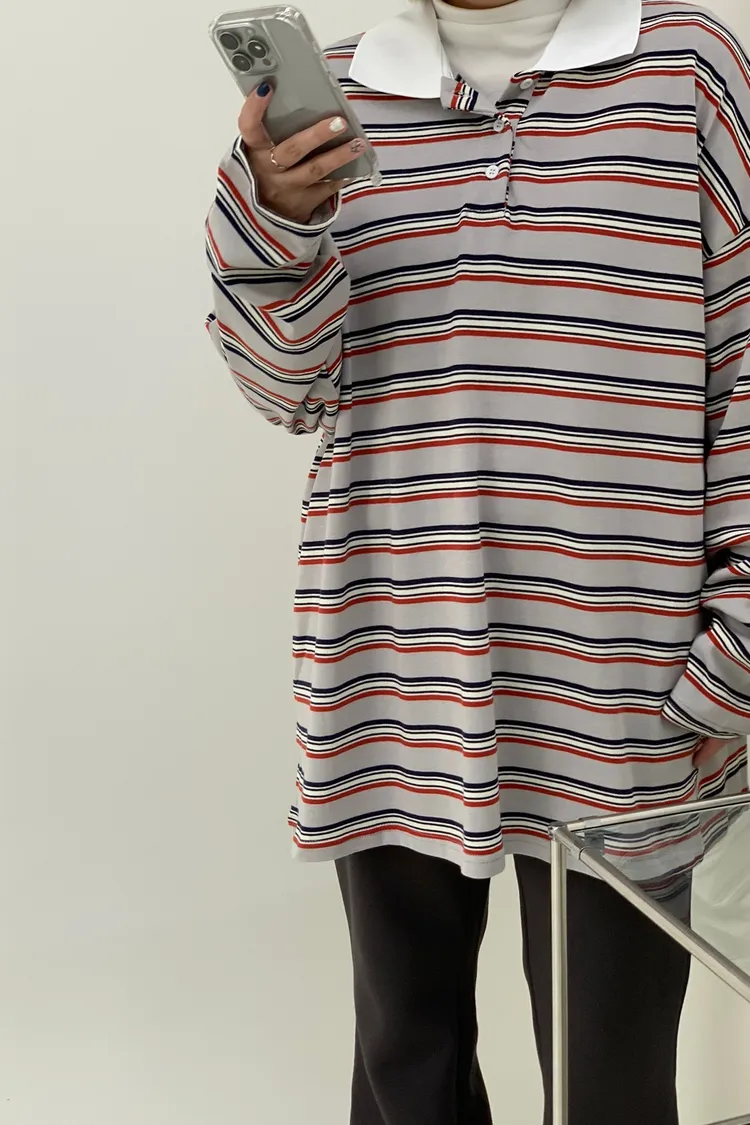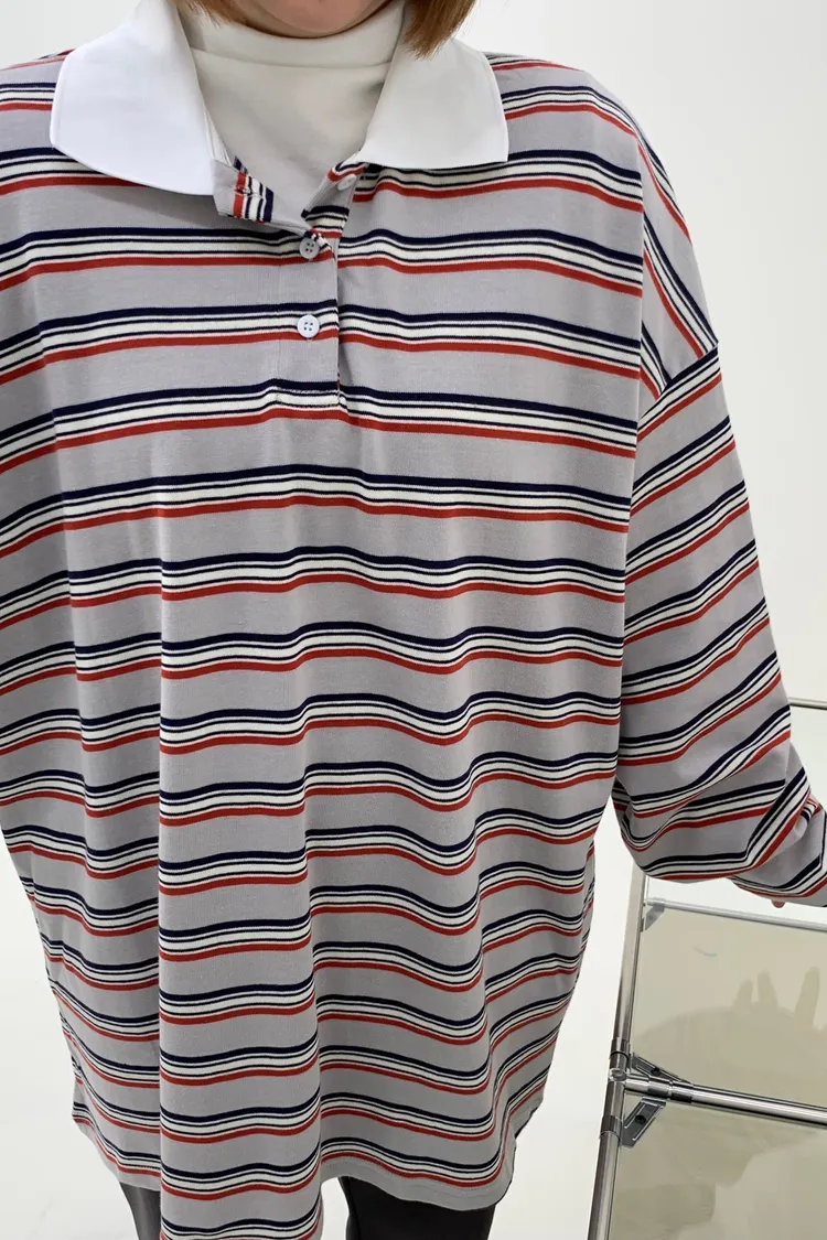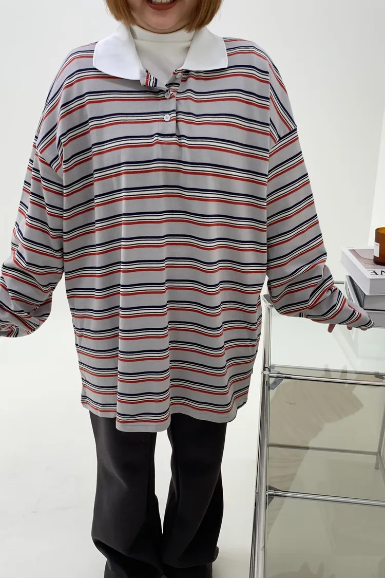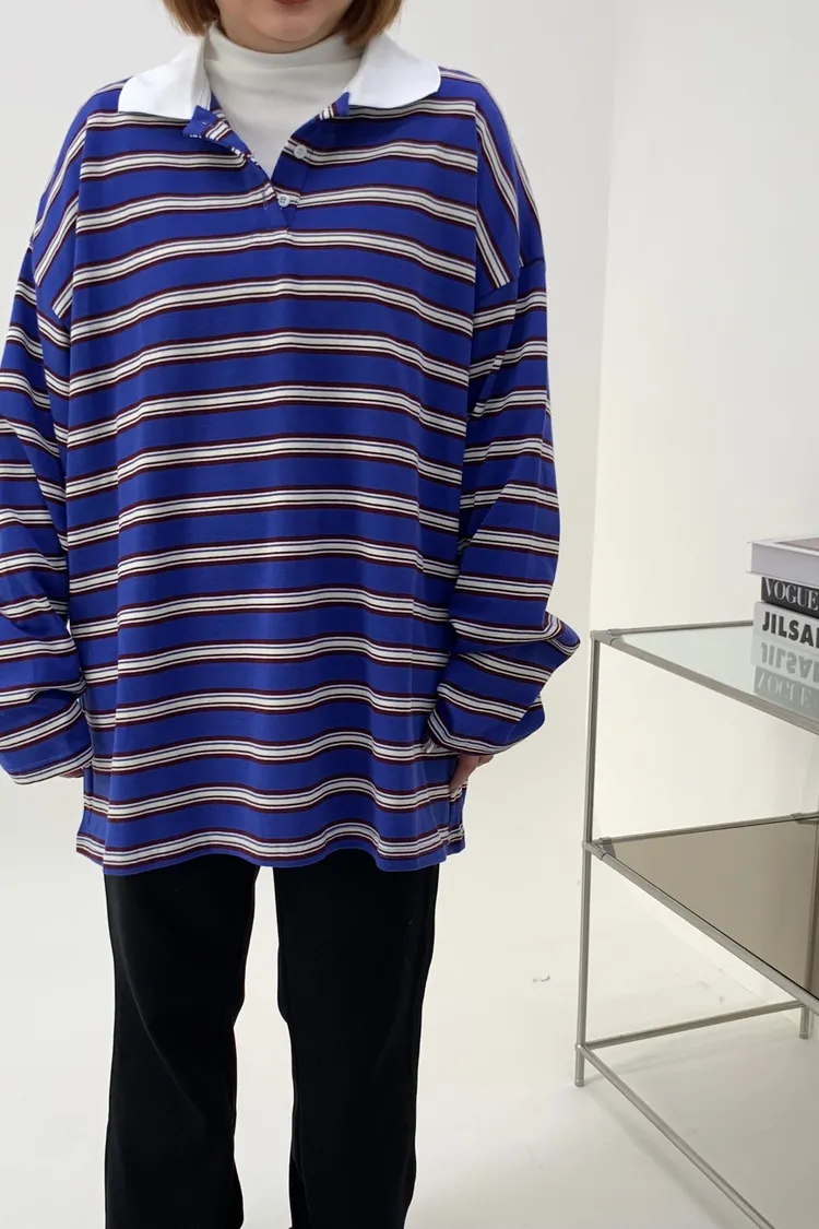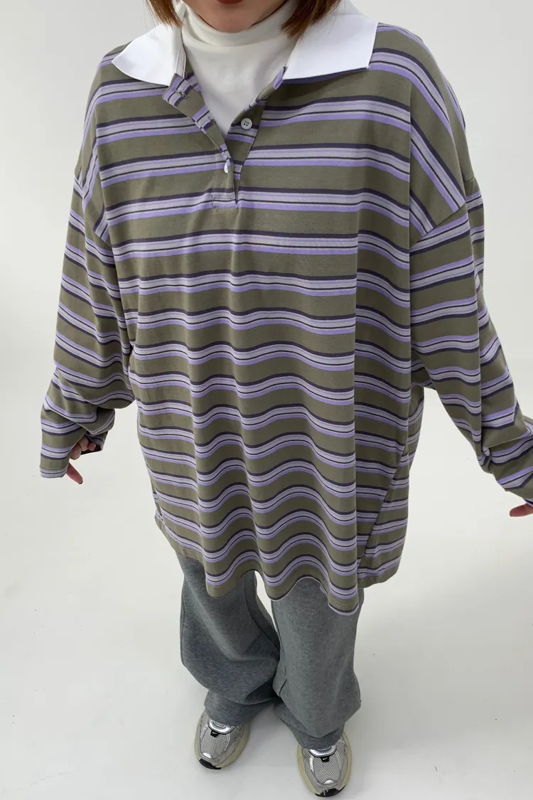 配色條紋大版polo T