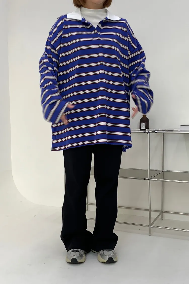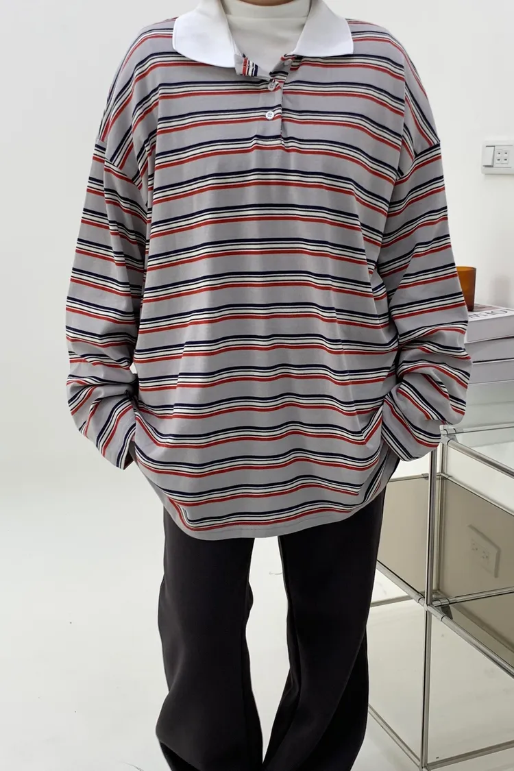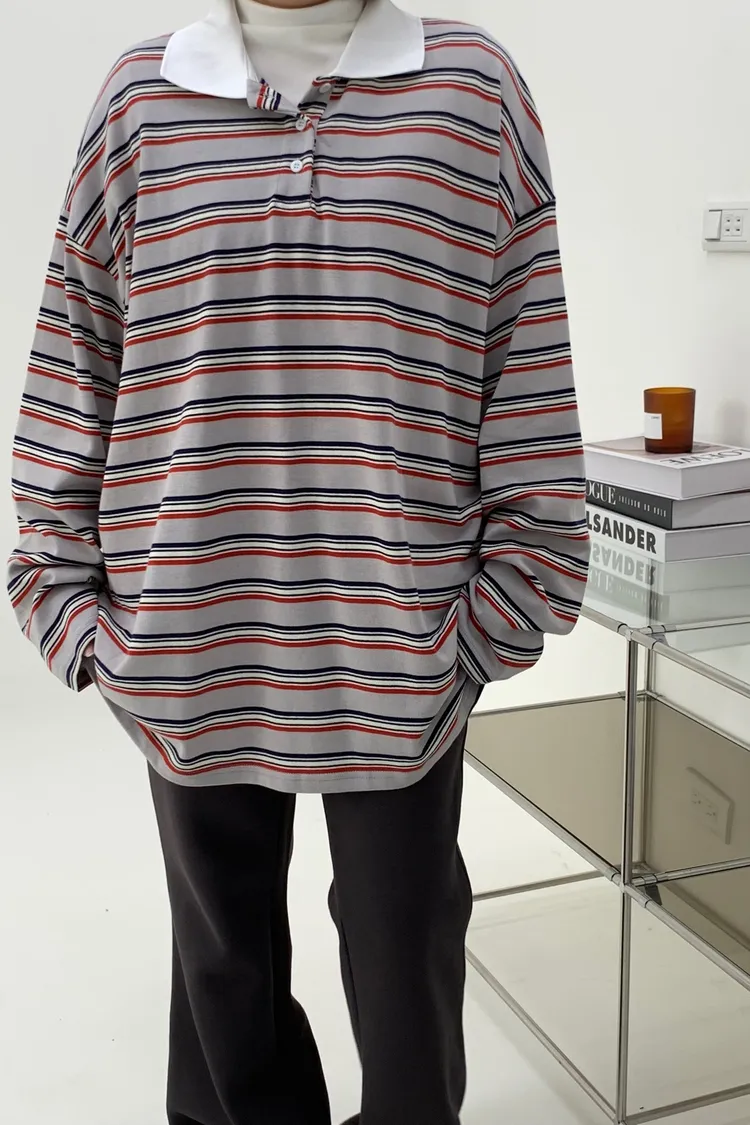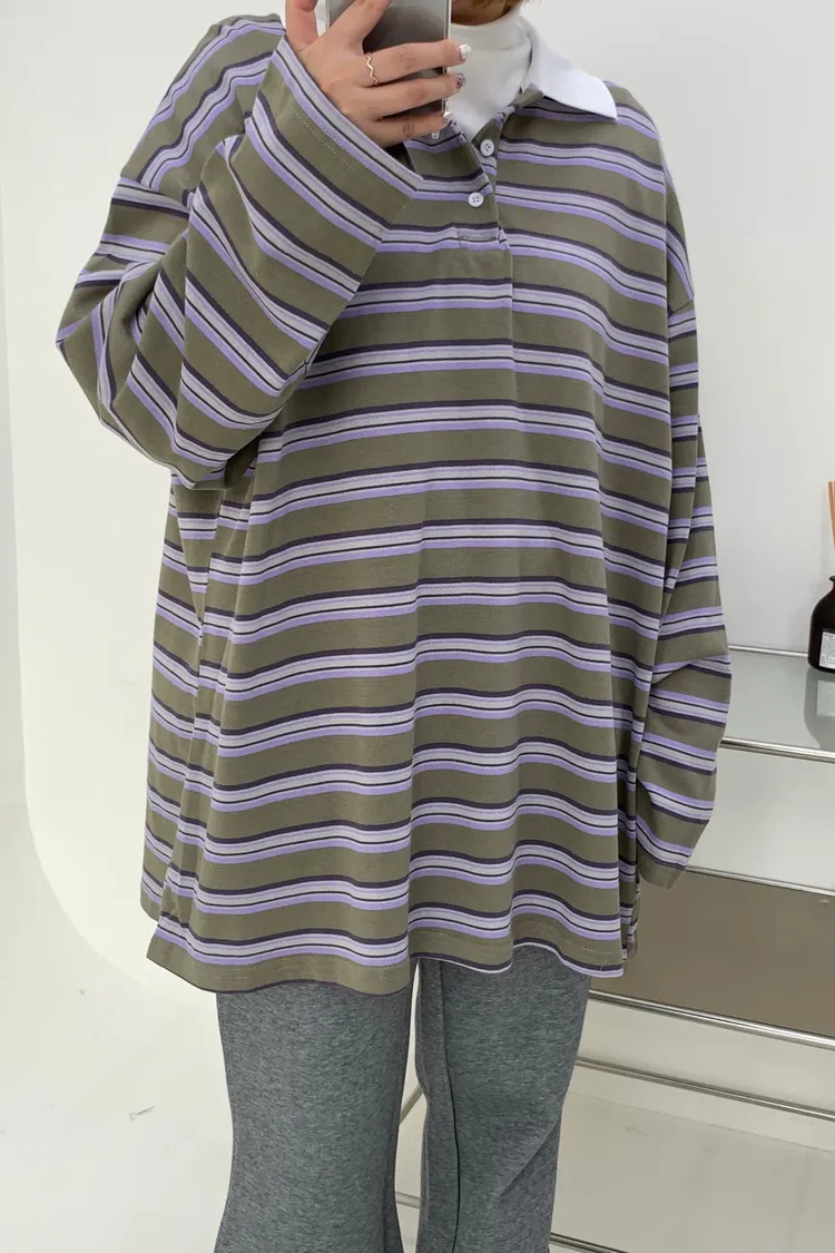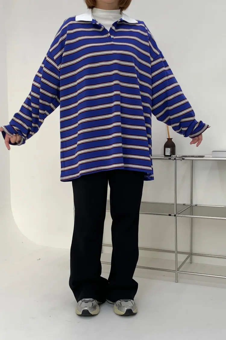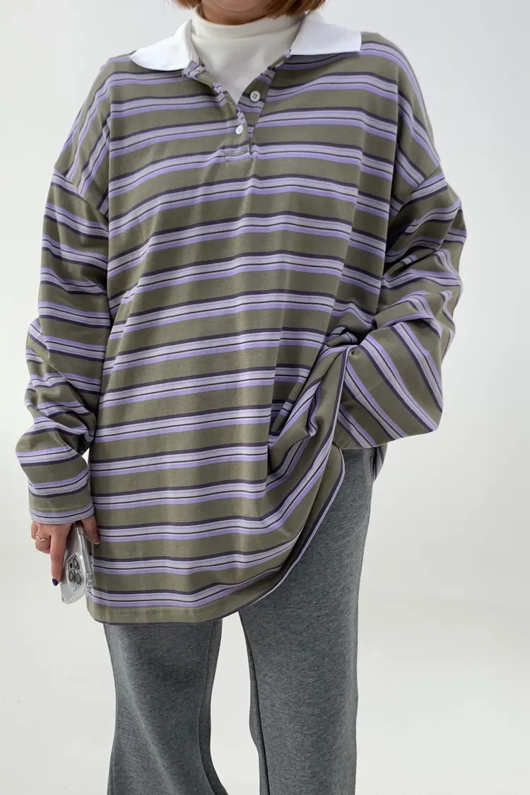 配色條紋大版polo T