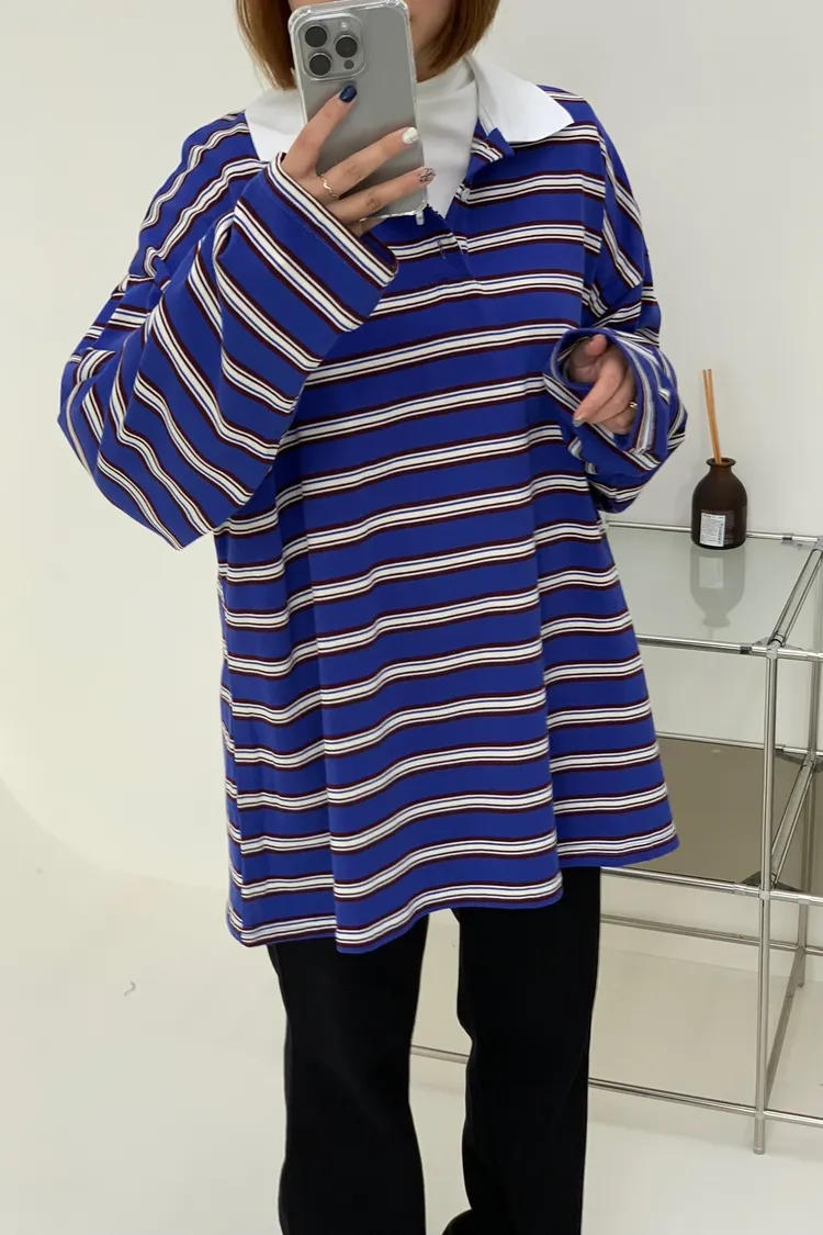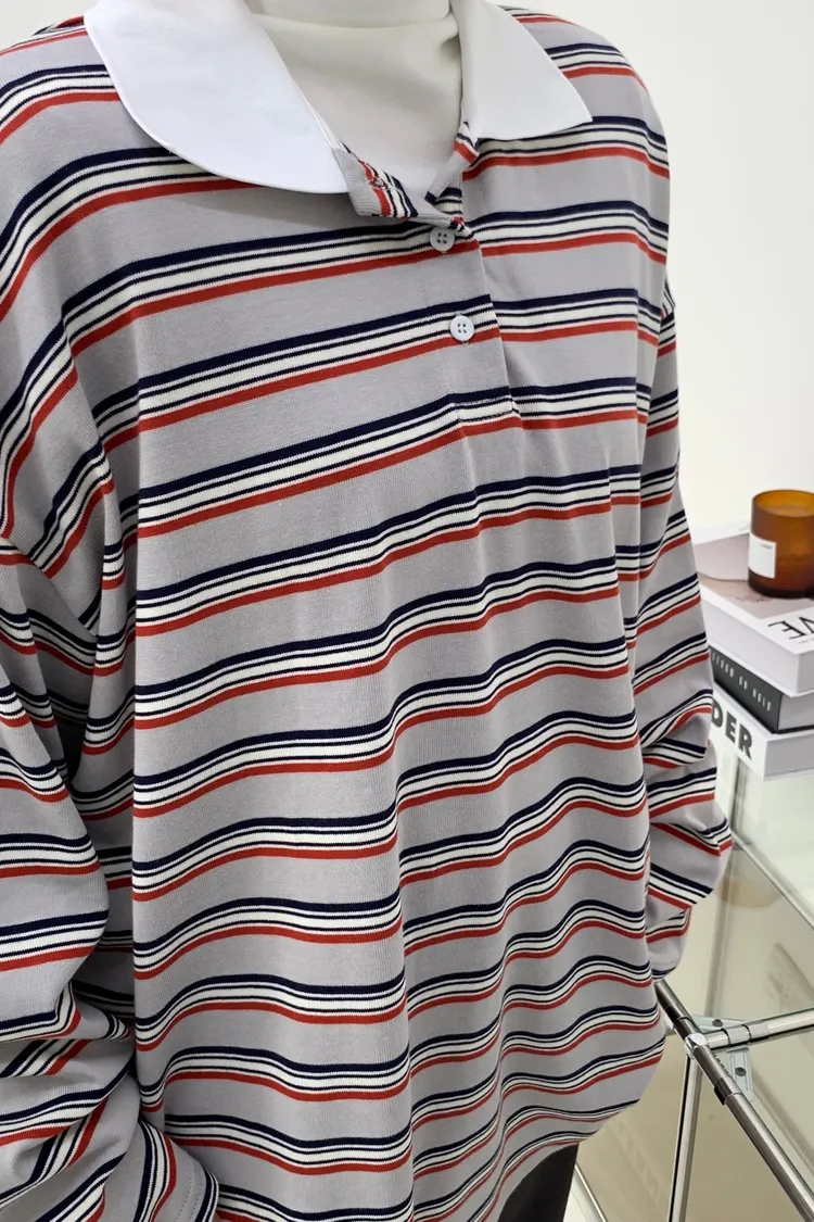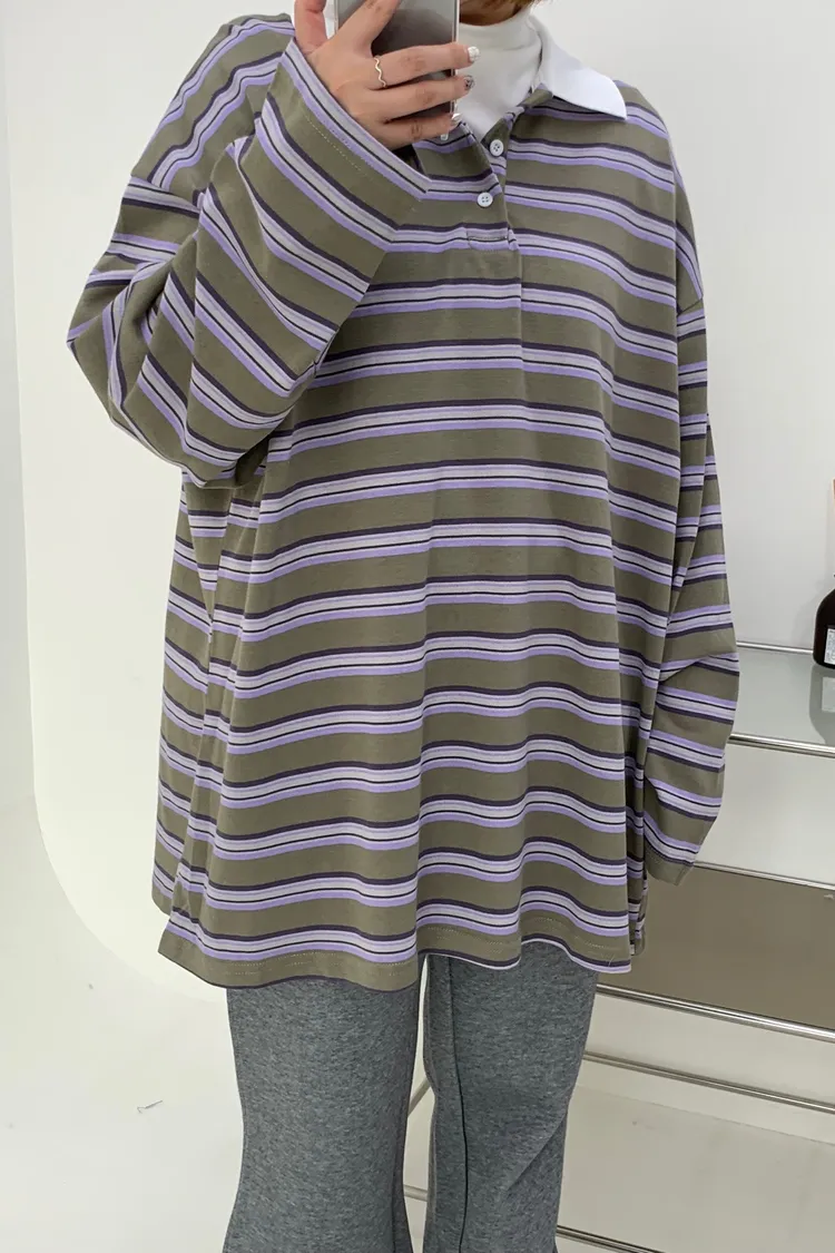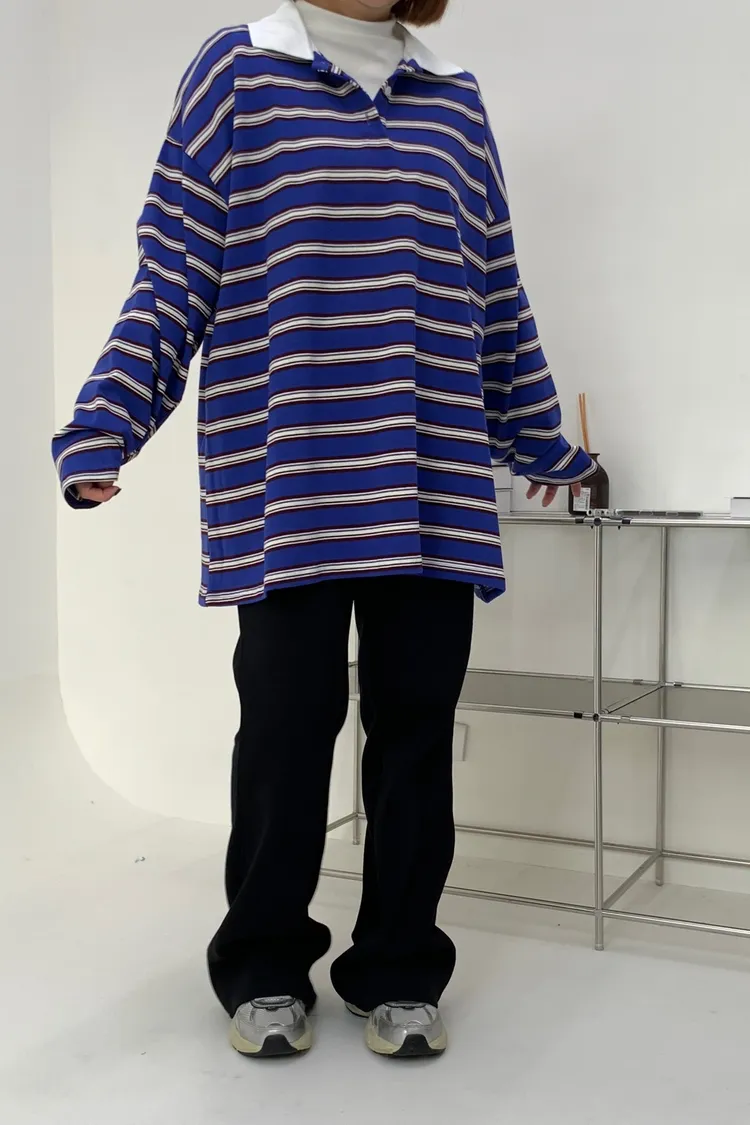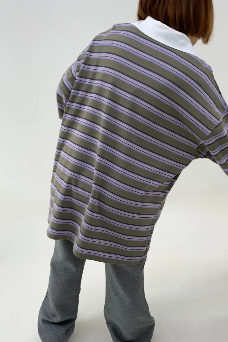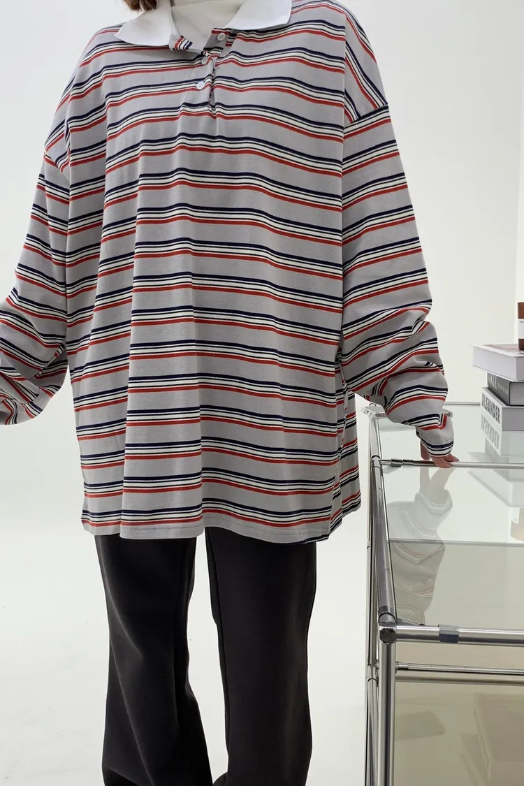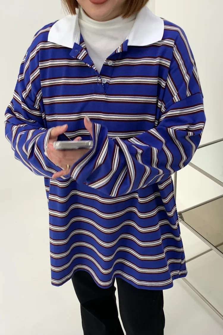 配色條紋大版polo T