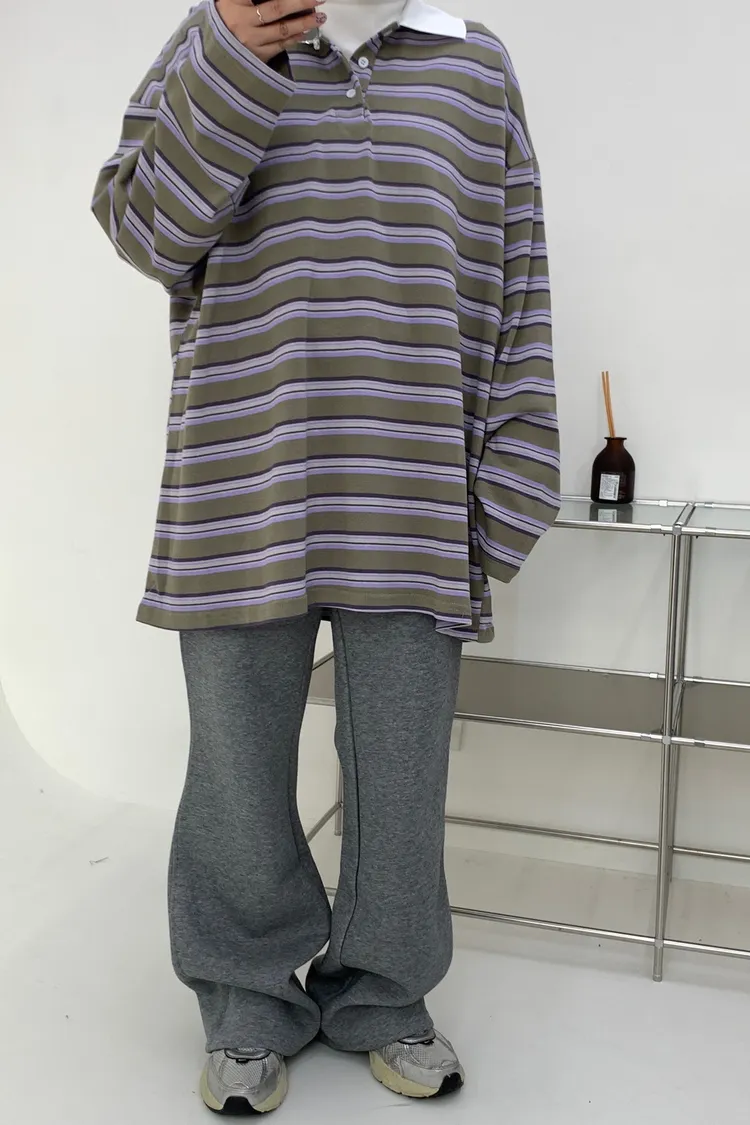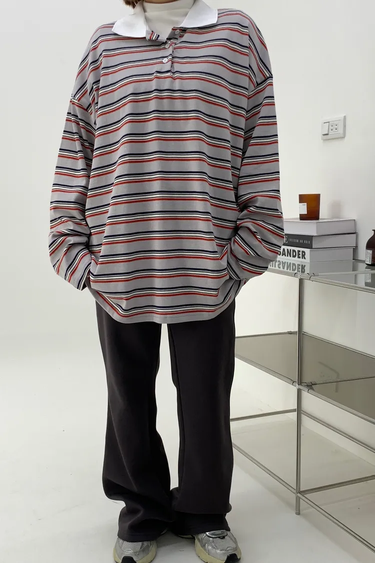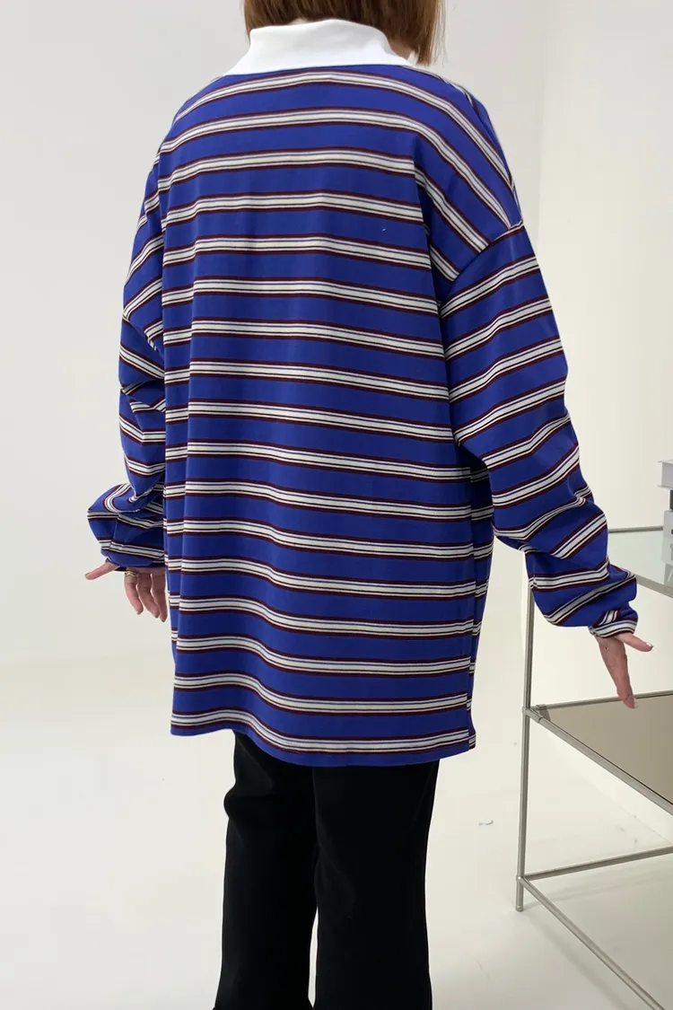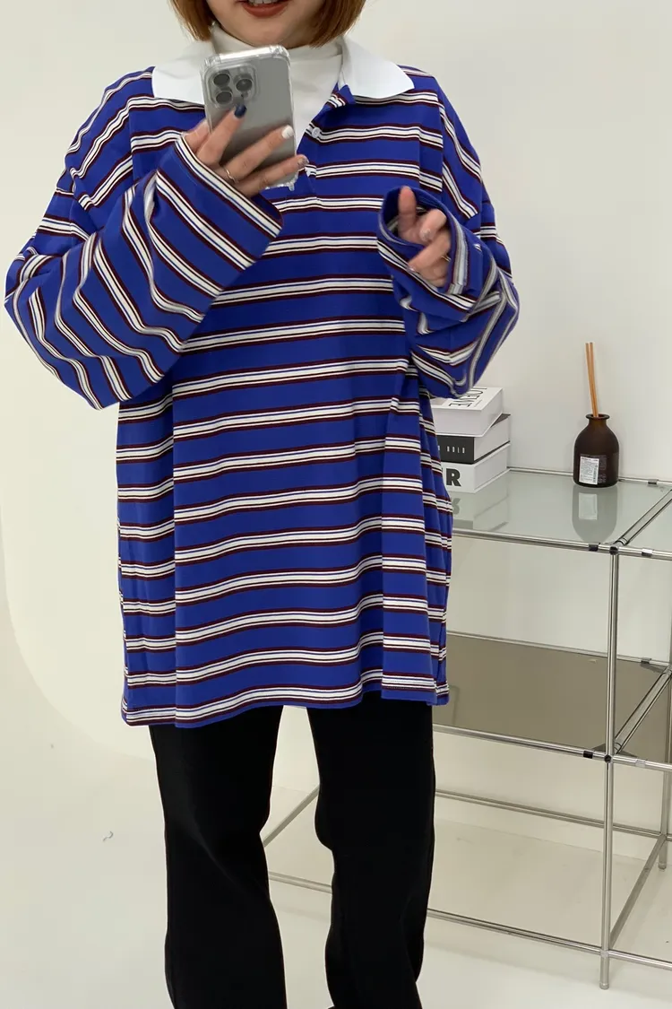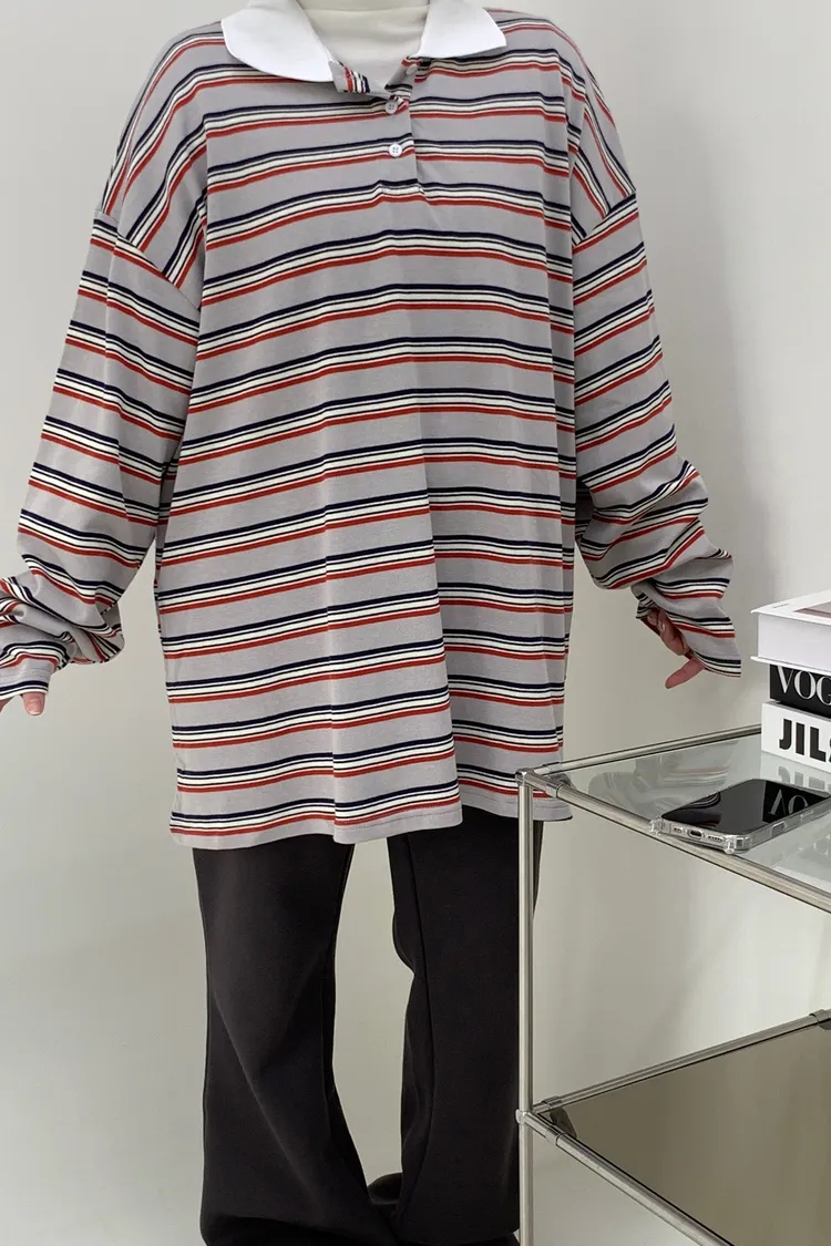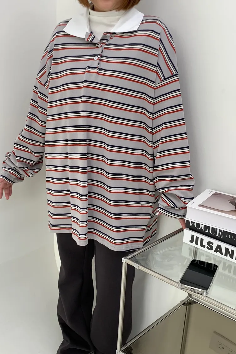 配色條紋大版polo T