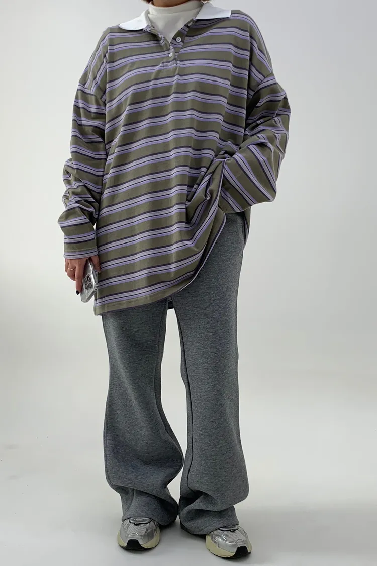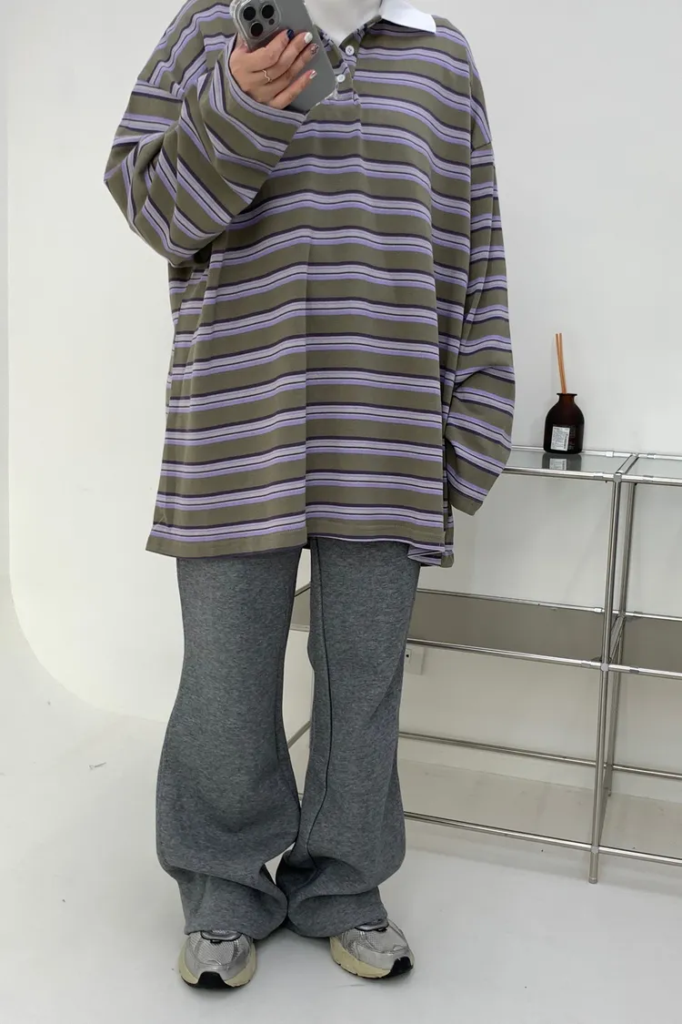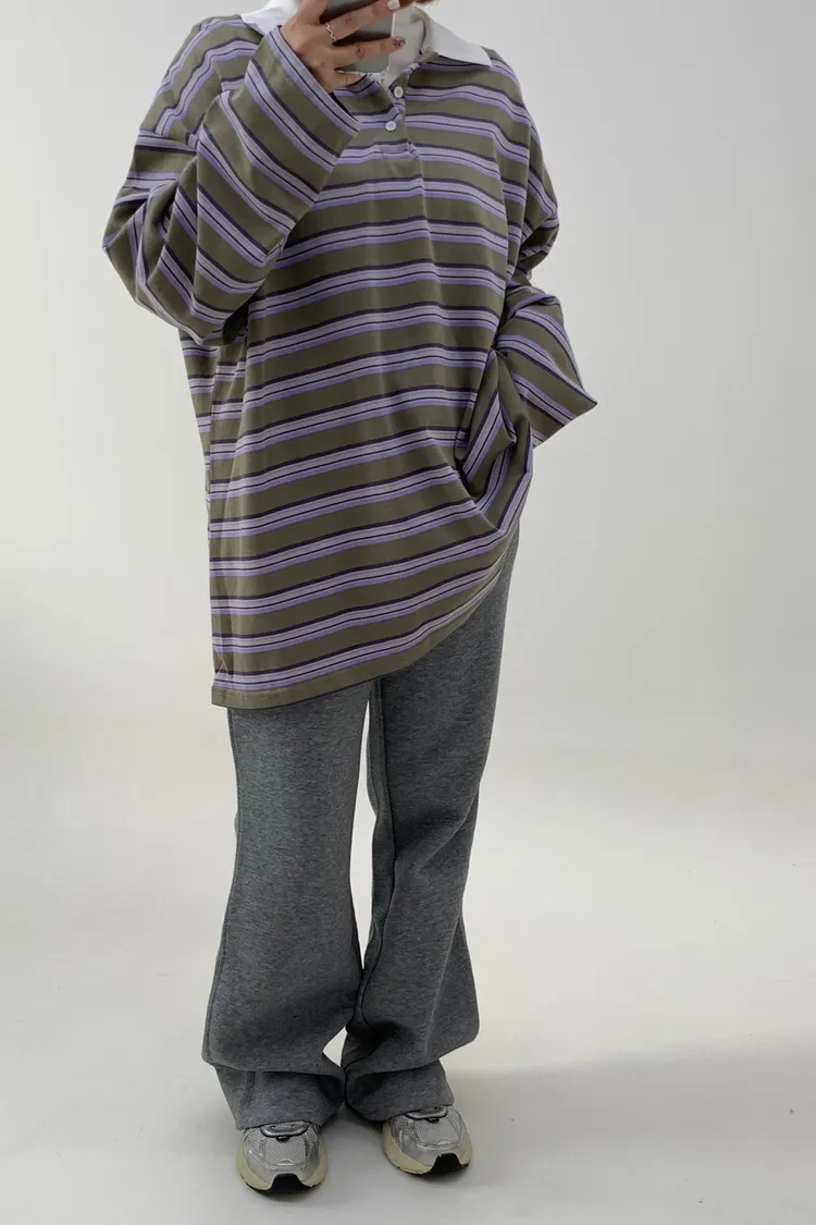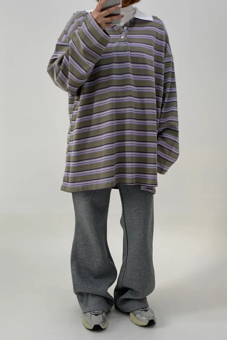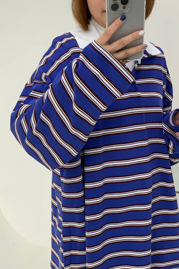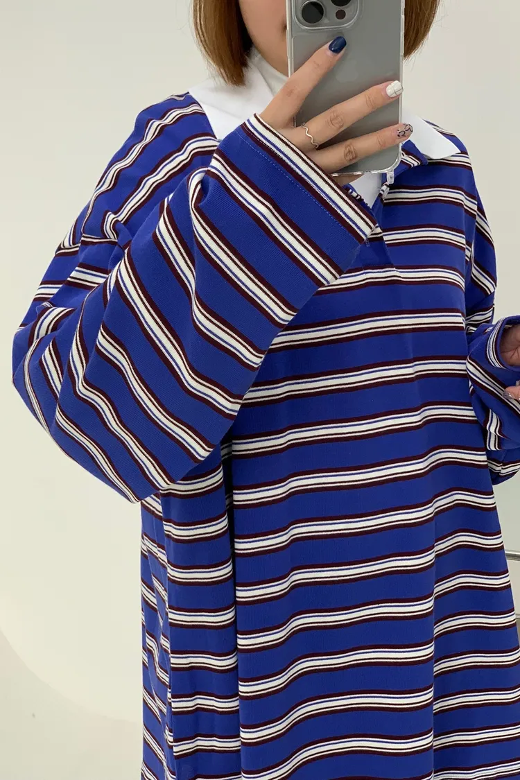 配色條紋大版polo T