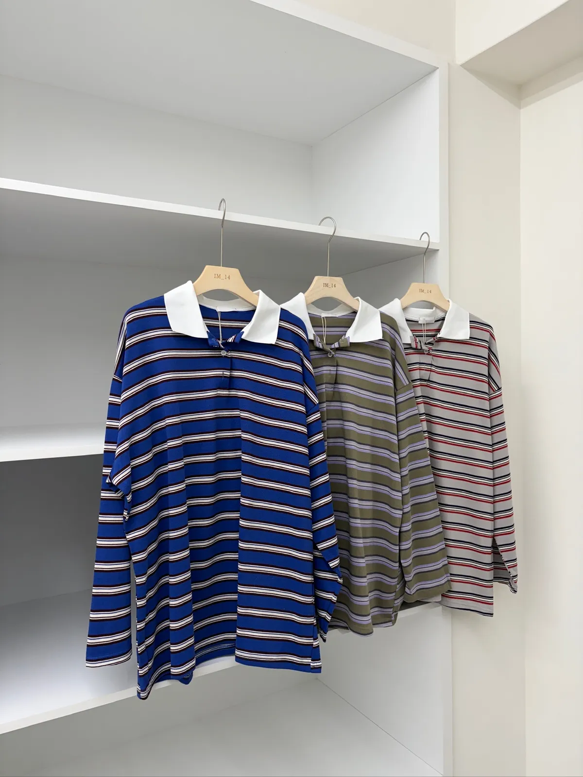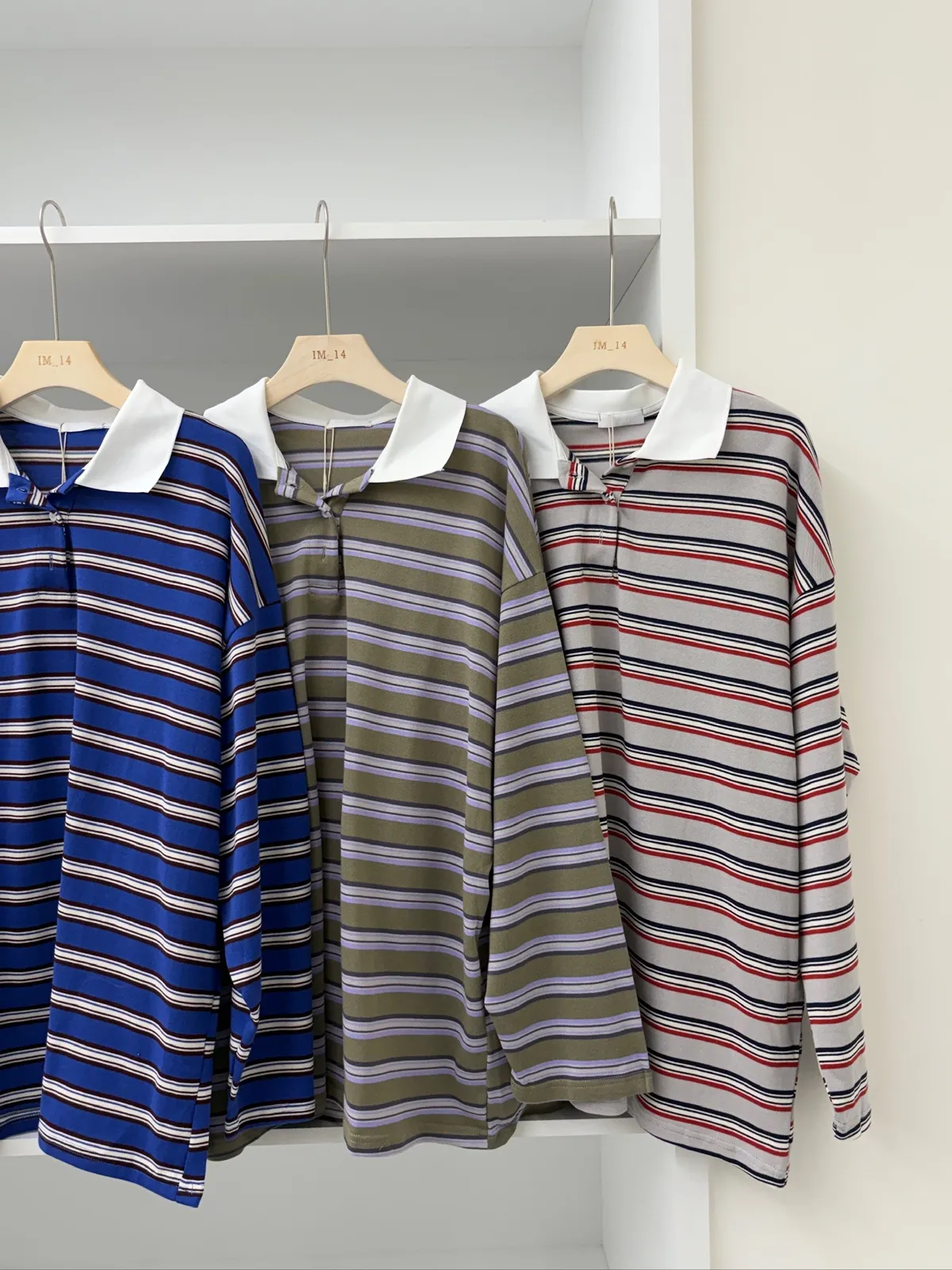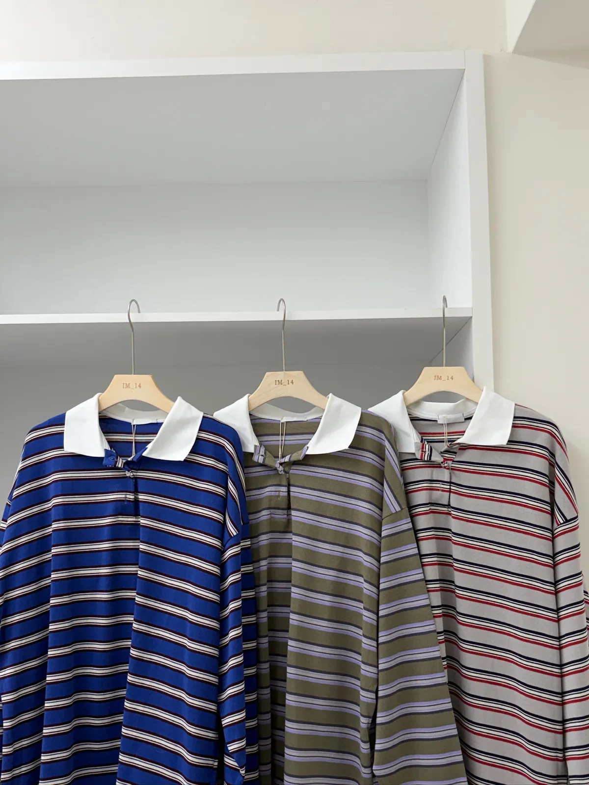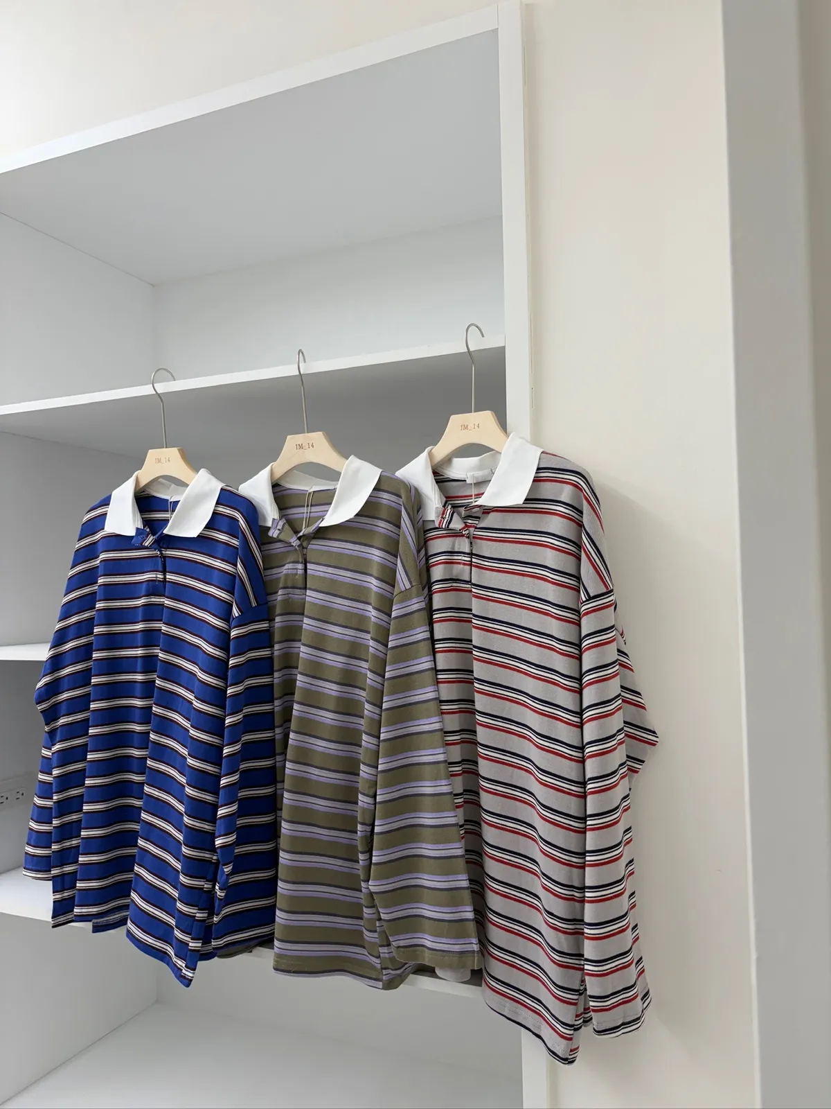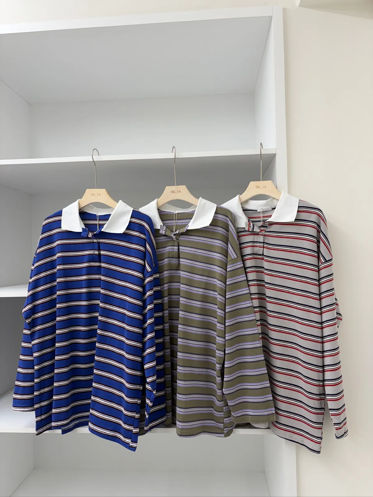 配色條紋大版polo T