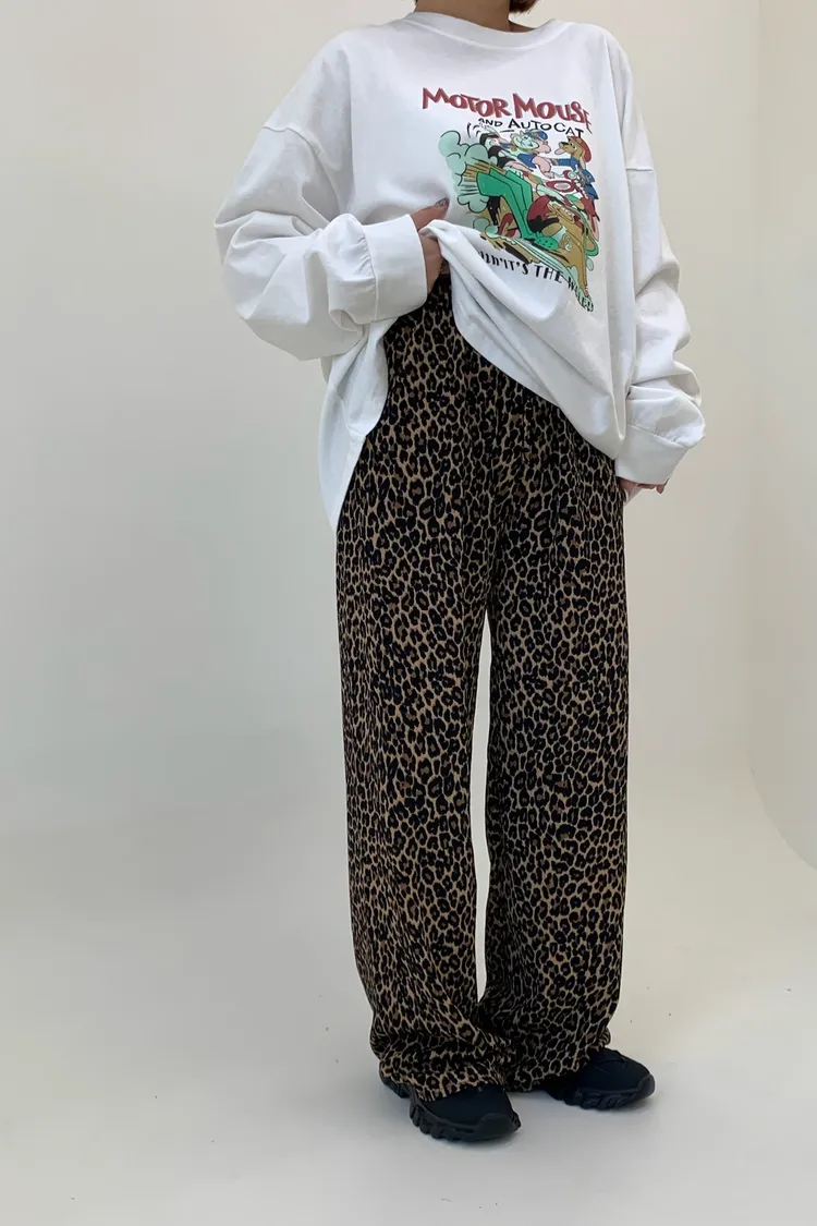 鬆弛感豹紋鬆緊褲/好穿