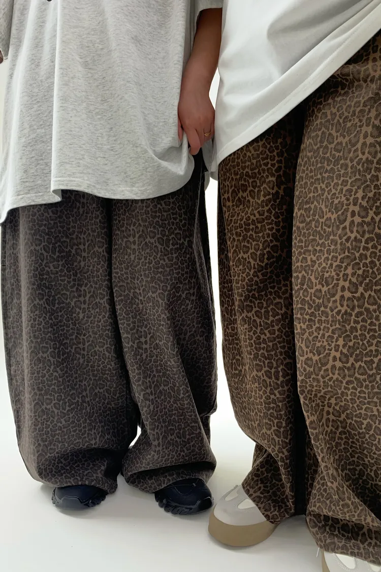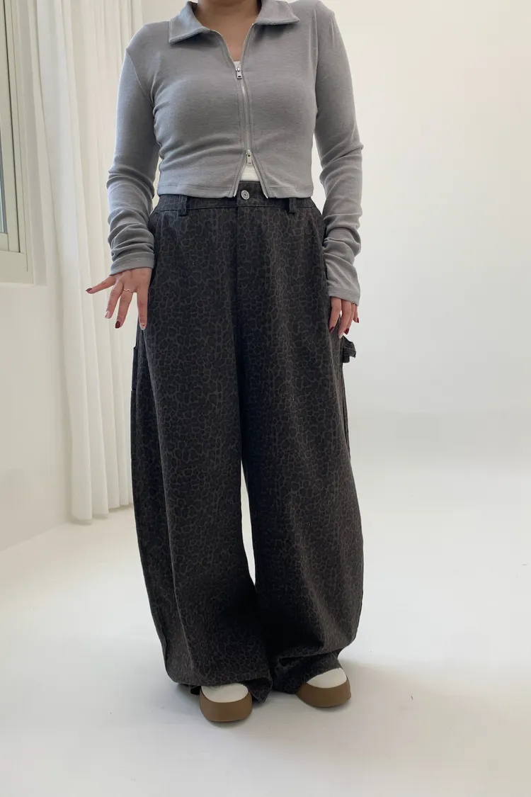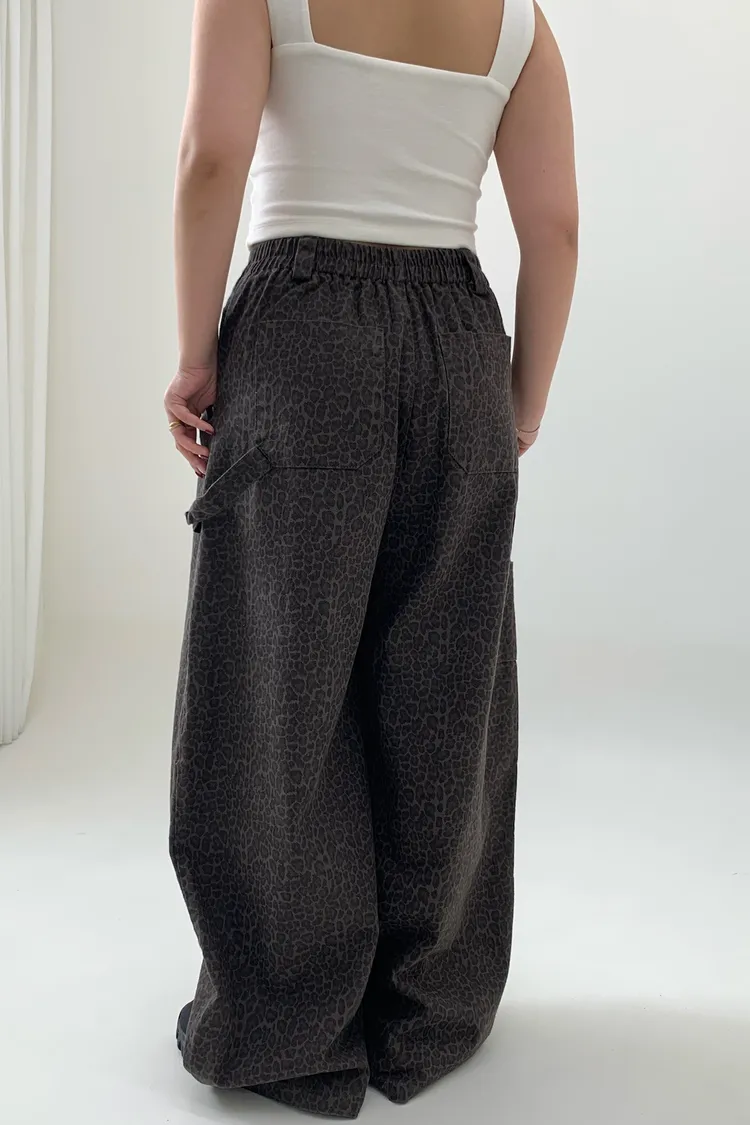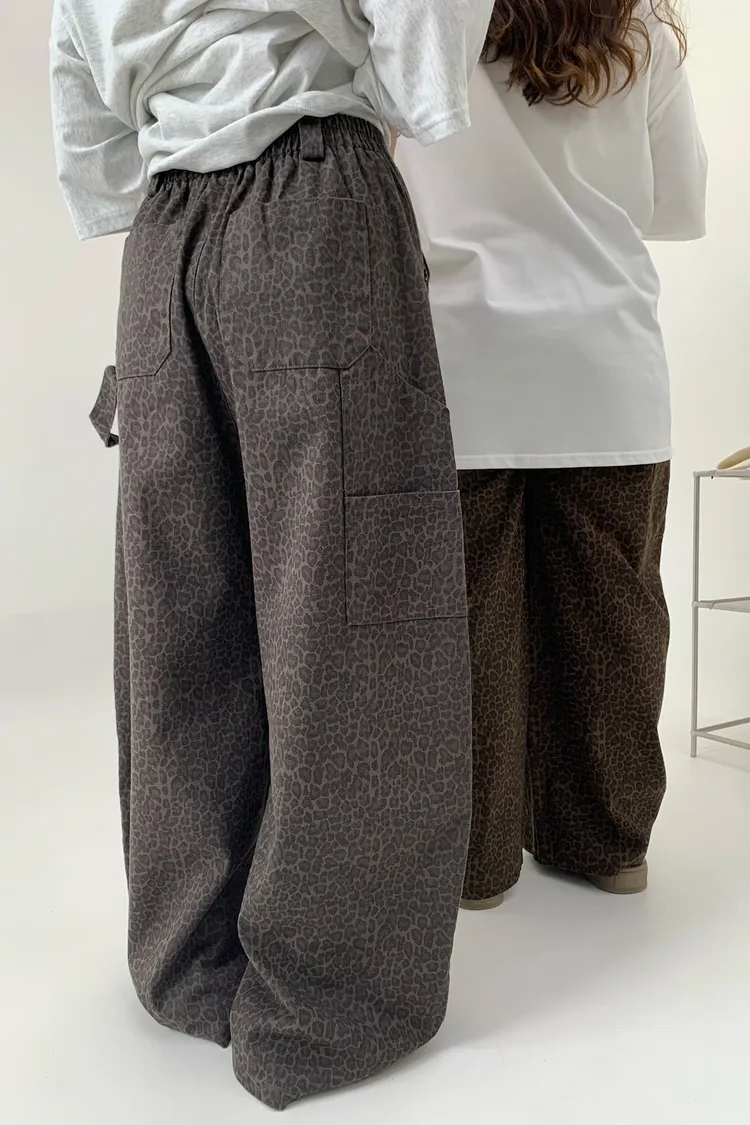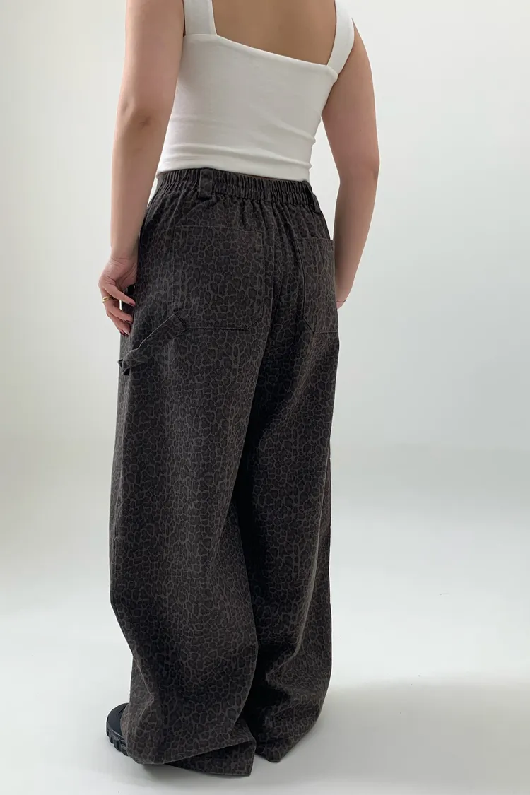 豹紋工裝錐型褲
