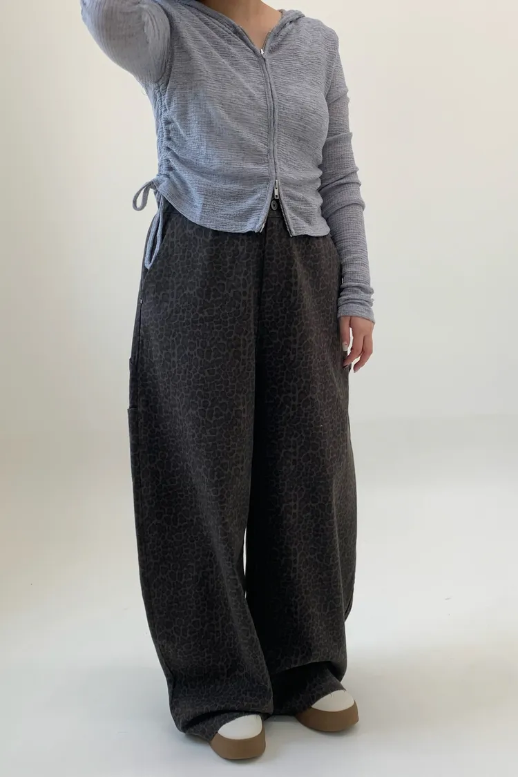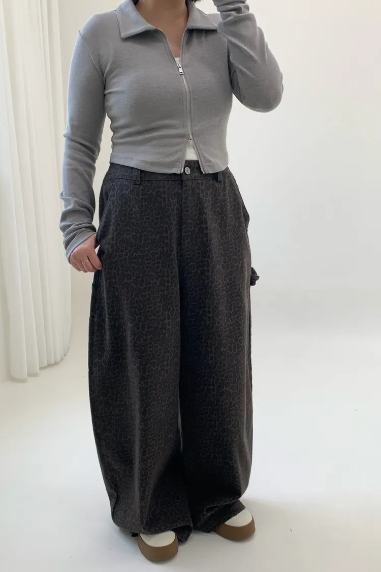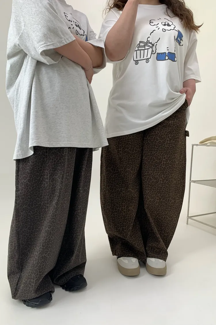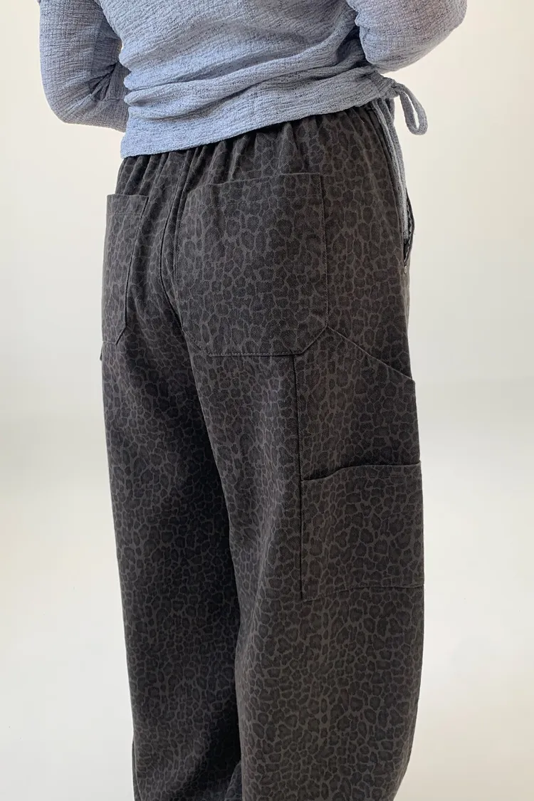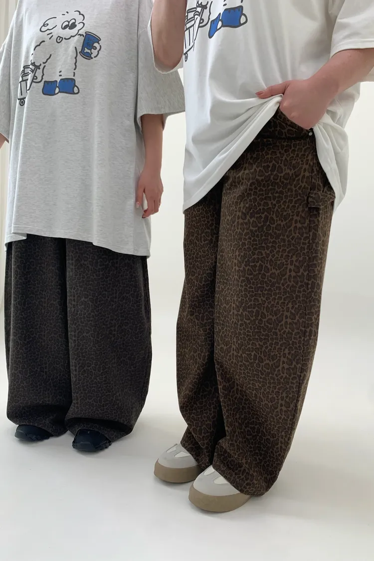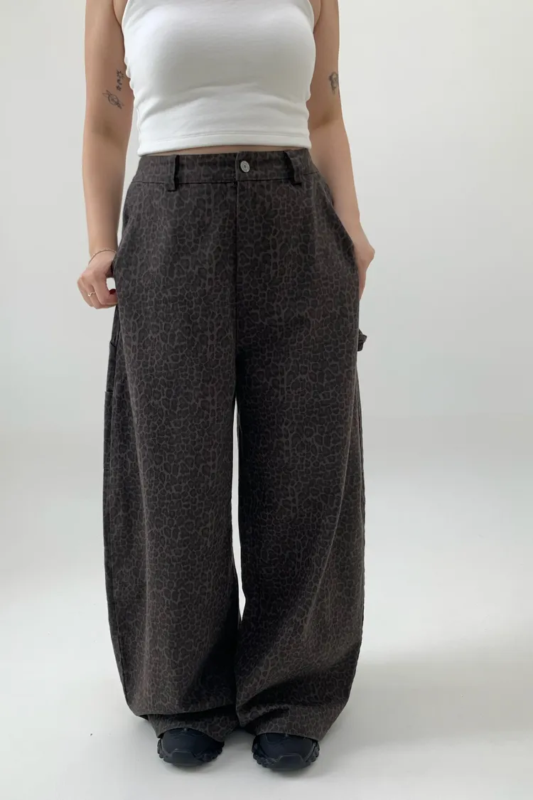豹紋工裝錐型褲