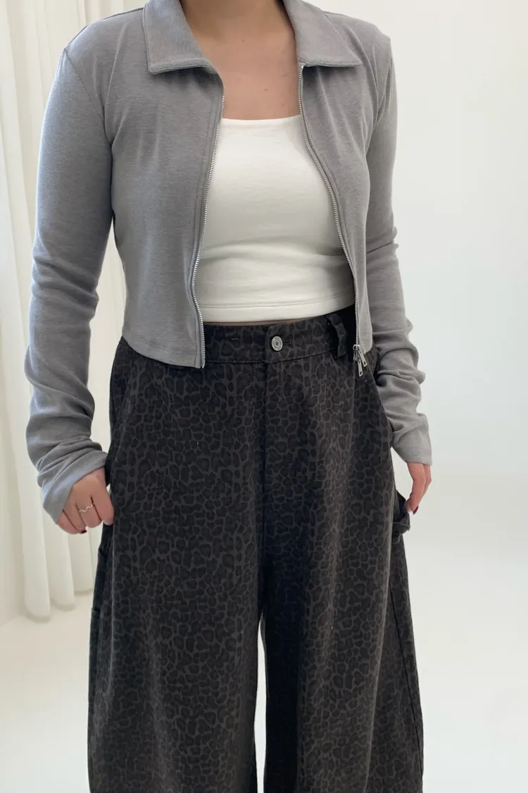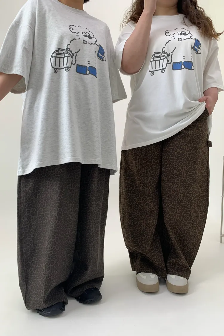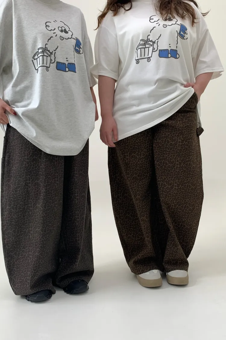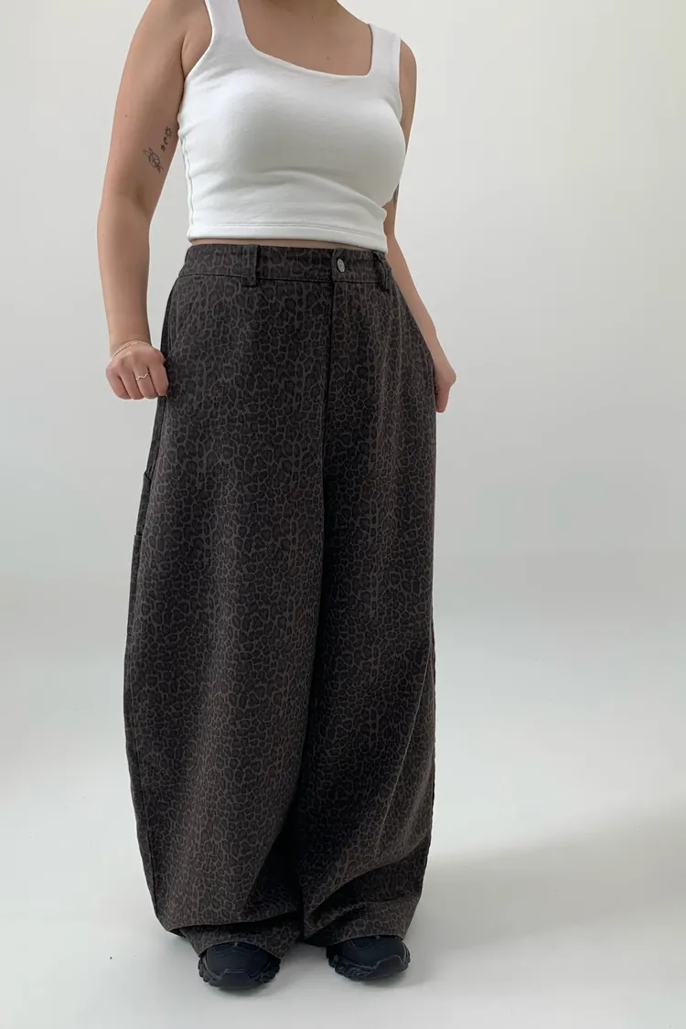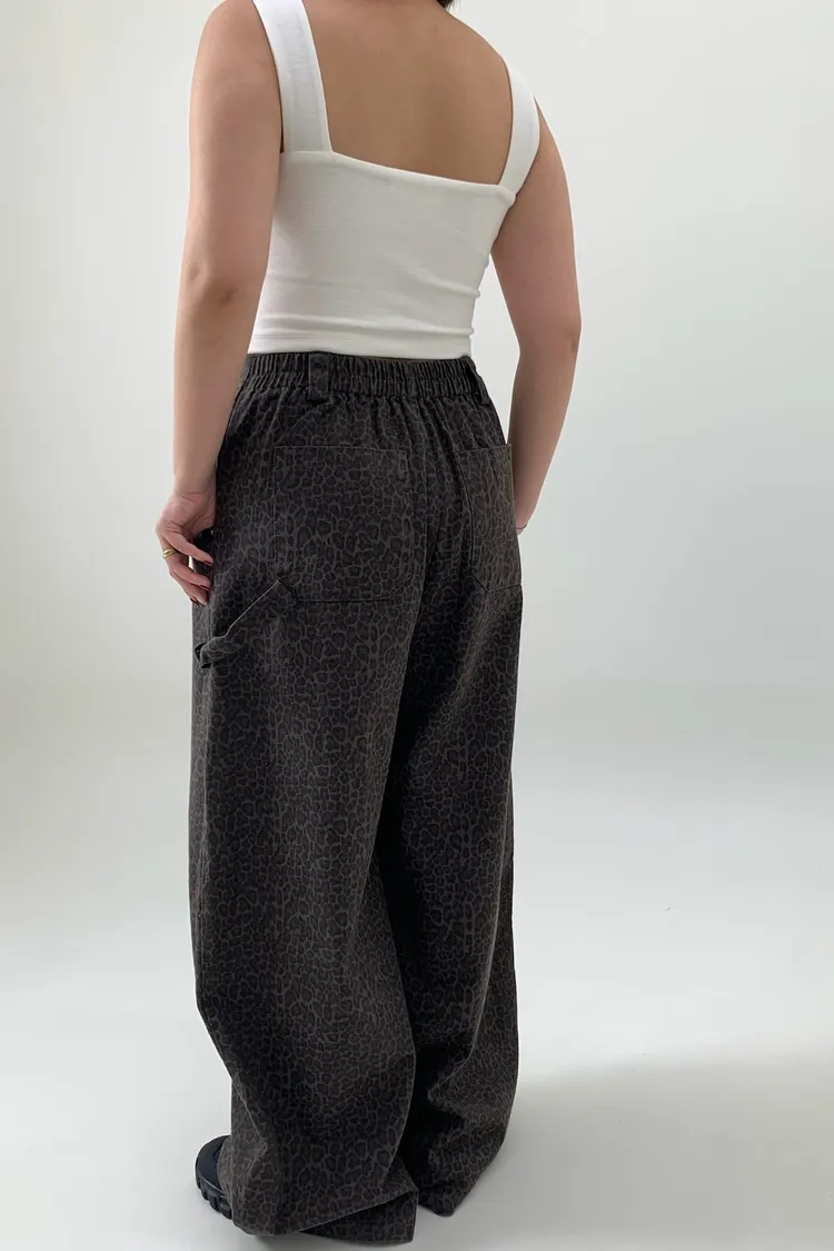 豹紋工裝錐型褲