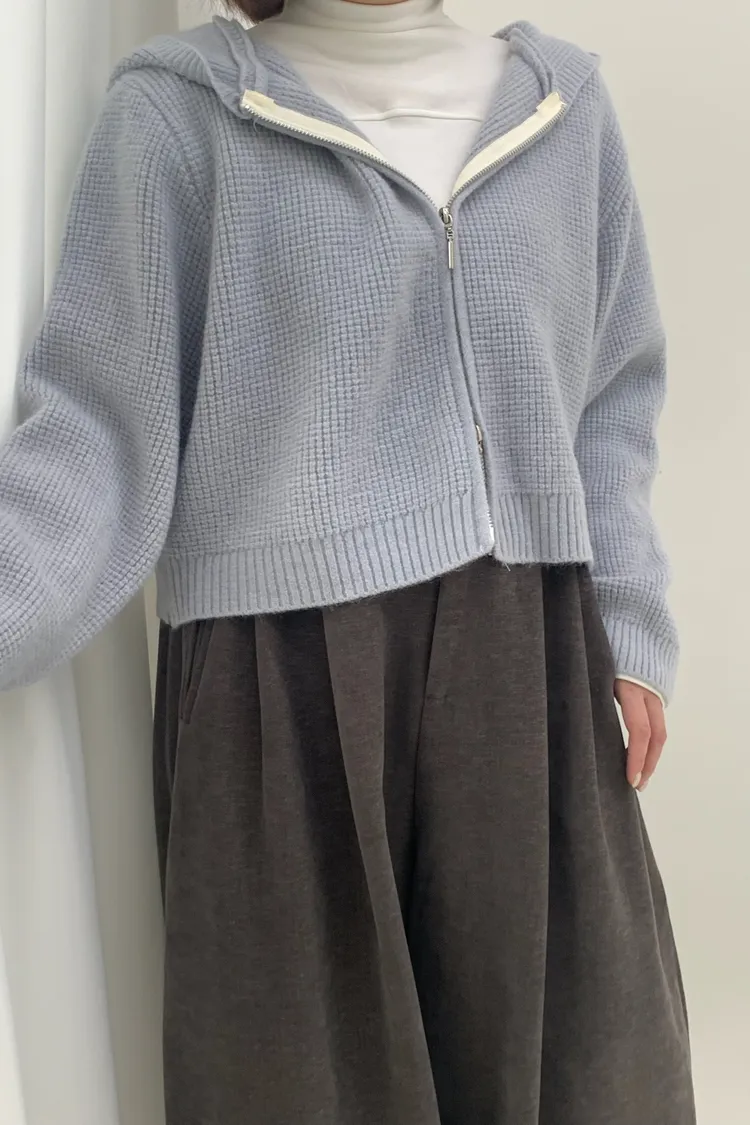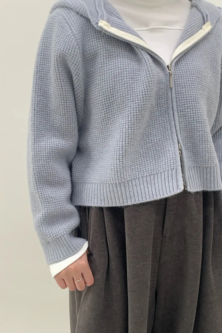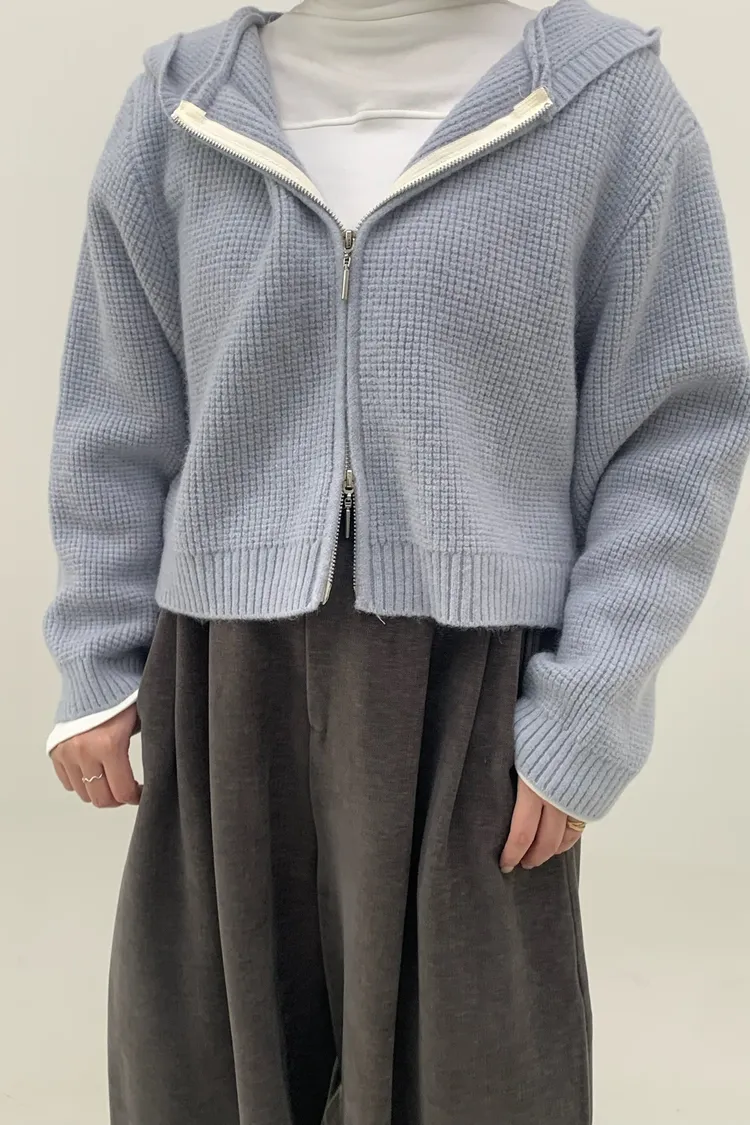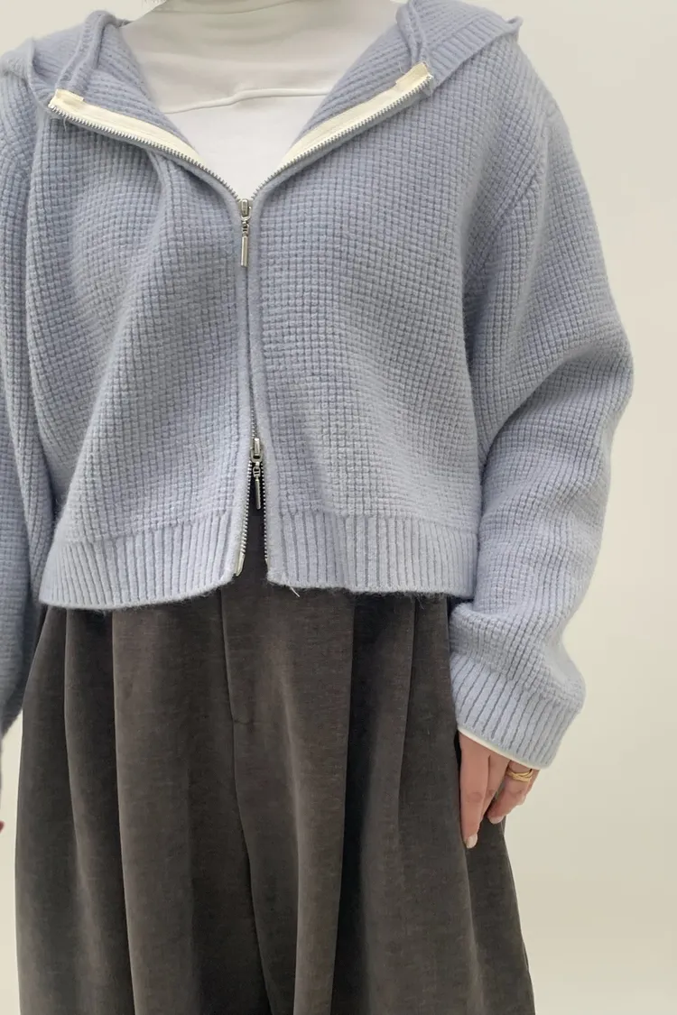 連帽鬆餅格針織上衣