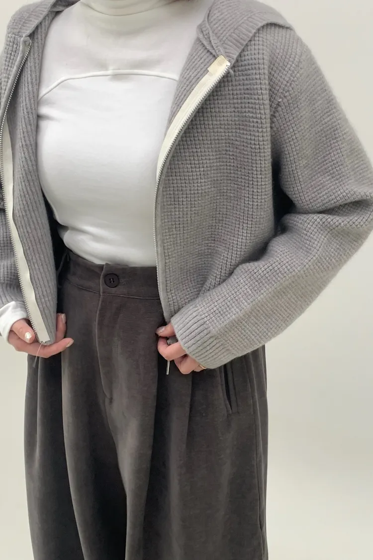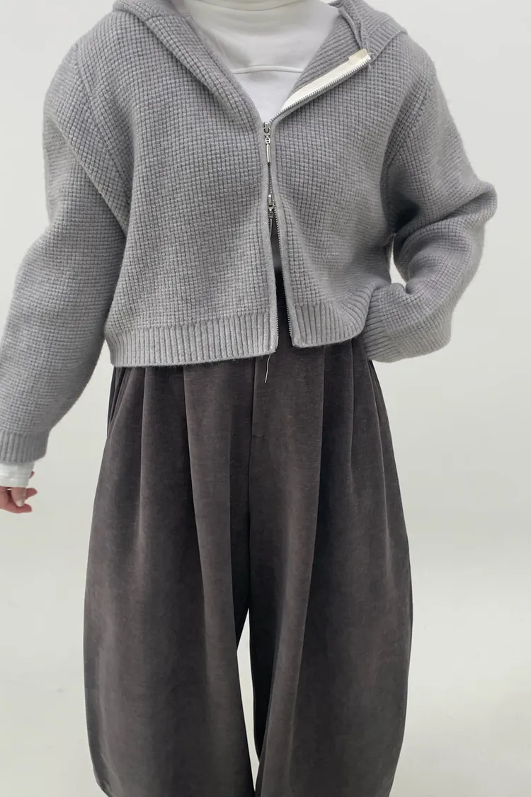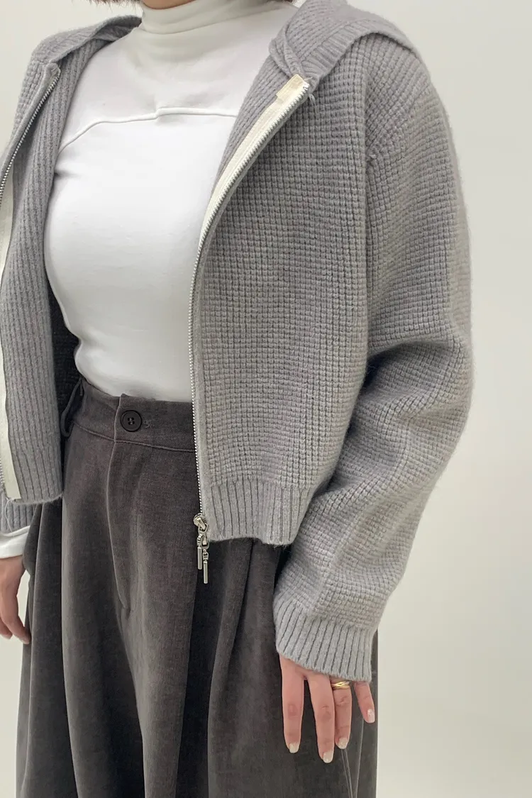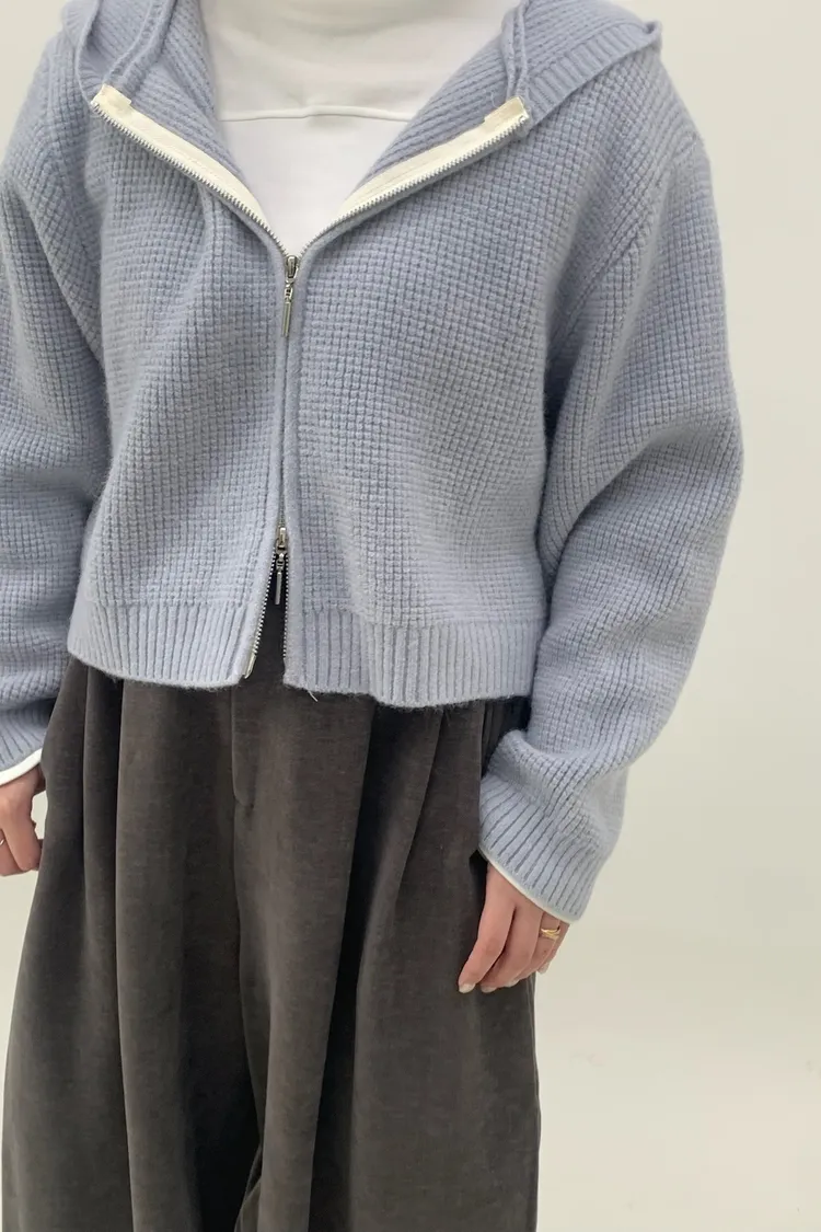 連帽鬆餅格針織上衣