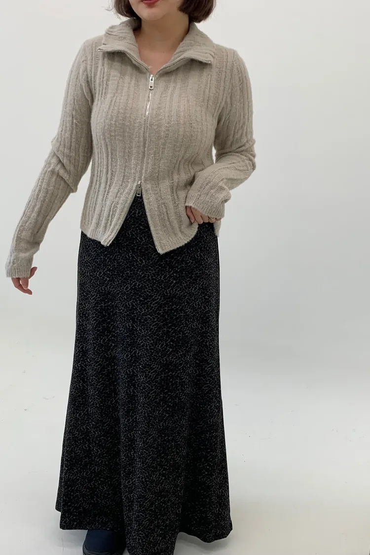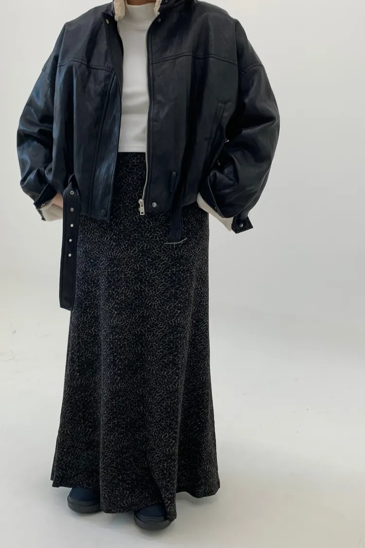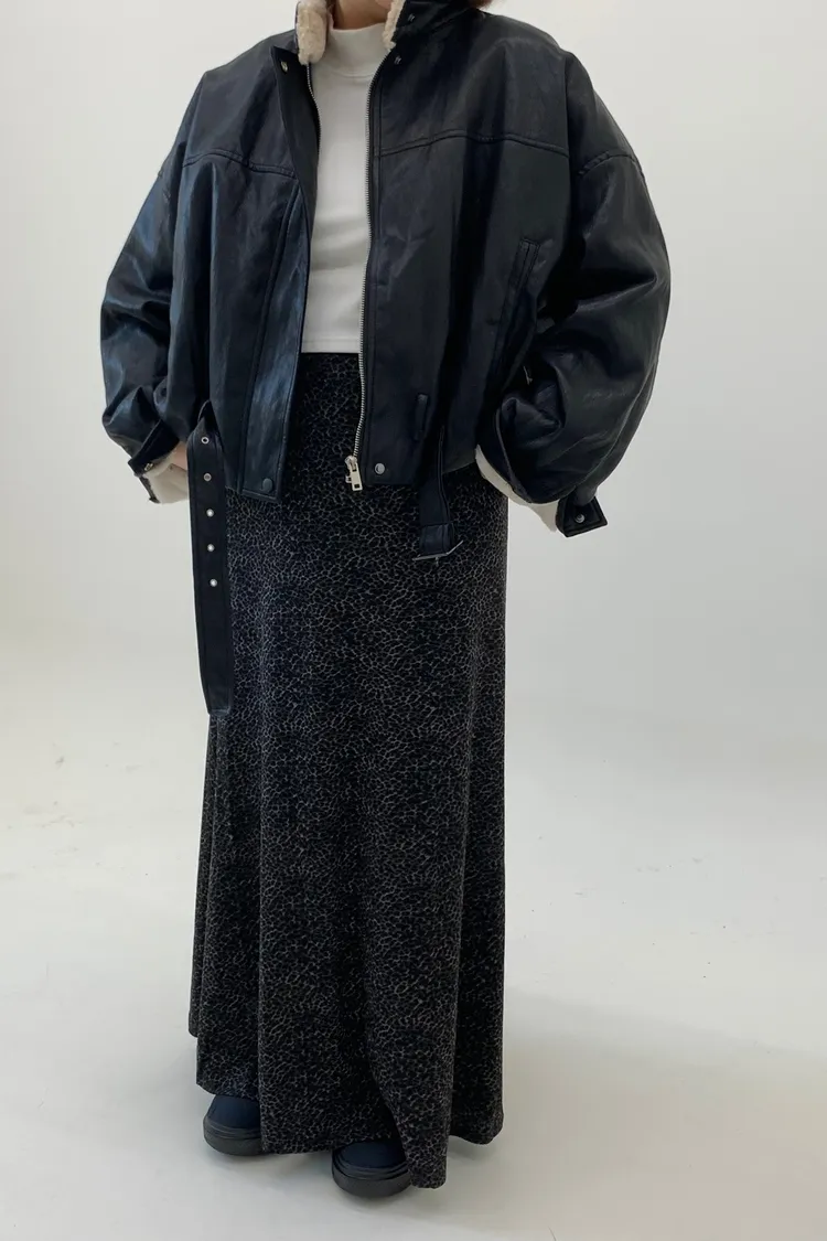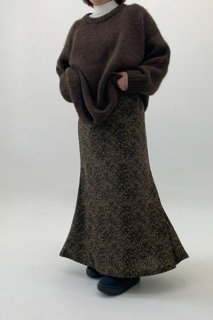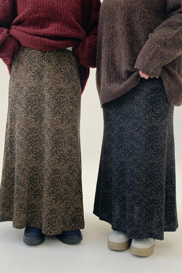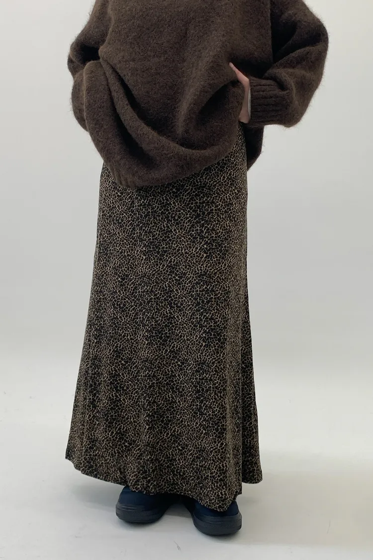 鬆緊下擺魚尾豹紋長裙