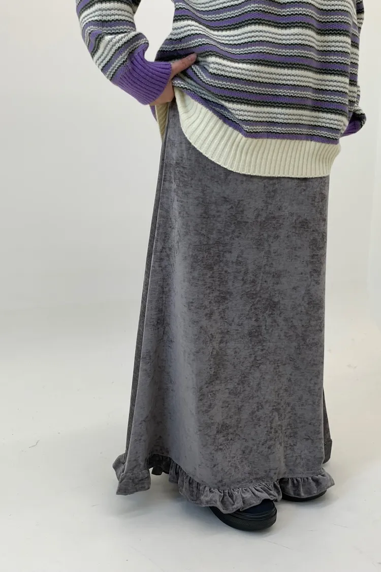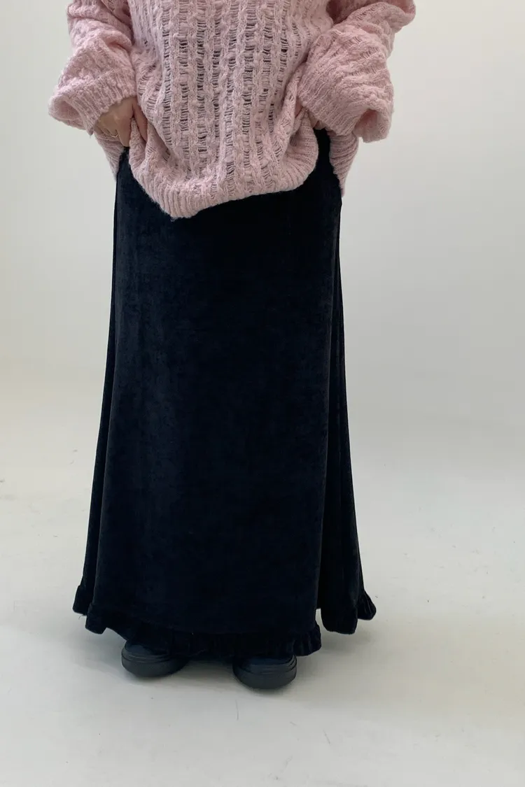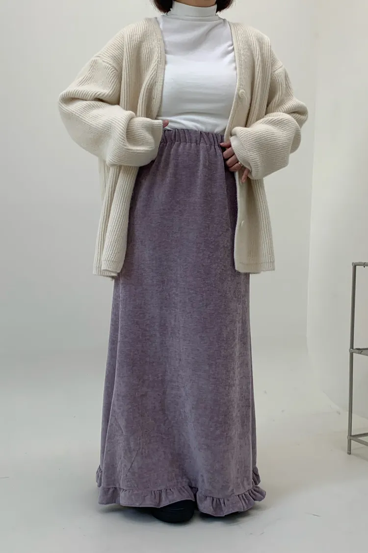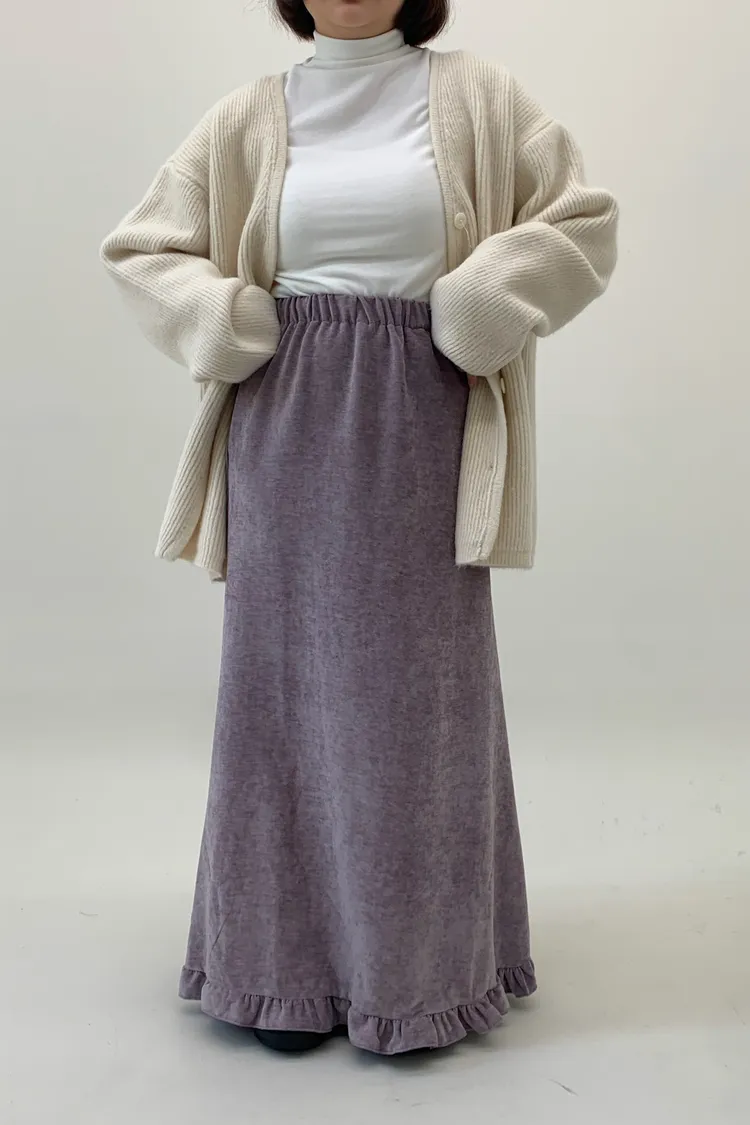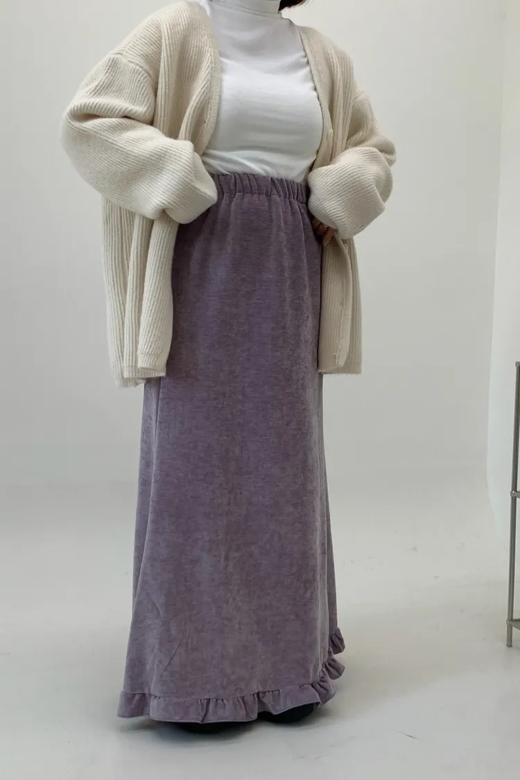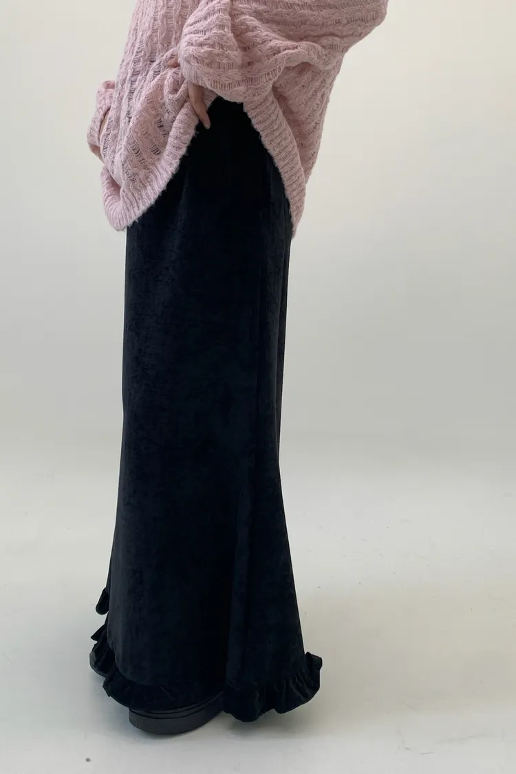 木耳邊絲絨磨毛長裙