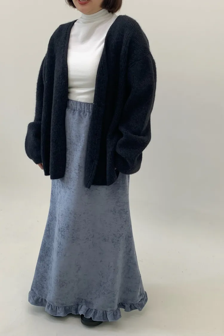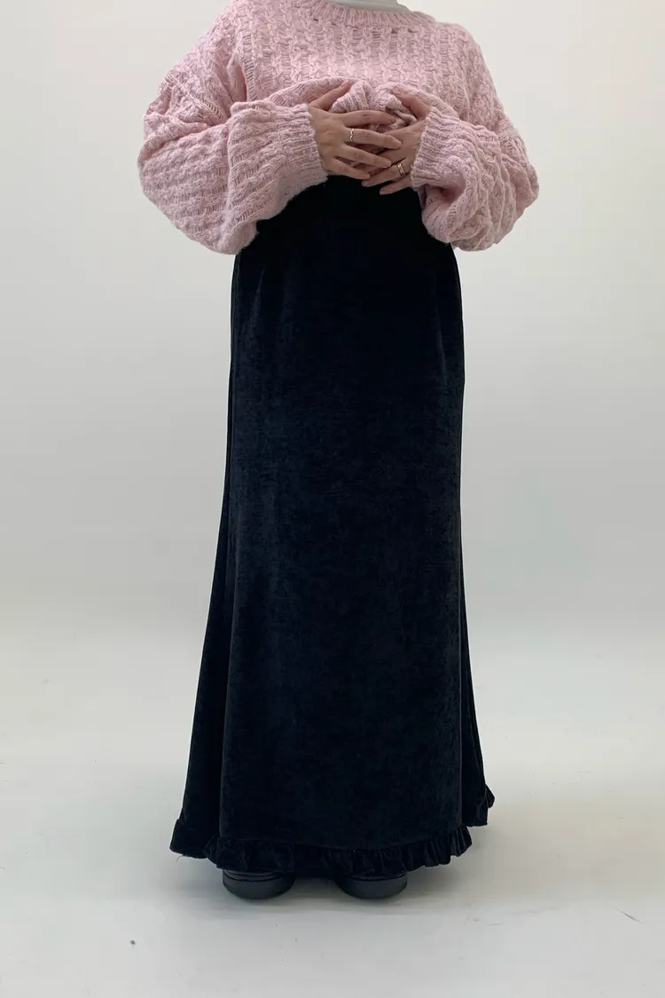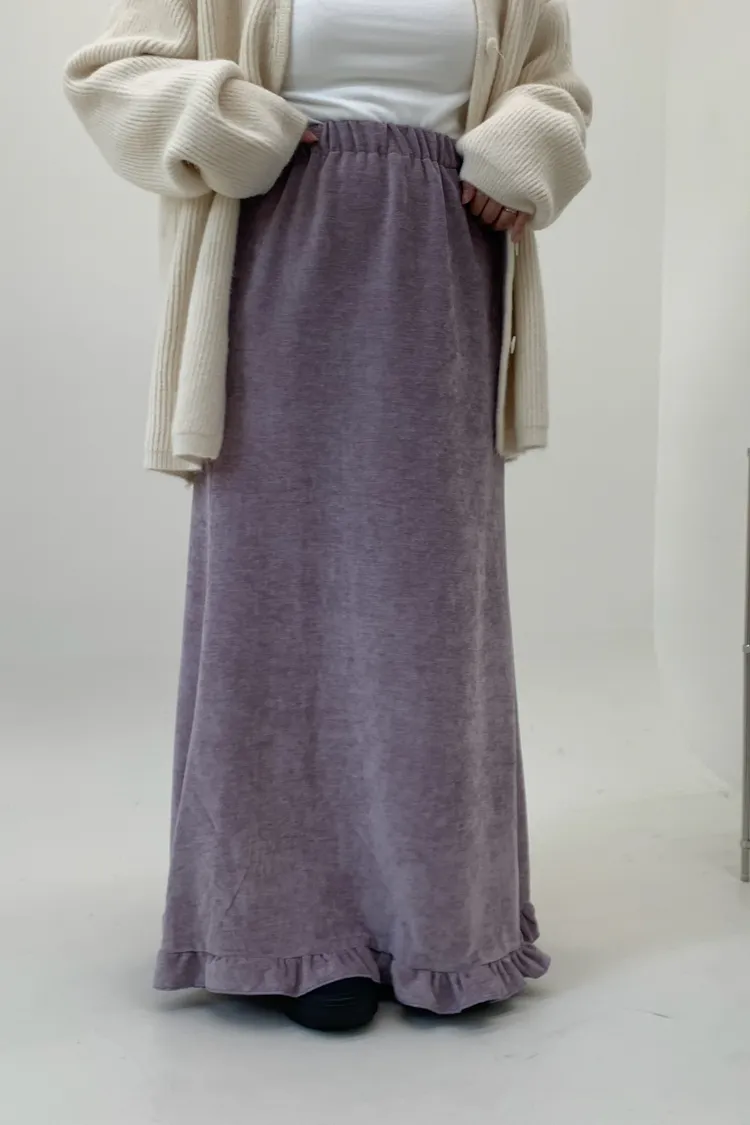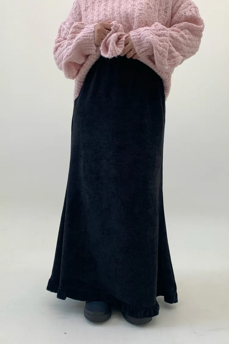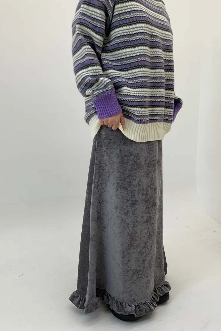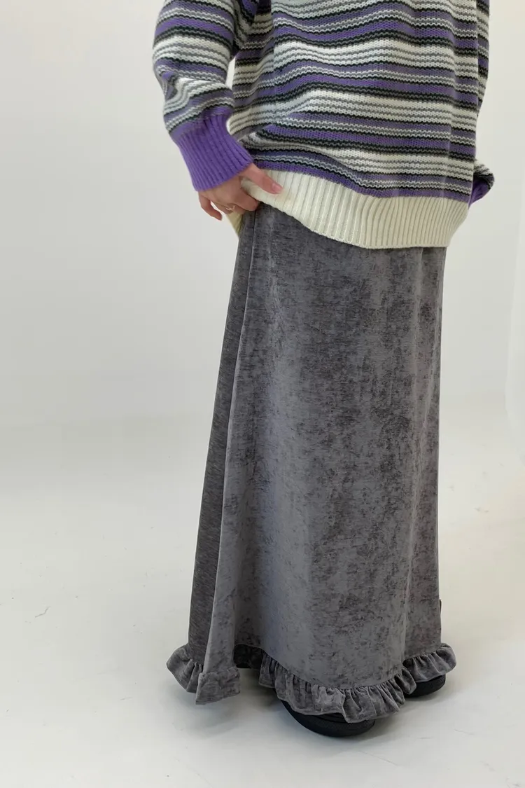 木耳邊絲絨磨毛長裙