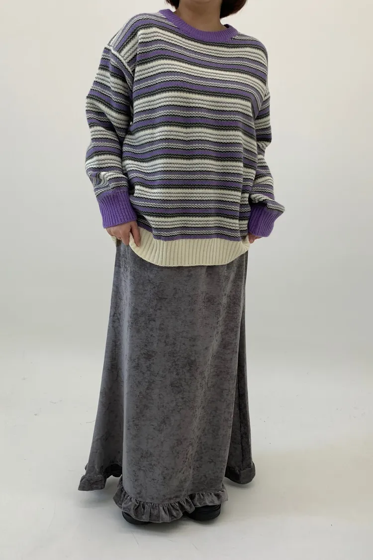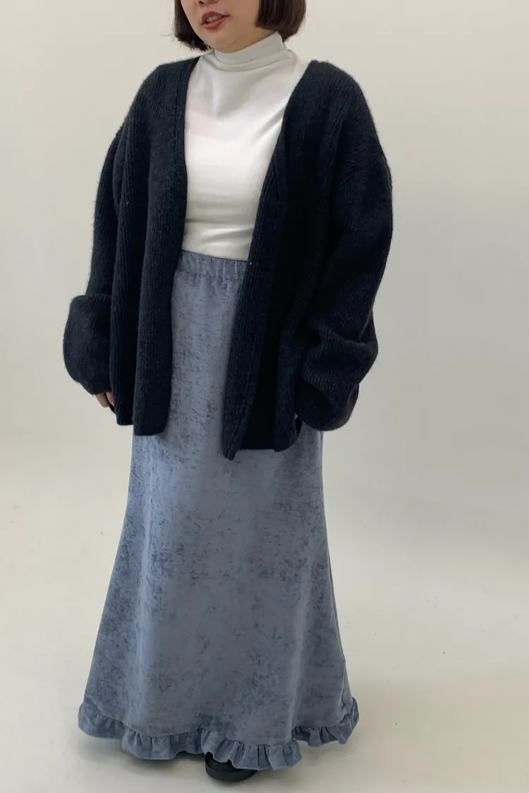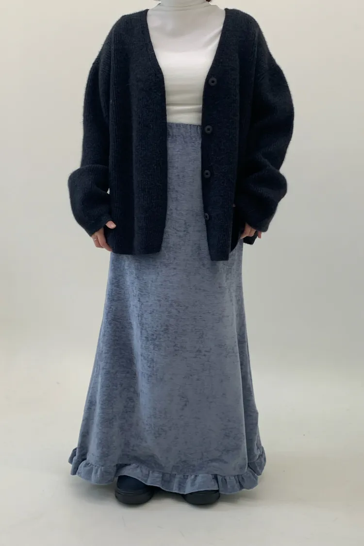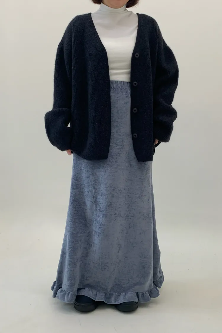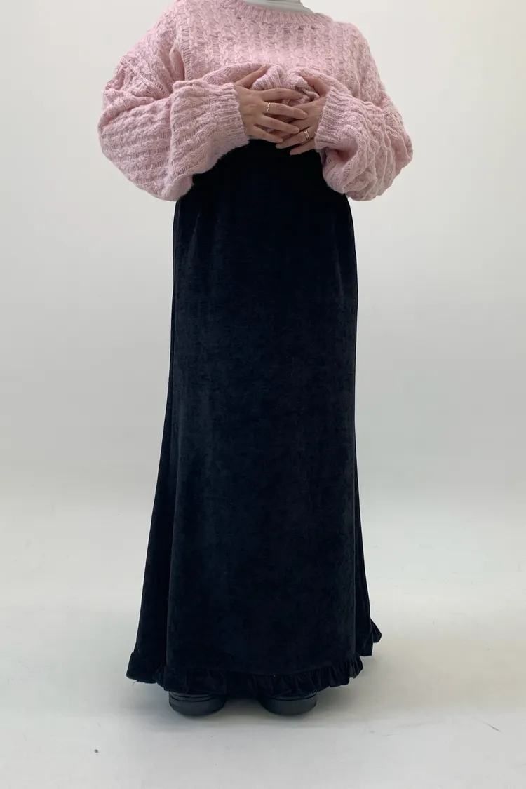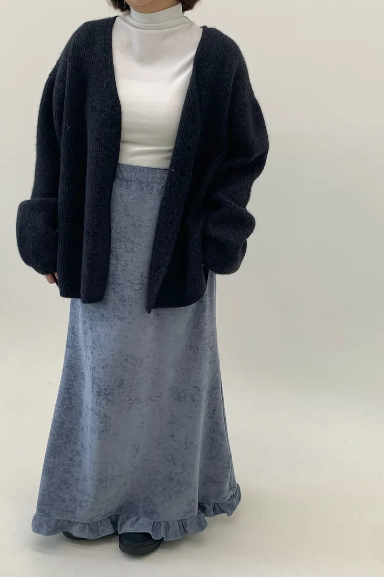 木耳邊絲絨磨毛長裙