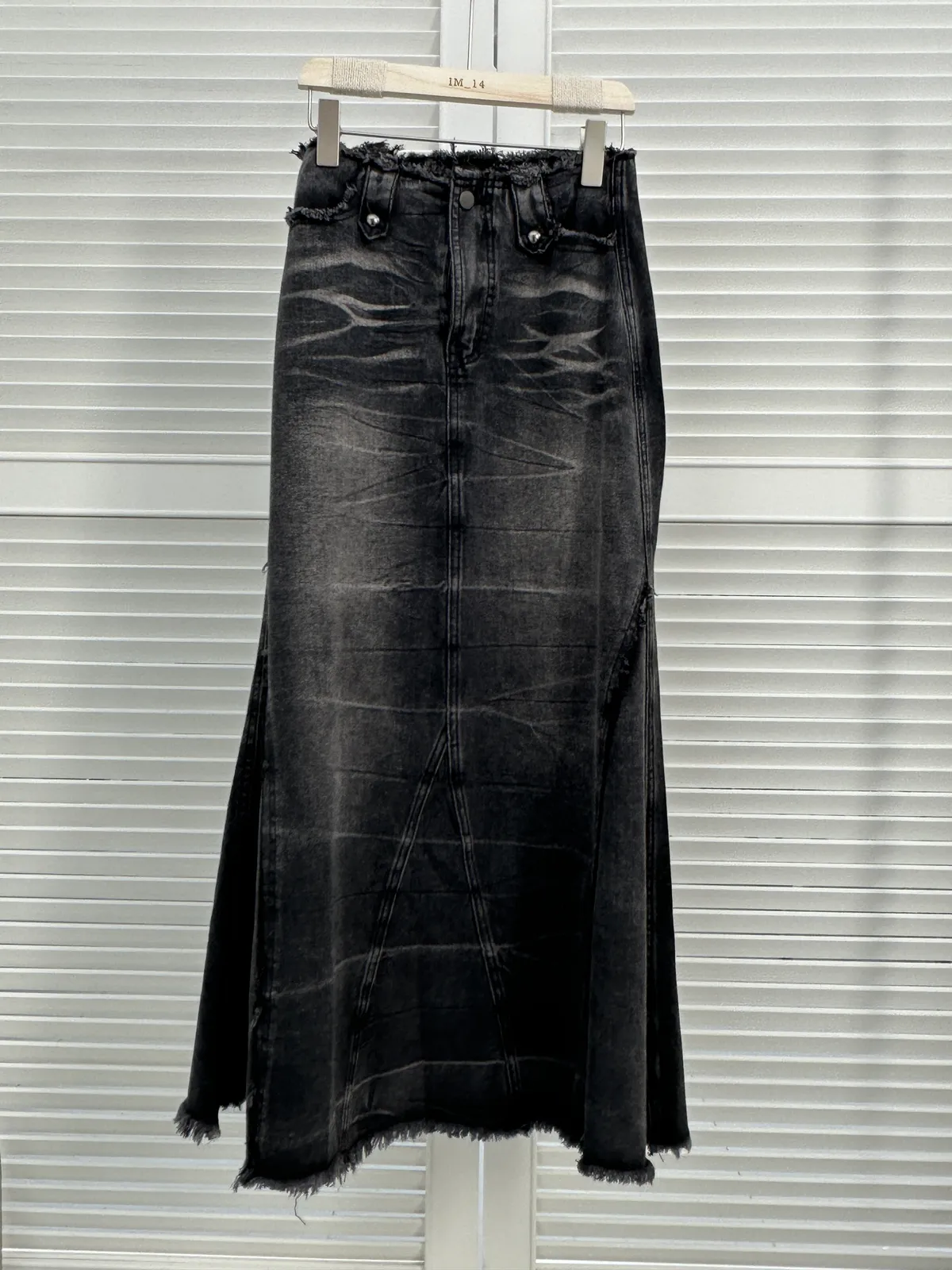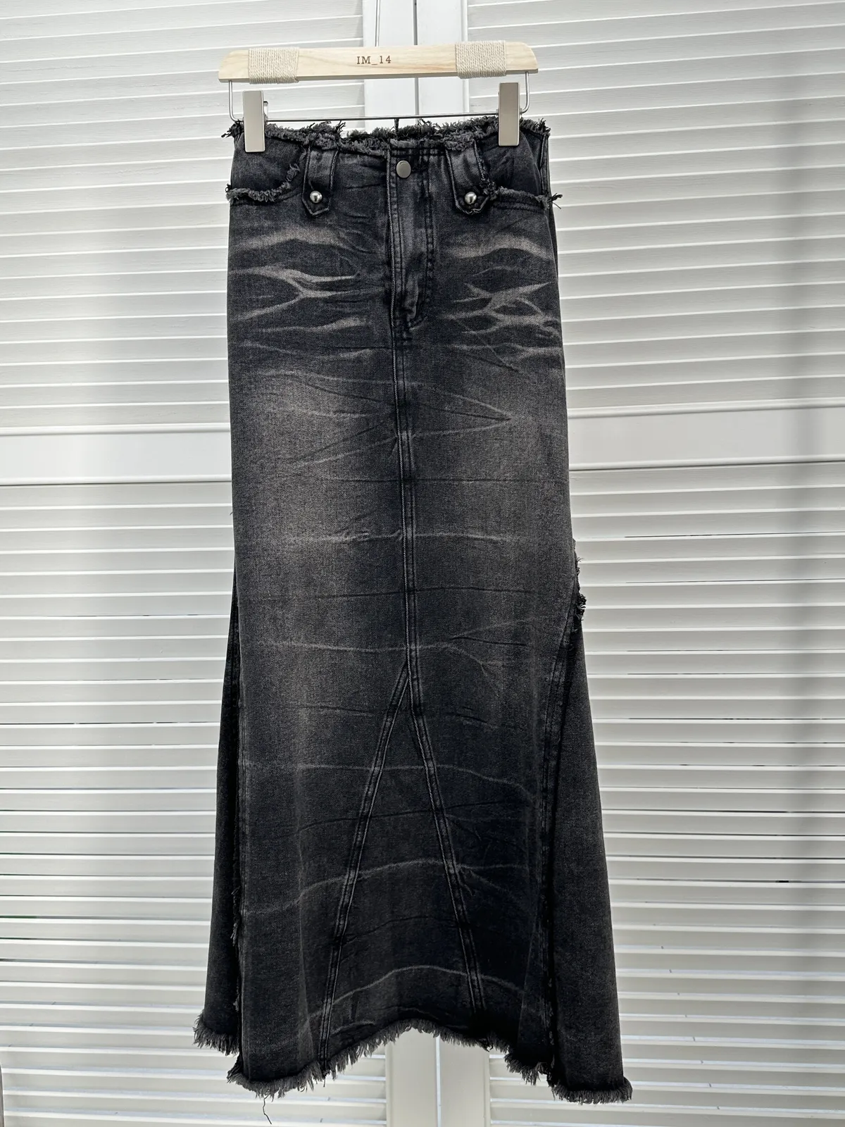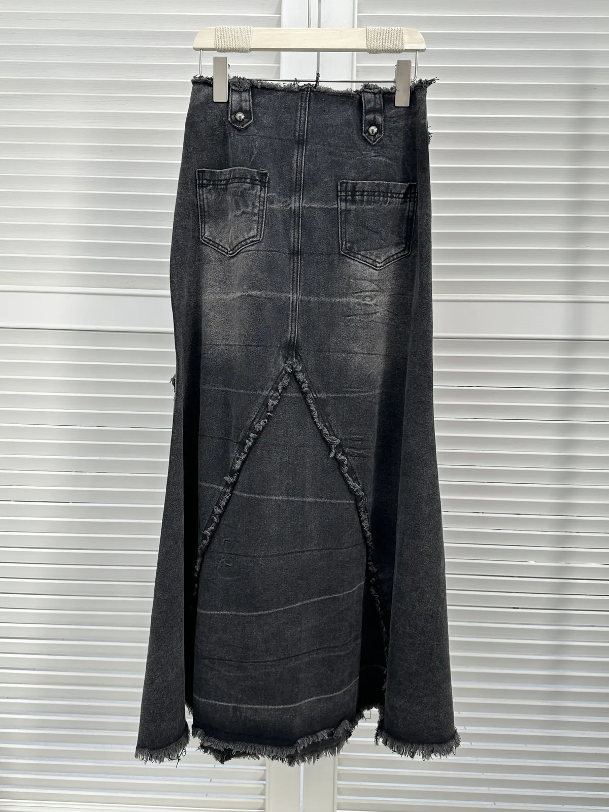 黑色抽鬚牛仔長裙