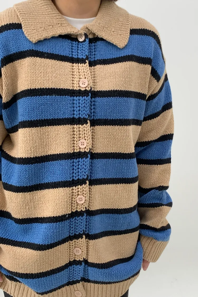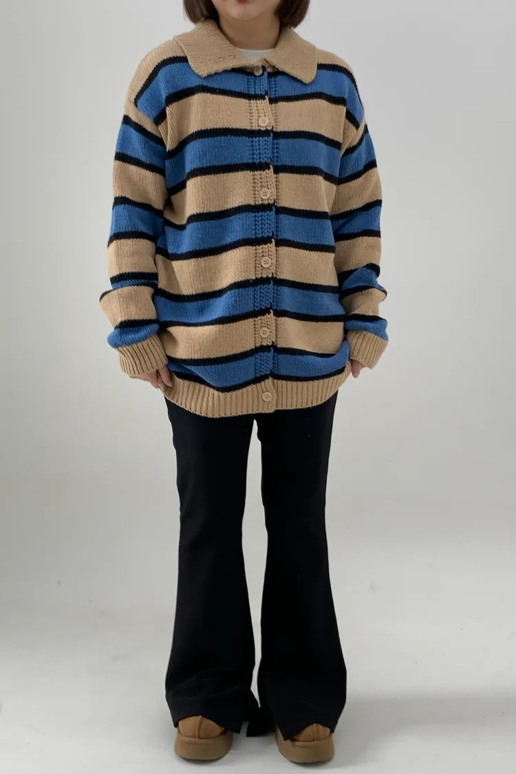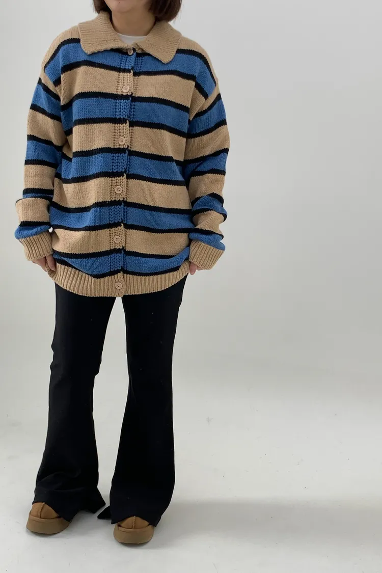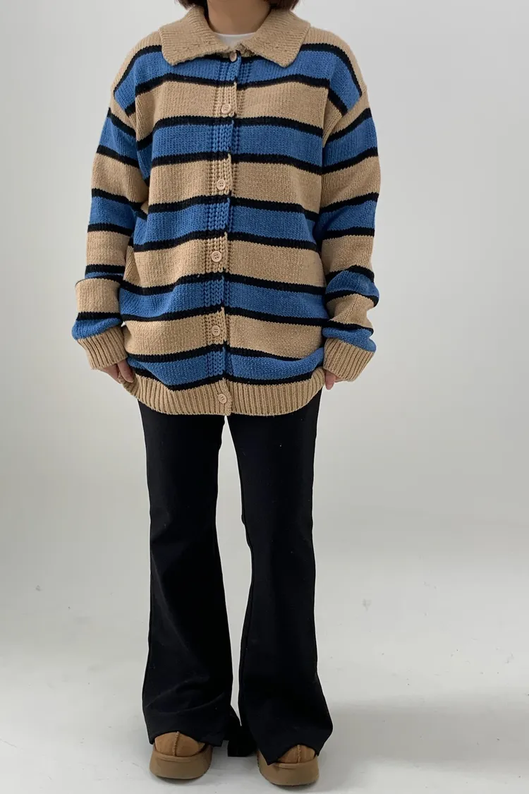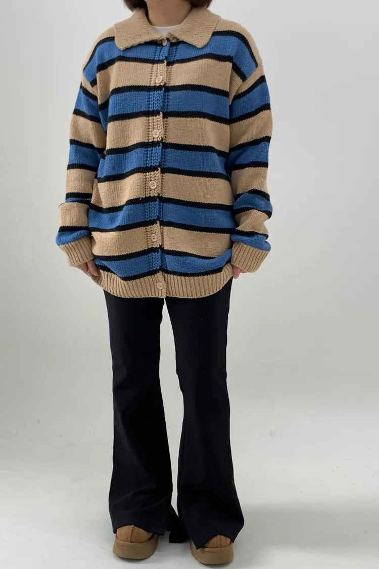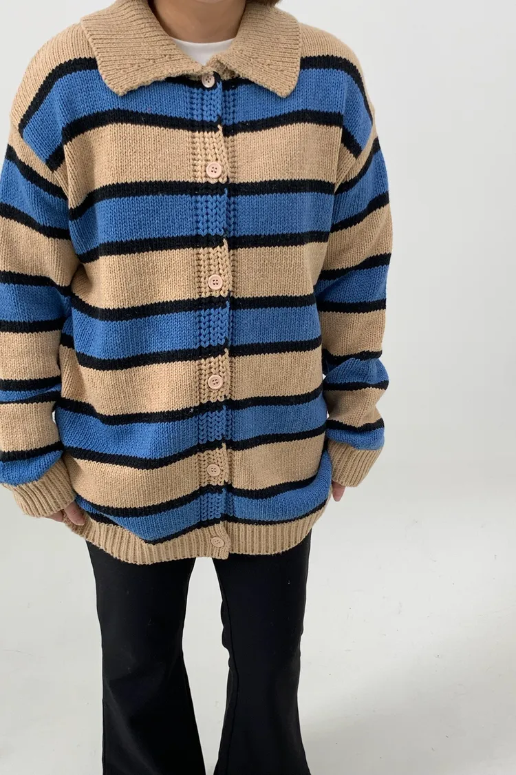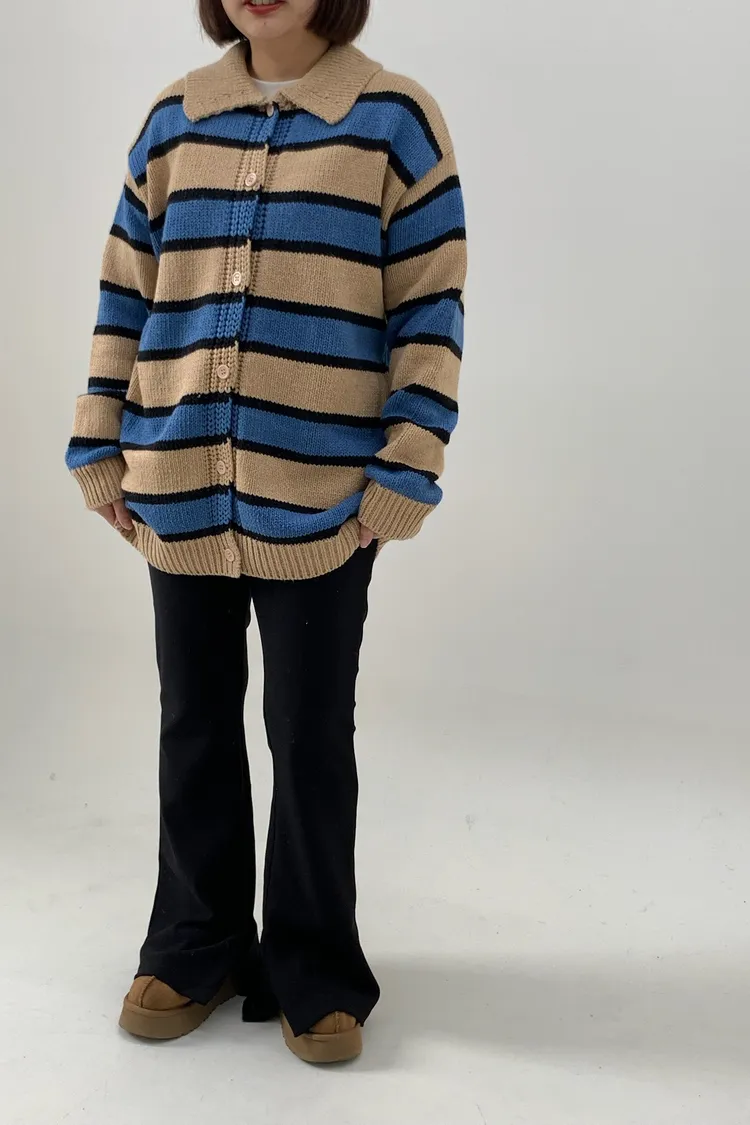 Polo領寛鬆橫條針織衣