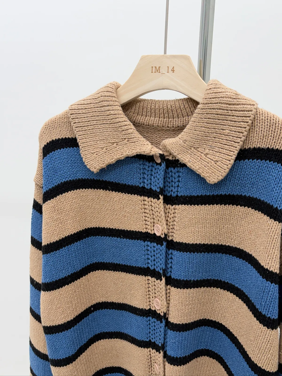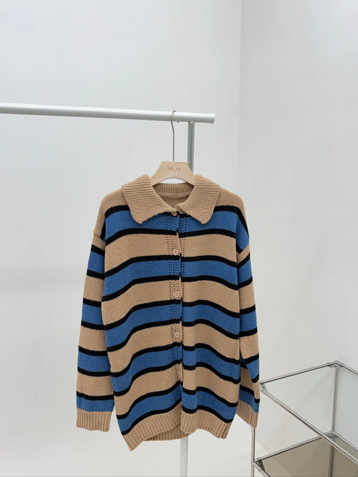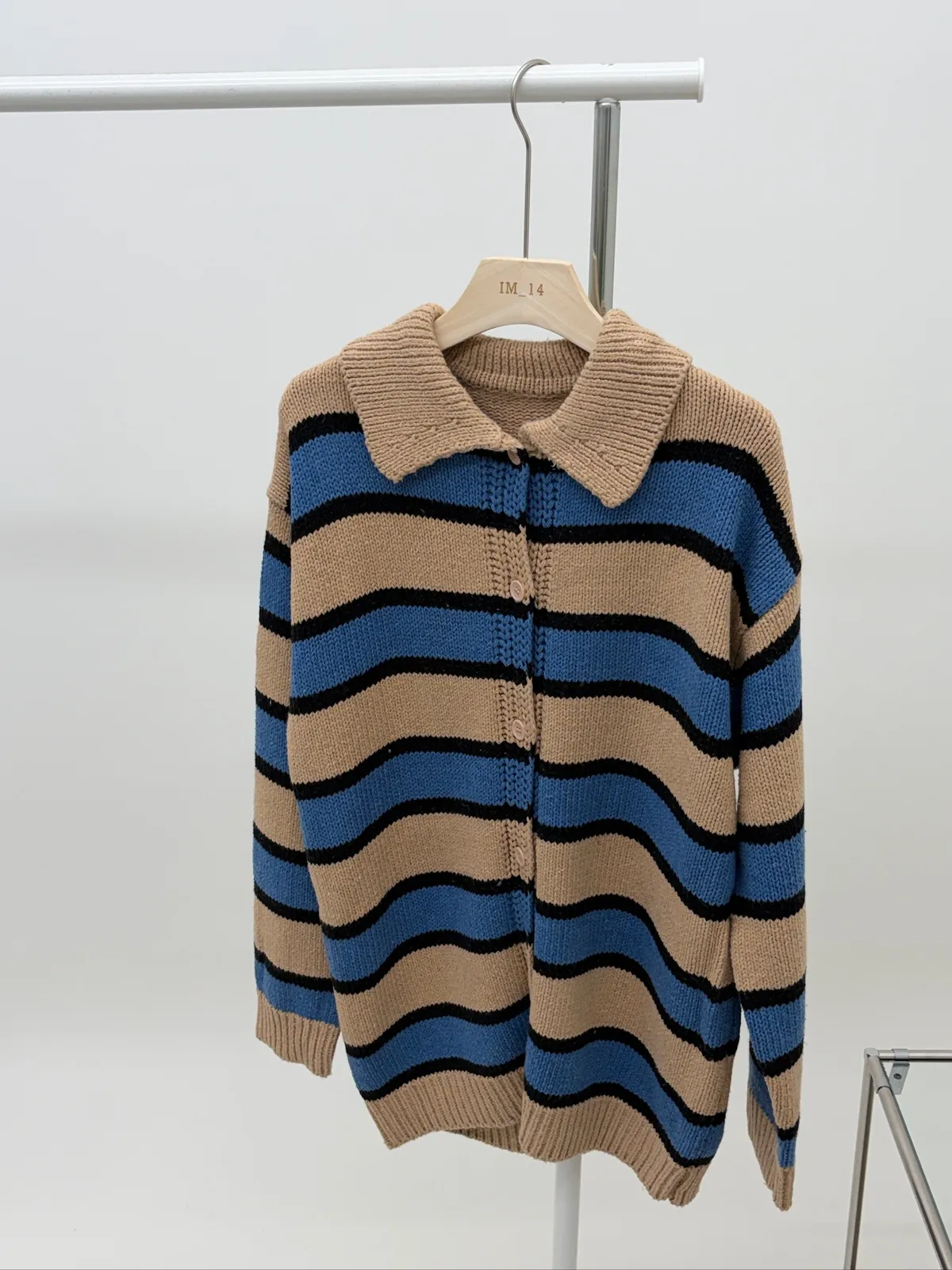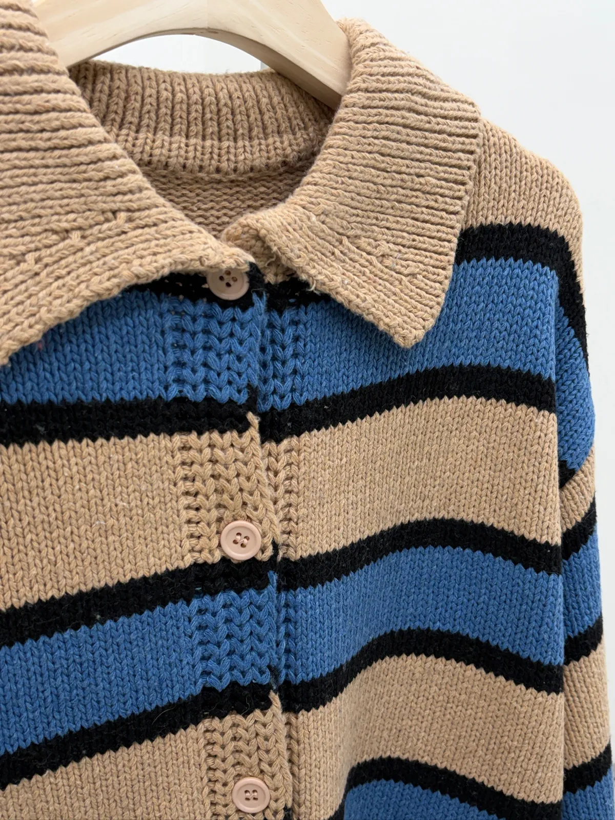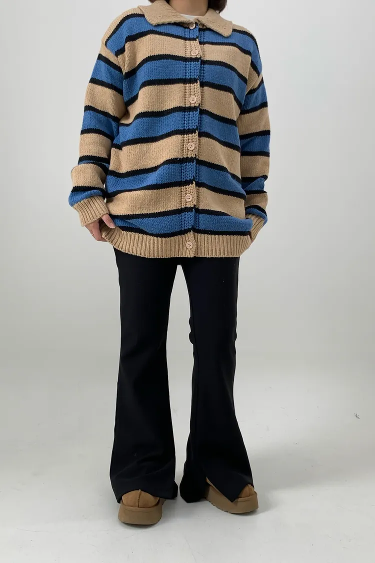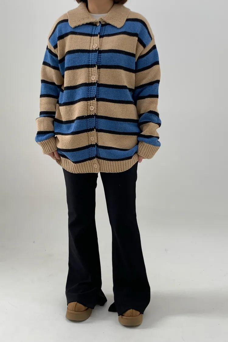Polo領寛鬆橫條針織衣