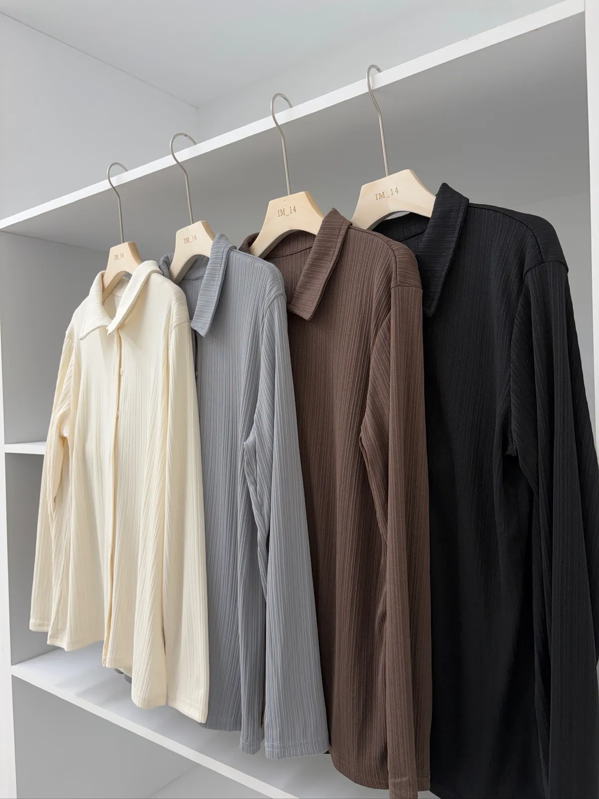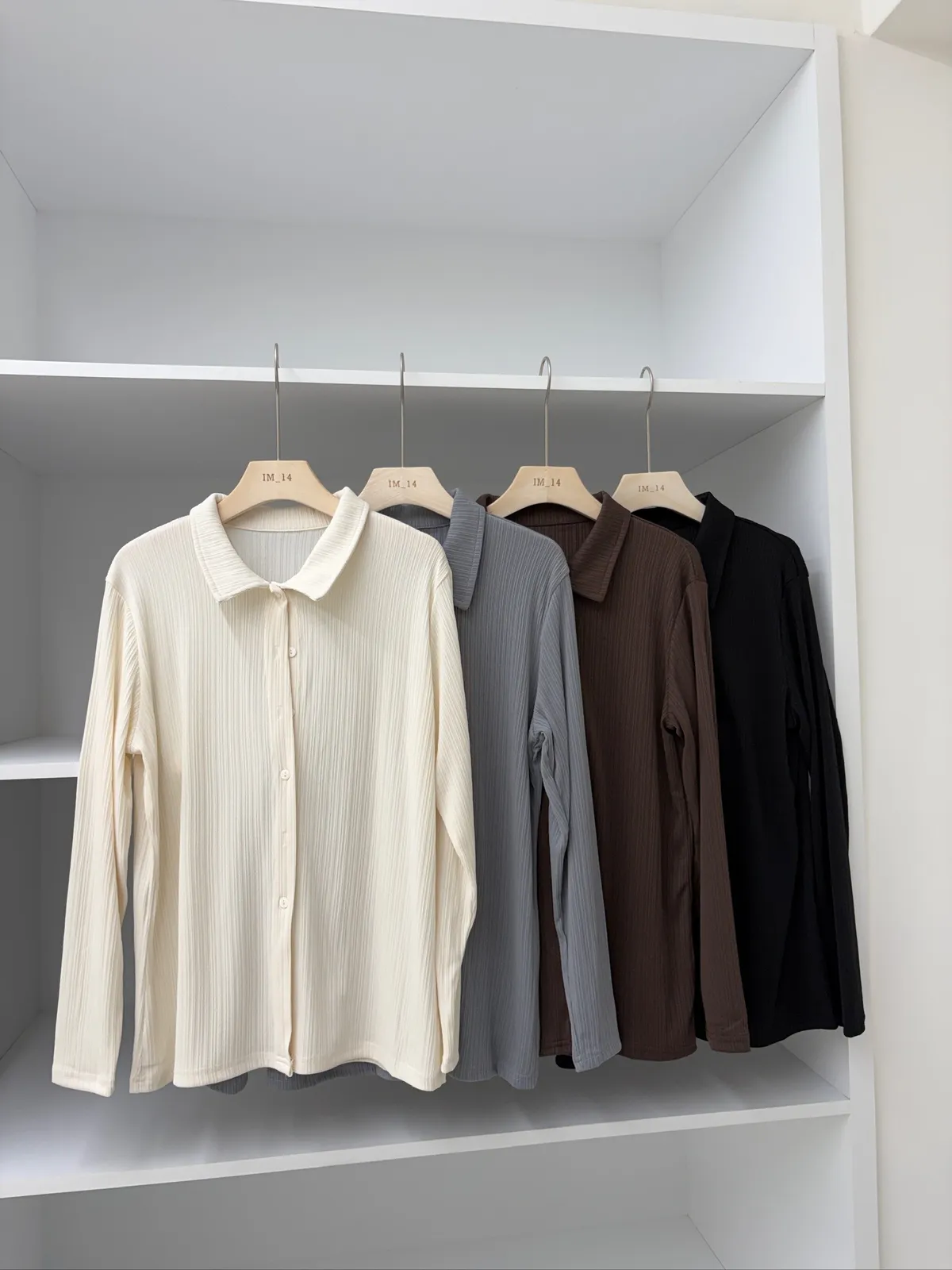 超級顯瘦的坑條排扣上衣