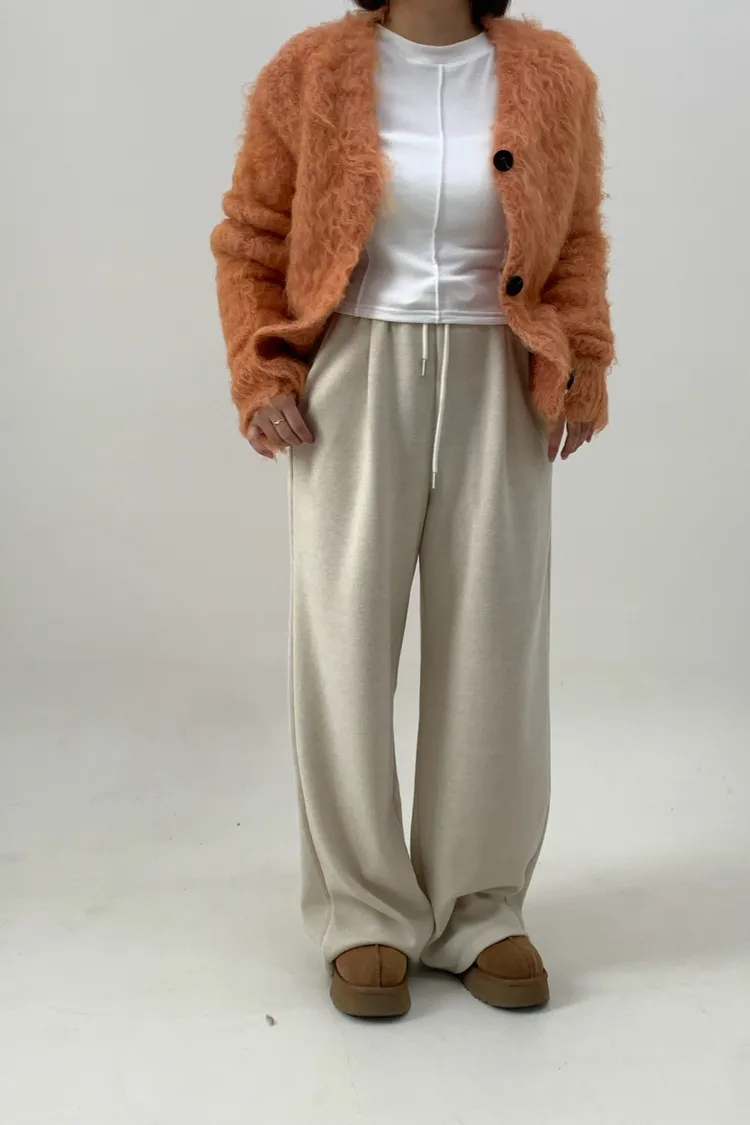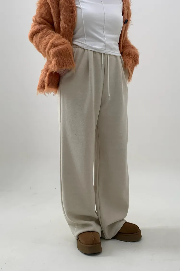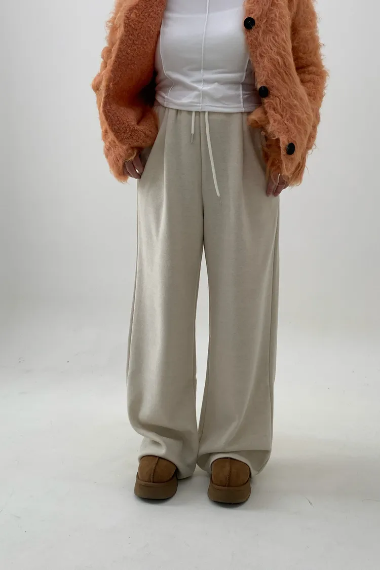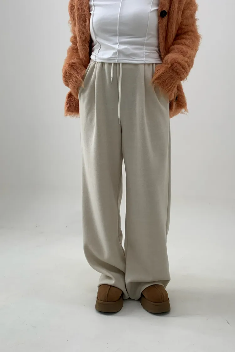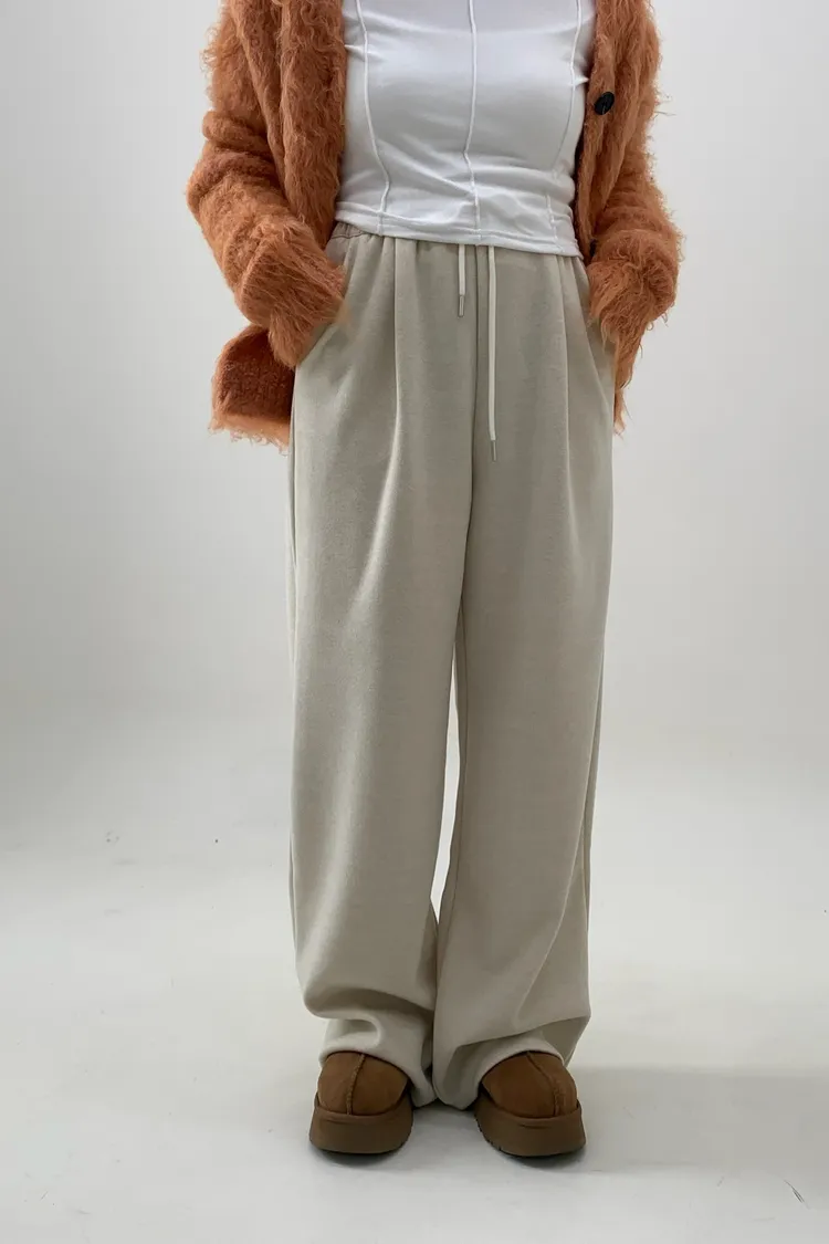 抽繩毛呢休閒寛褲