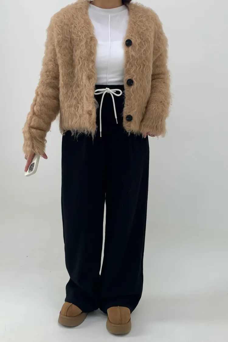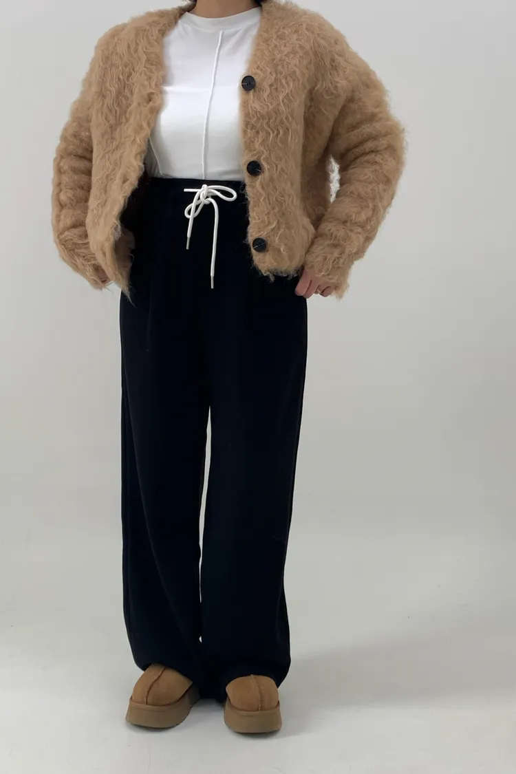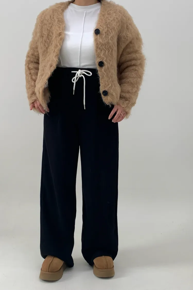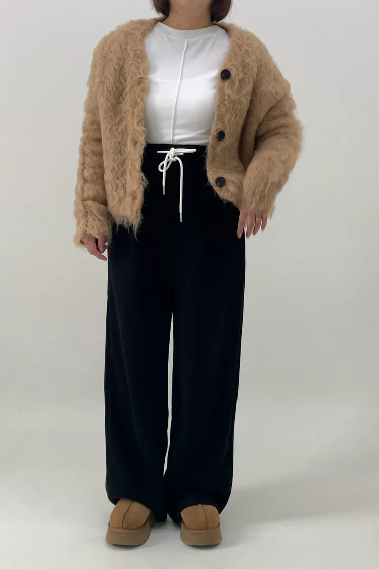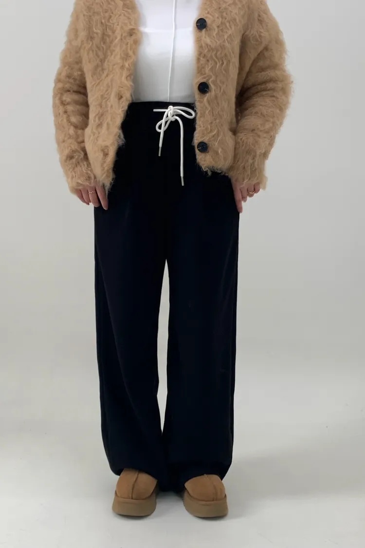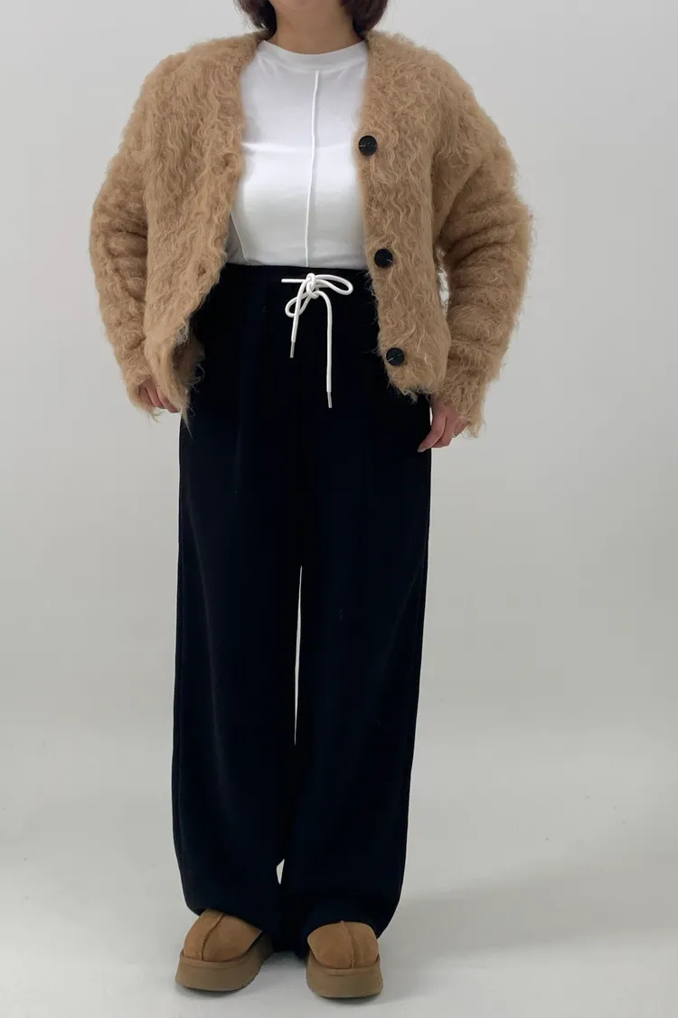 抽繩毛呢休閒寛褲
